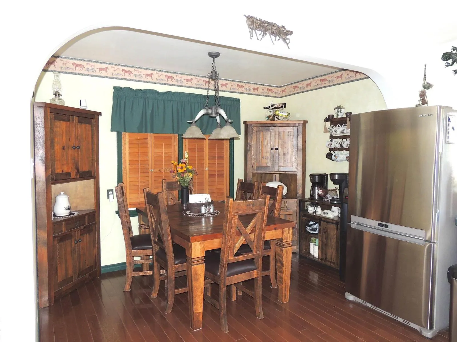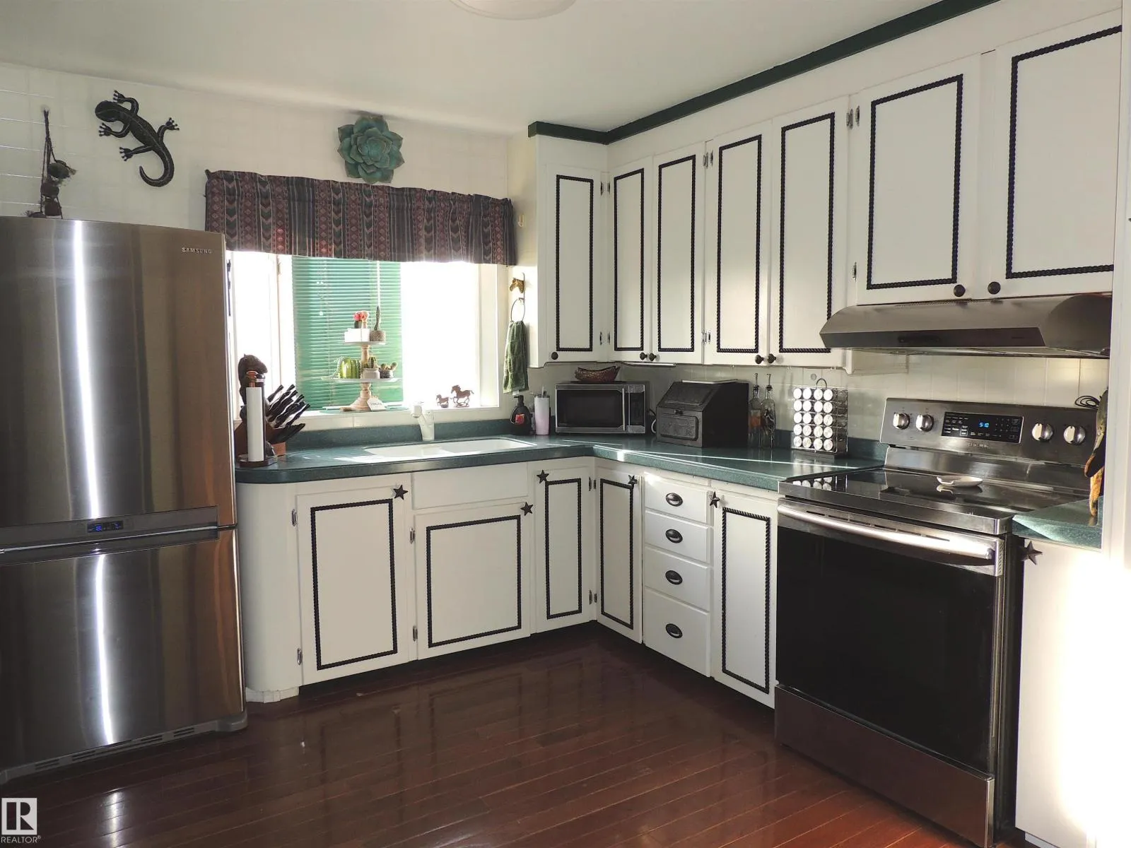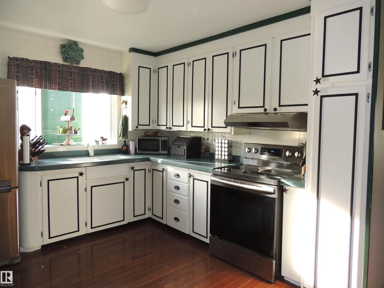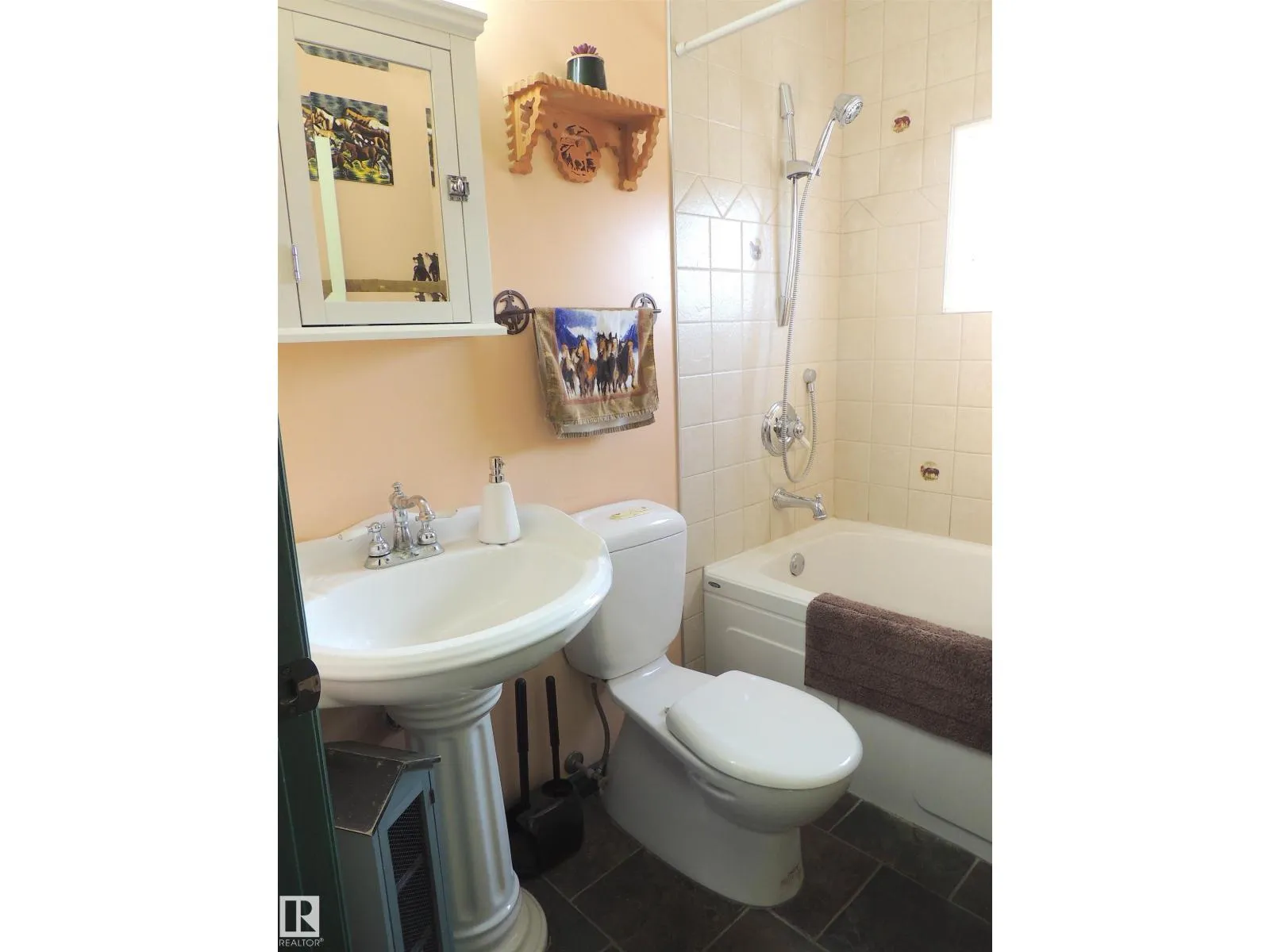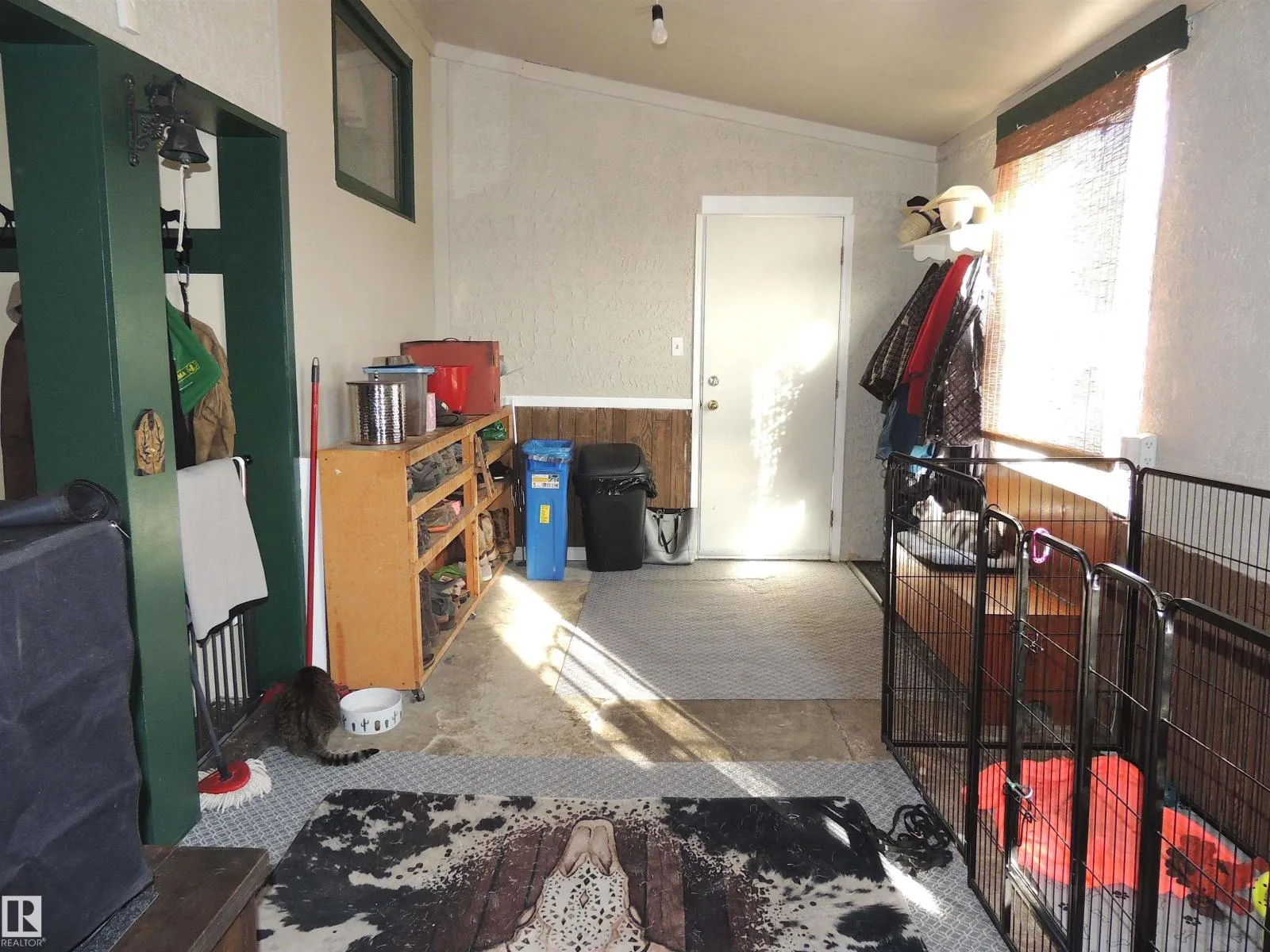 Get your horses ready for their new home on 10.2 acres in Austin Acres. Located just 12 km north of Gibbons, this property is set up with cross fencing, outdoor riding arena, red barn with metal roof/siding, 4 stalls, tack room and loft for hay, new water hydrant and watering bowl. Enter this 1200+sq ft country home and find a freshly painted mud room. A couple steps up is the kitchen with white cabinets, stainless appliances, corian counters and a cozy eating area. A french door leads into the living room, accented with original hardwood floors and electric fireplace. Primary bedroom holds a king size suite with electric fireplace. Enjoy the updated 4 piece bath and two more bedrooms on this level. Downstairs has a newly finished 3 piece bath, 2 more bedrooms, large laundry room and a cozy family entertainment area. Also included - chicken coop, metal workshop with wood heater and tool shed. (id:27476)