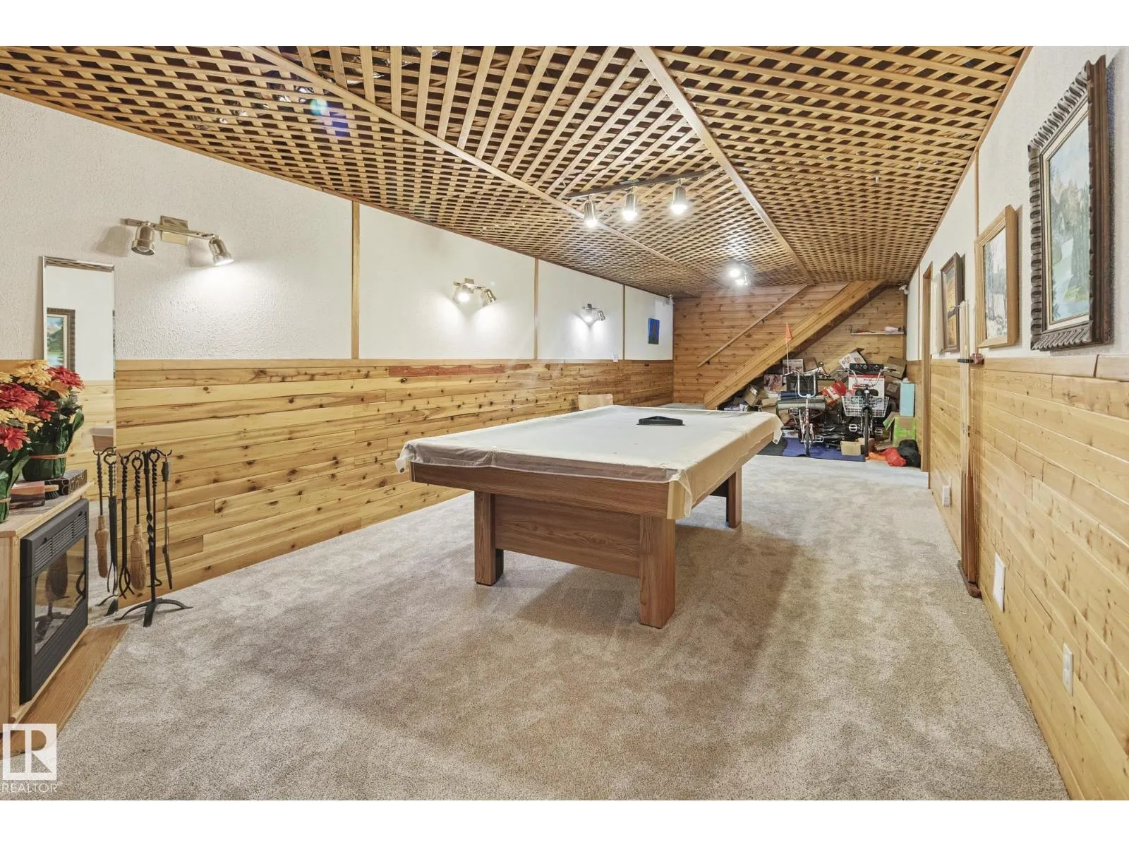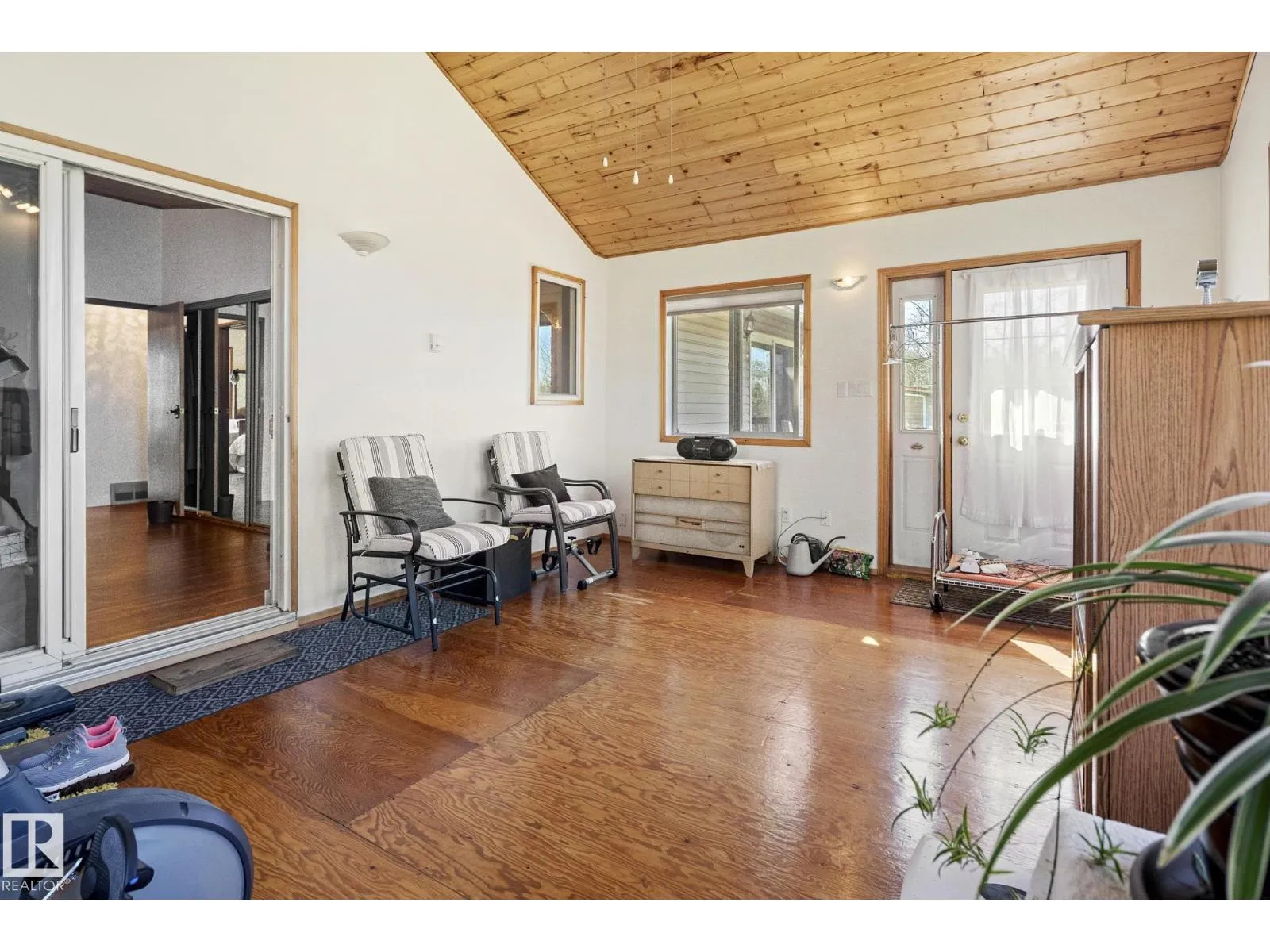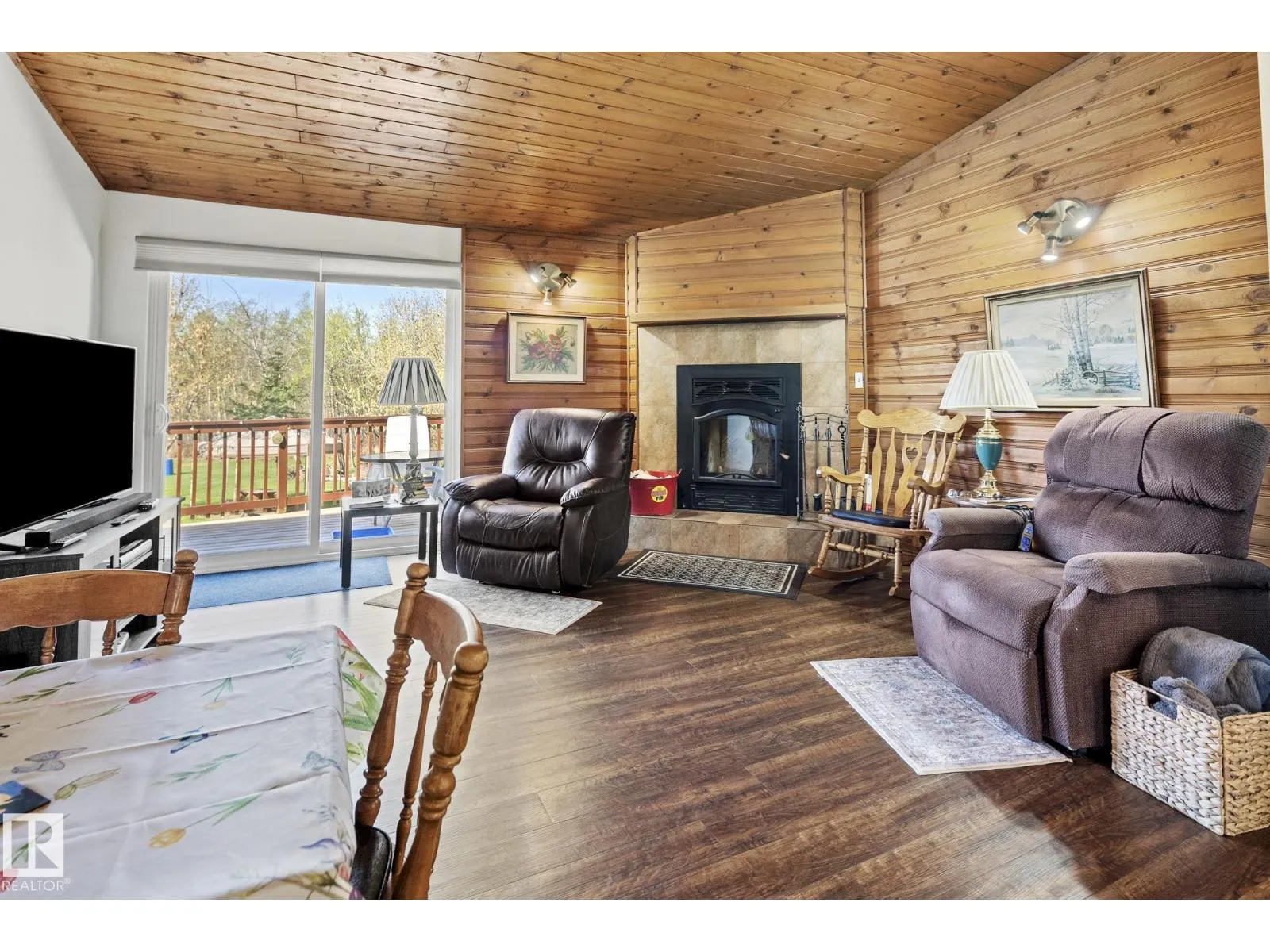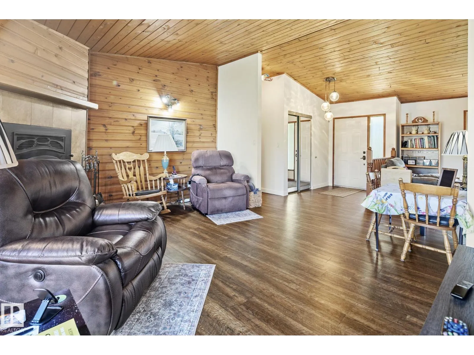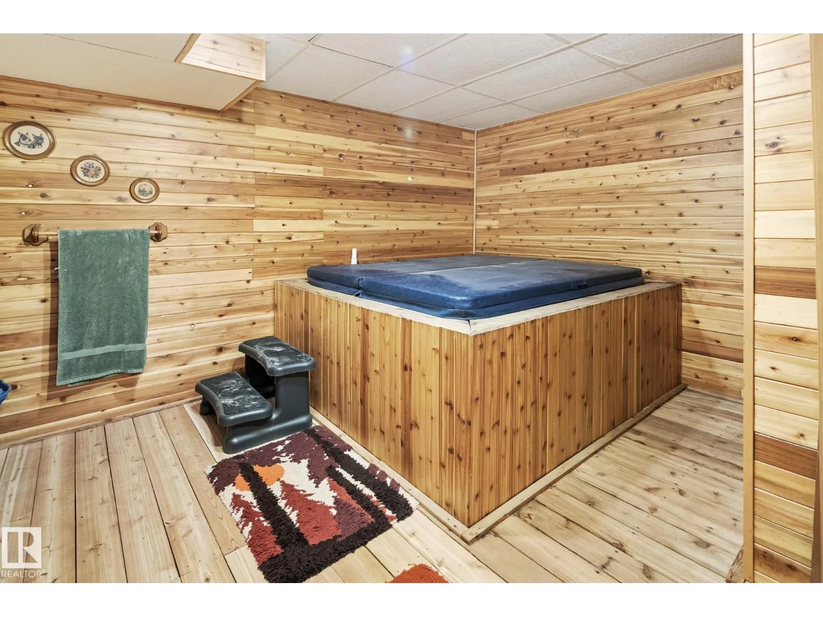 Welcome to this beautiful bungalow in the Gibbonslea subdivision, just minutes from the town of Gibbons, 5 minutes from Goose Hummock Golf Course and Jurassic Forest, with quick access to Highway 28A. Proudly owned by the original owners, this immaculately maintained sq. ft. home features vaulted pine-planked ceilings, vinyl flooring throughout the main floor, and a cozy corner wood-burning fireplace in the living room. The kitchen offers quartz countertops, a built-in oven, ample storage, and windows overlooking the property. The main floor includes three bedrooms, a 4-piece main bath, and a 4-piece ensuite off the primary bedroom, which also connects to a framed sunroom heated by a gas fireplace and surrounded by windows. The fully finished basement includes a hot tub room, a fourth bedroom, and generous storage space. An attached double garage and with man door out to a beautifully landscaped private yard with apple trees fire pit area. This is a must see character property. (id:27476)