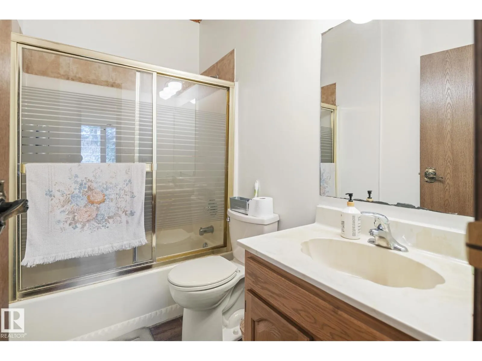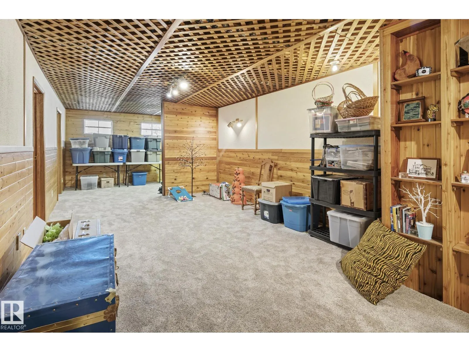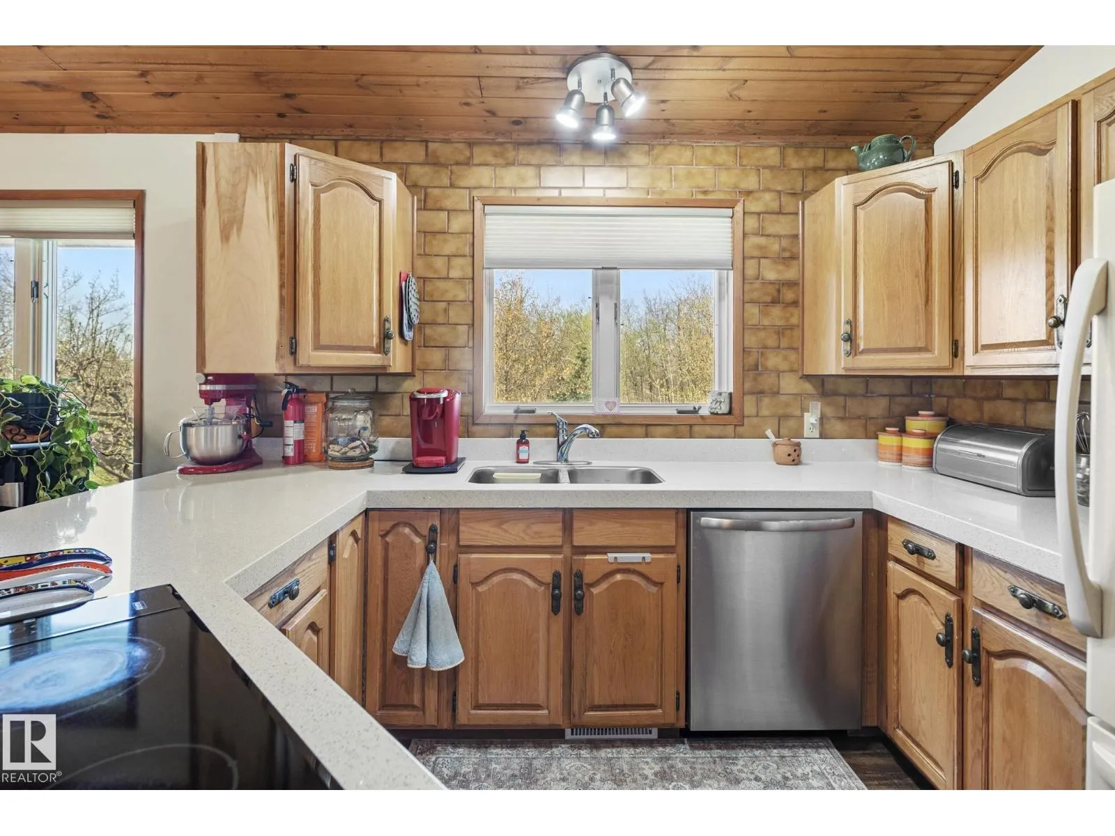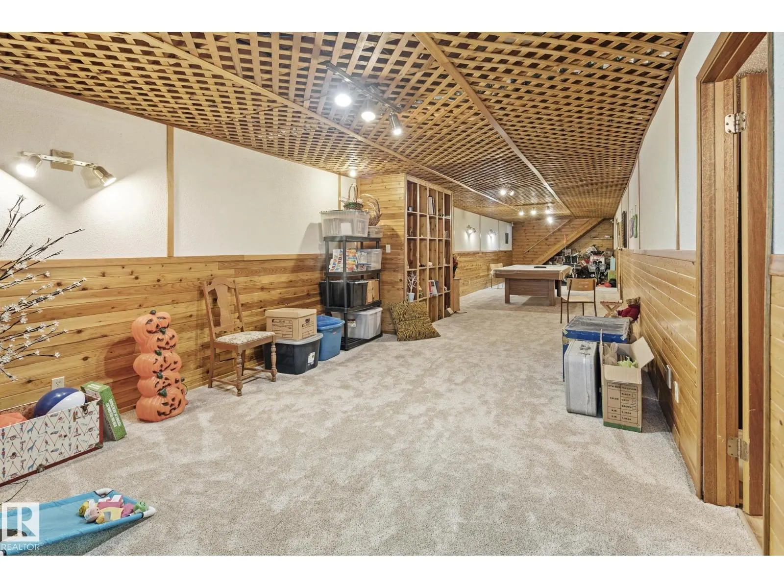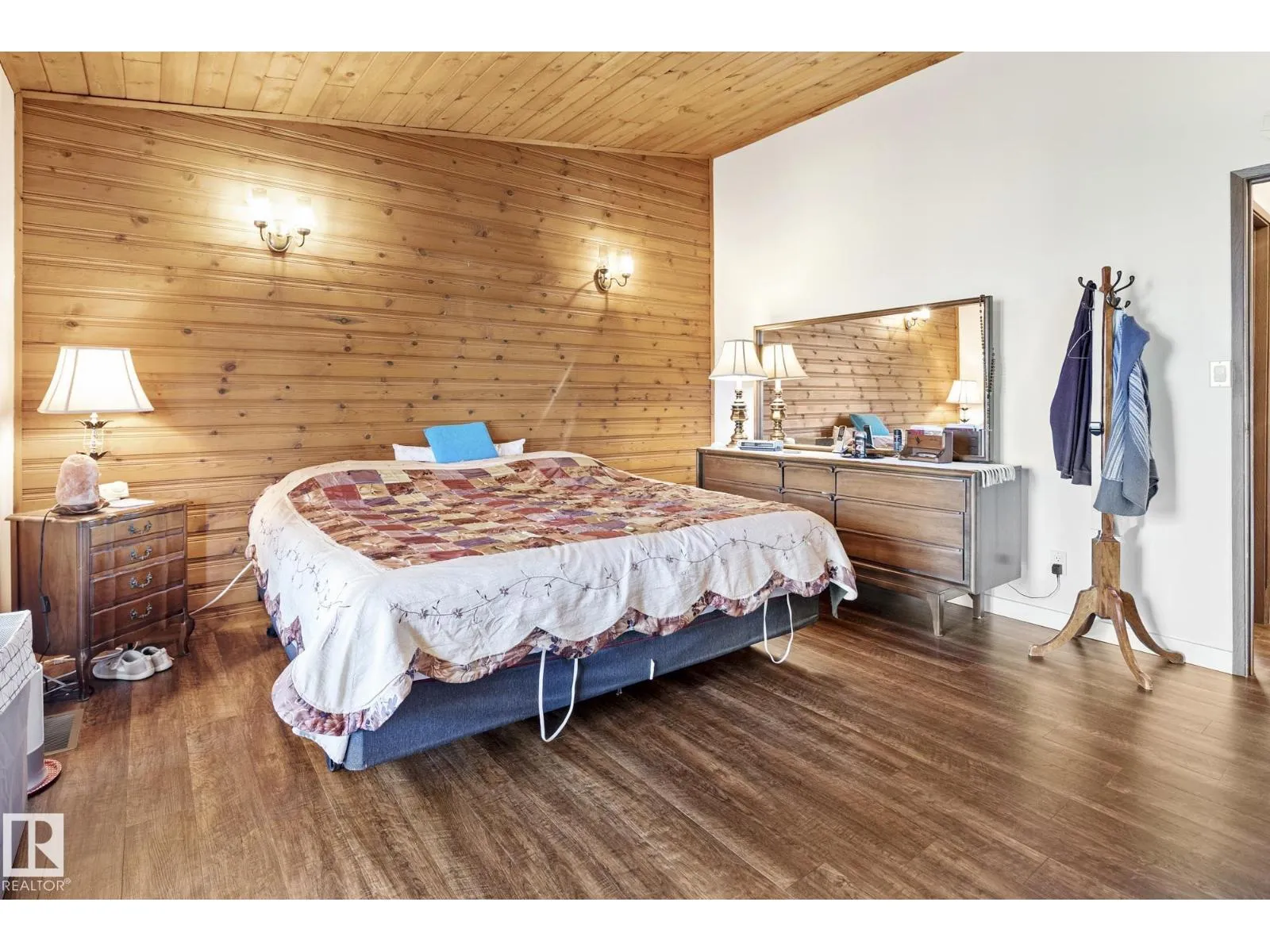 Welcome to this beautiful bungalow in the Gibbonslea subdivision, just minutes from the town of Gibbons, 5 minutes from Goose Hummock Golf Course and Jurassic Forest, with quick access to Highway 28A. Proudly owned by the original owners, this immaculately maintained sq. ft. home features vaulted pine-planked ceilings, vinyl flooring throughout the main floor, and a cozy corner wood-burning fireplace in the living room. The kitchen offers quartz countertops, a built-in oven, ample storage, and windows overlooking the property. The main floor includes three bedrooms, a 4-piece main bath, and a 4-piece ensuite off the primary bedroom, which also connects to a framed sunroom heated by a gas fireplace and surrounded by windows. The fully finished basement includes a hot tub room, a fourth bedroom, and generous storage space. An attached double garage and with man door out to a beautifully landscaped private yard with apple trees fire pit area. This is a must see character property. (id:27476)