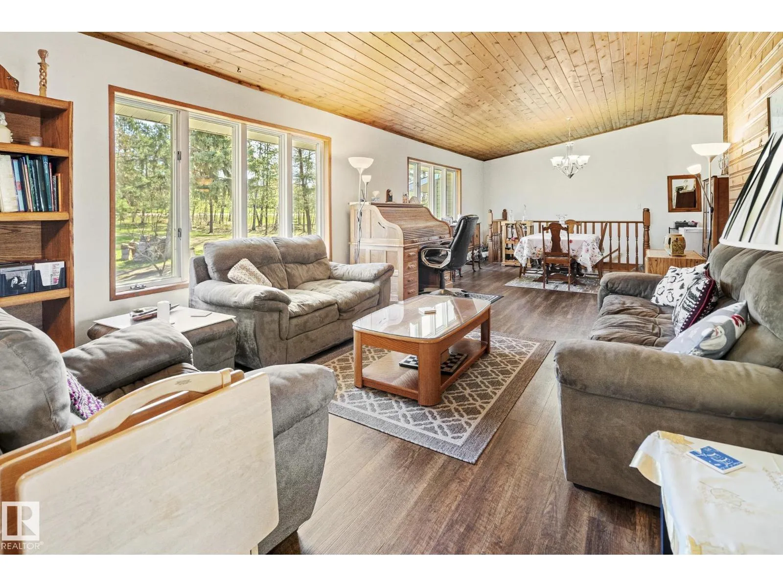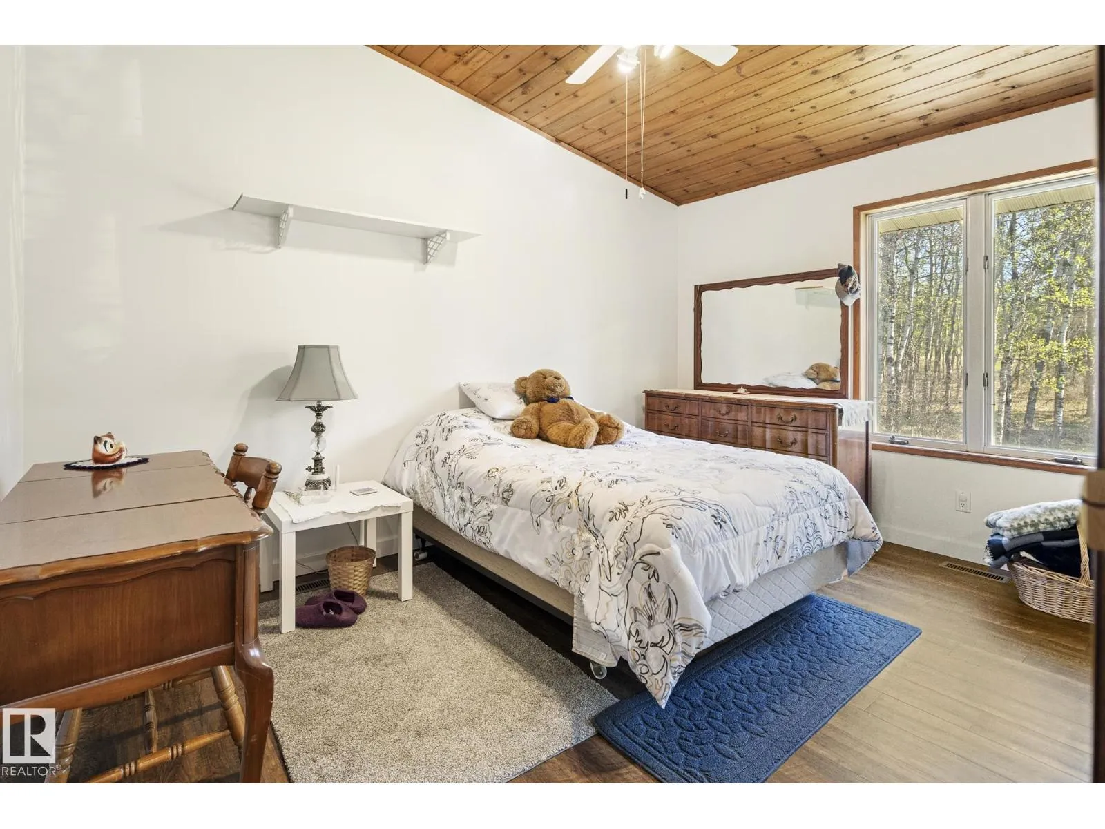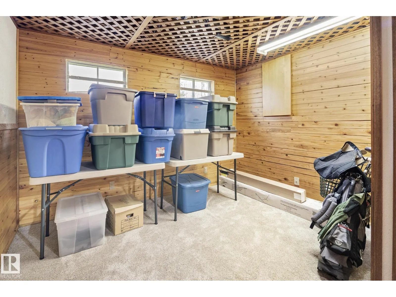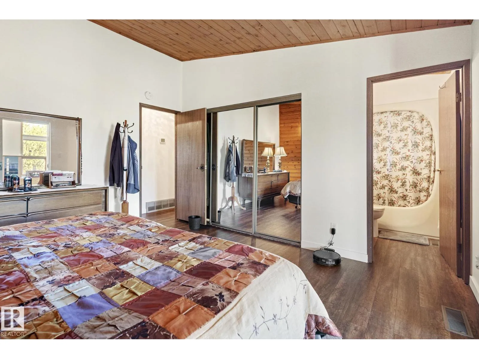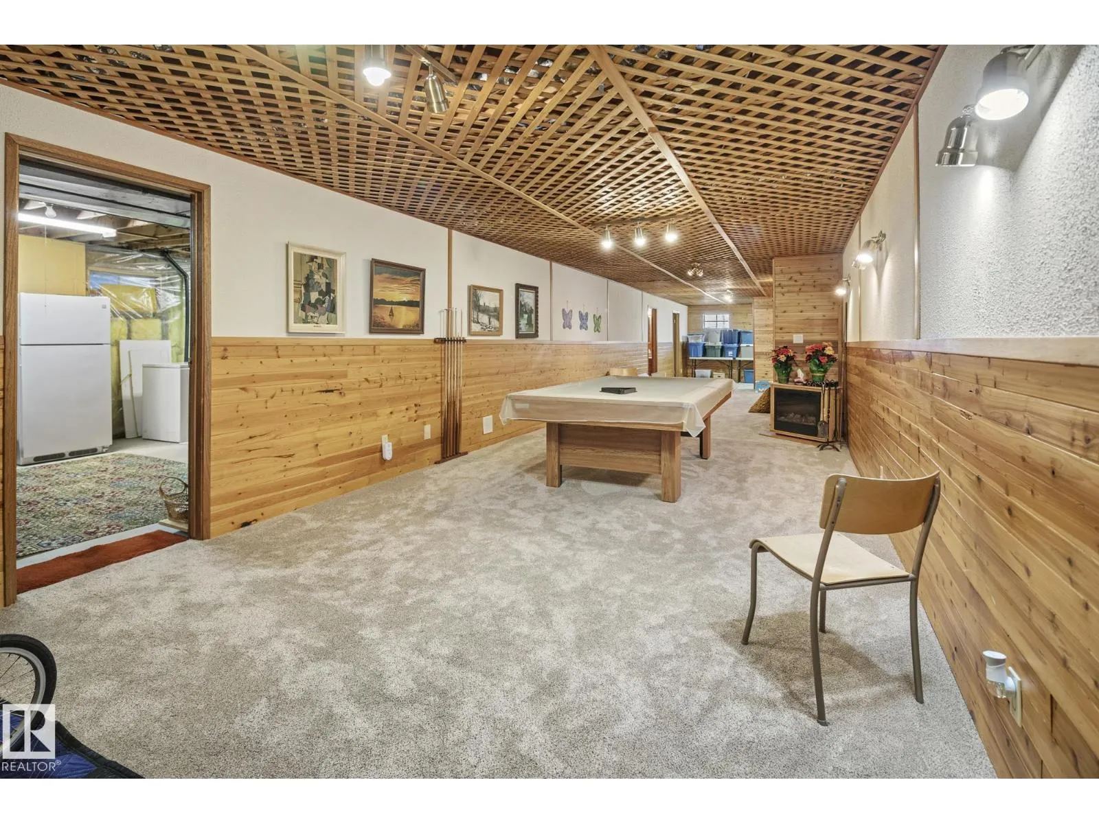 Welcome to this beautiful bungalow in the Gibbonslea subdivision, just minutes from the town of Gibbons, 5 minutes from Goose Hummock Golf Course and Jurassic Forest, with quick access to Highway 28A. Proudly owned by the original owners, this immaculately maintained sq. ft. home features vaulted pine-planked ceilings, vinyl flooring throughout the main floor, and a cozy corner wood-burning fireplace in the living room. The kitchen offers quartz countertops, a built-in oven, ample storage, and windows overlooking the property. The main floor includes three bedrooms, a 4-piece main bath, and a 4-piece ensuite off the primary bedroom, which also connects to a framed sunroom heated by a gas fireplace and surrounded by windows. The fully finished basement includes a hot tub room, a fourth bedroom, and generous storage space. An attached double garage and with man door out to a beautifully landscaped private yard with apple trees fire pit area. This is a must see character property. (id:27476)