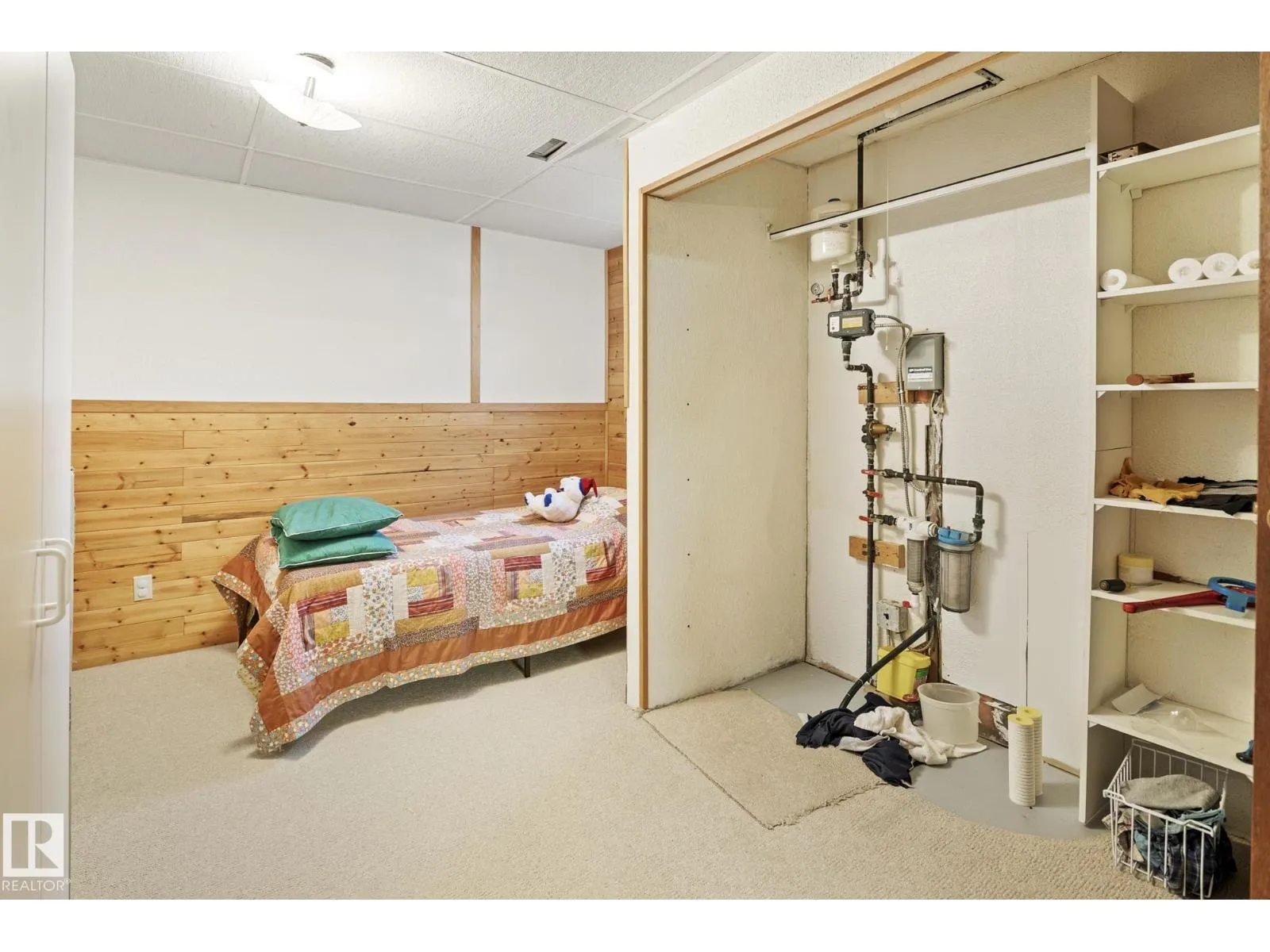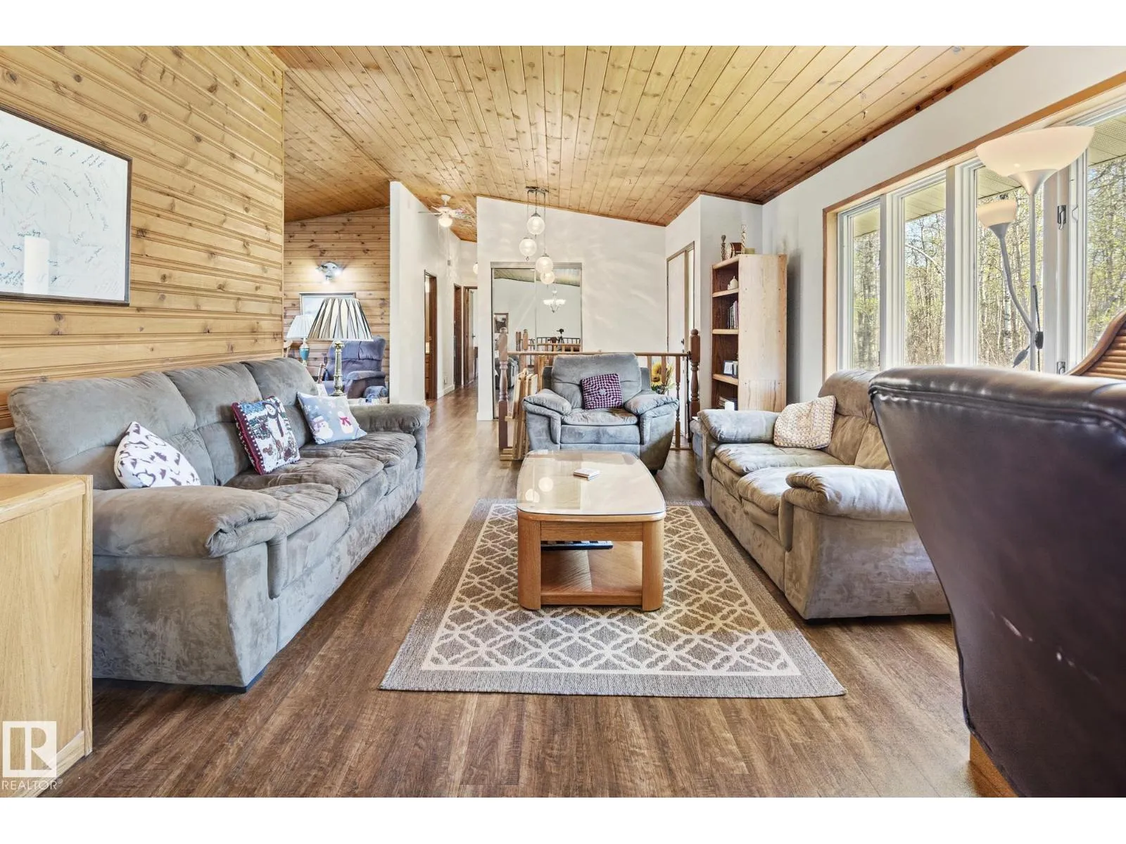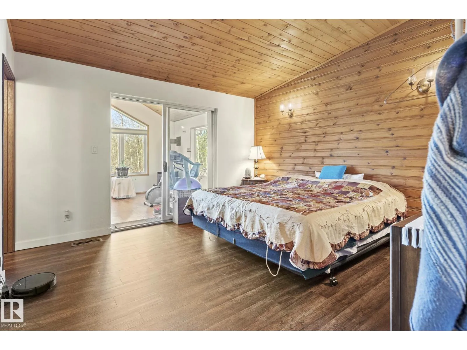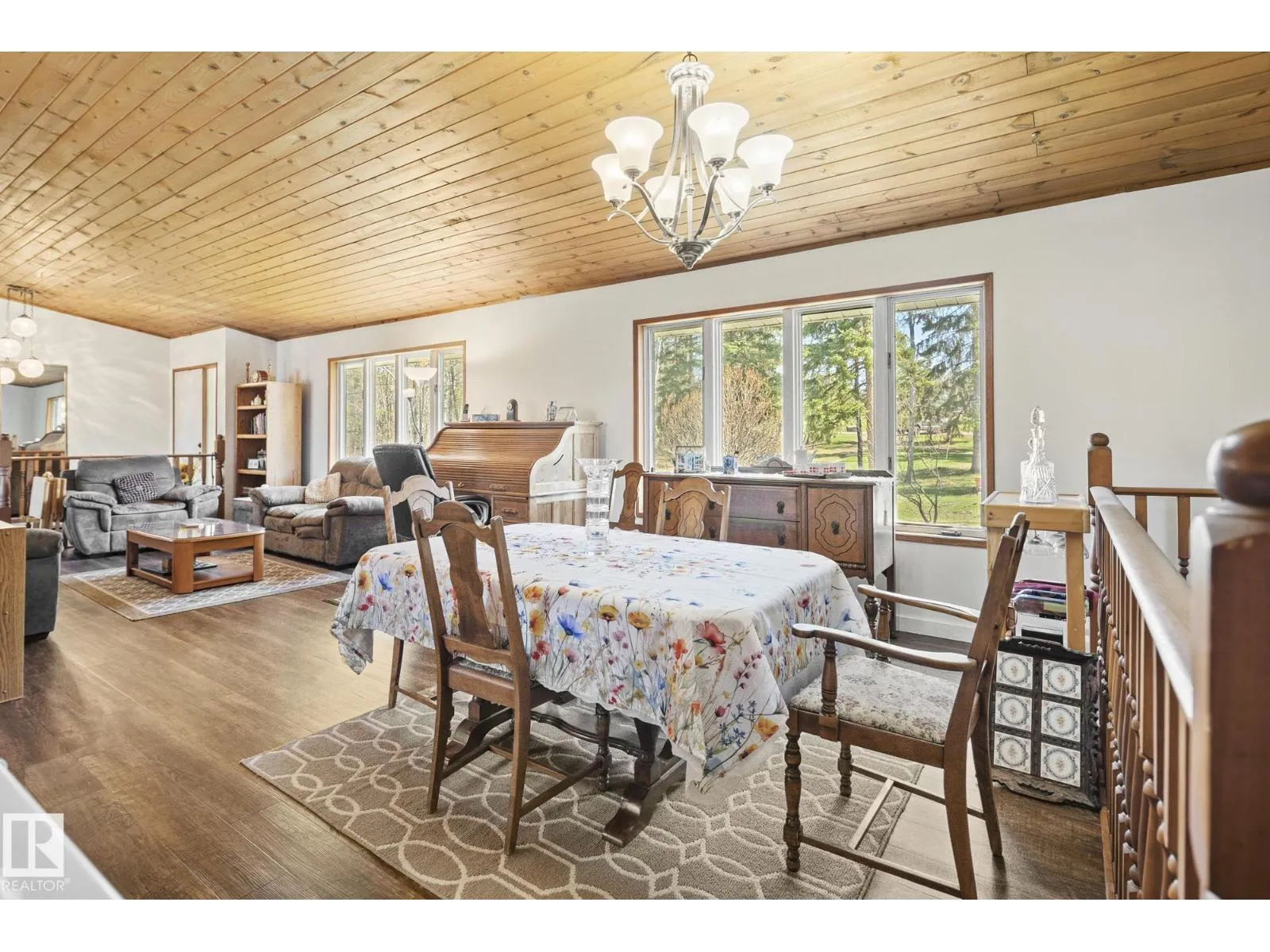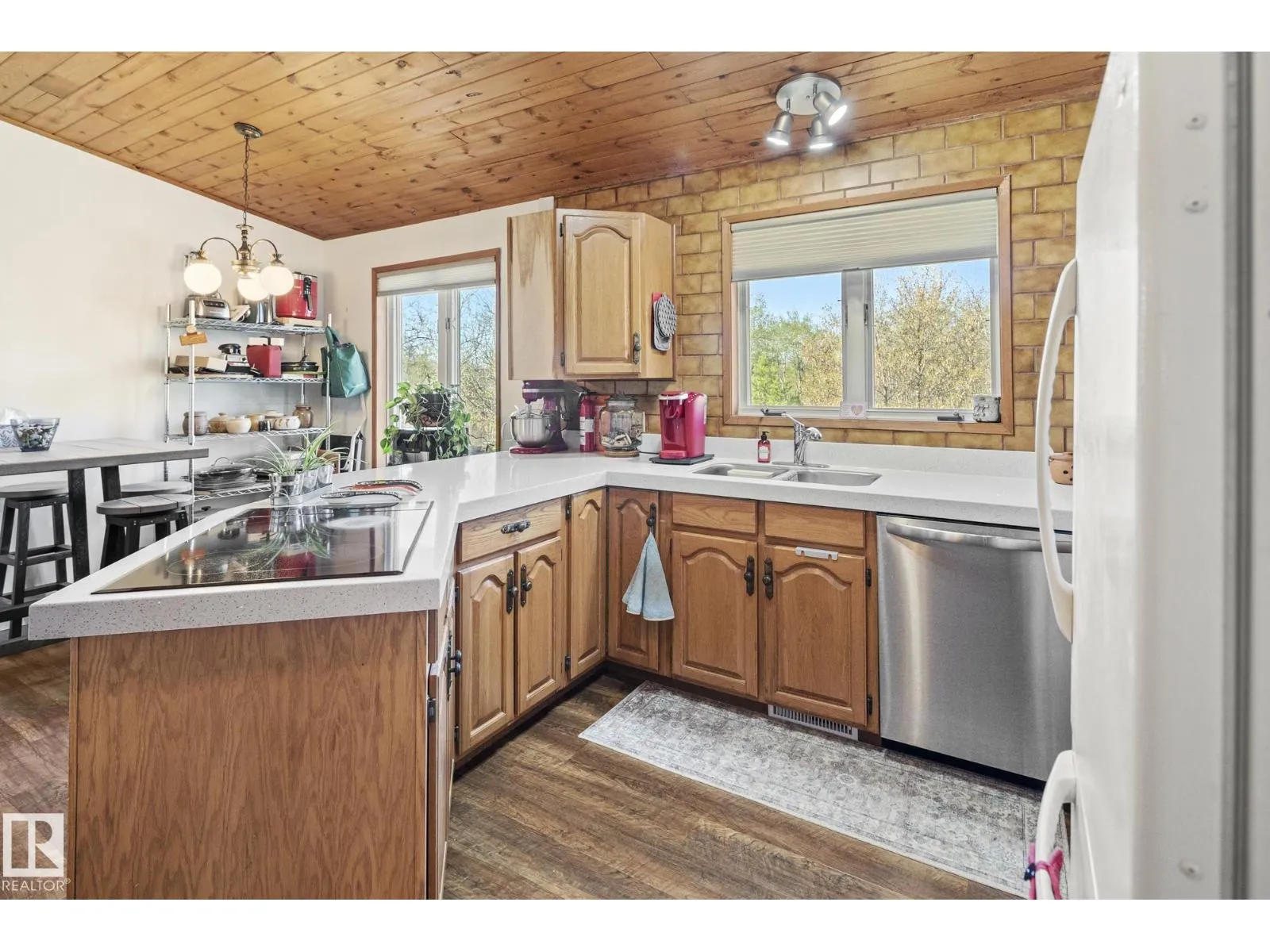 Welcome to this beautiful bungalow in the Gibbonslea subdivision, just minutes from the town of Gibbons, 5 minutes from Goose Hummock Golf Course and Jurassic Forest, with quick access to Highway 28A. Proudly owned by the original owners, this immaculately maintained sq. ft. home features vaulted pine-planked ceilings, vinyl flooring throughout the main floor, and a cozy corner wood-burning fireplace in the living room. The kitchen offers quartz countertops, a built-in oven, ample storage, and windows overlooking the property. The main floor includes three bedrooms, a 4-piece main bath, and a 4-piece ensuite off the primary bedroom, which also connects to a framed sunroom heated by a gas fireplace and surrounded by windows. The fully finished basement includes a hot tub room, a fourth bedroom, and generous storage space. An attached double garage and with man door out to a beautifully landscaped private yard with apple trees fire pit area. This is a must see character property. (id:27476)