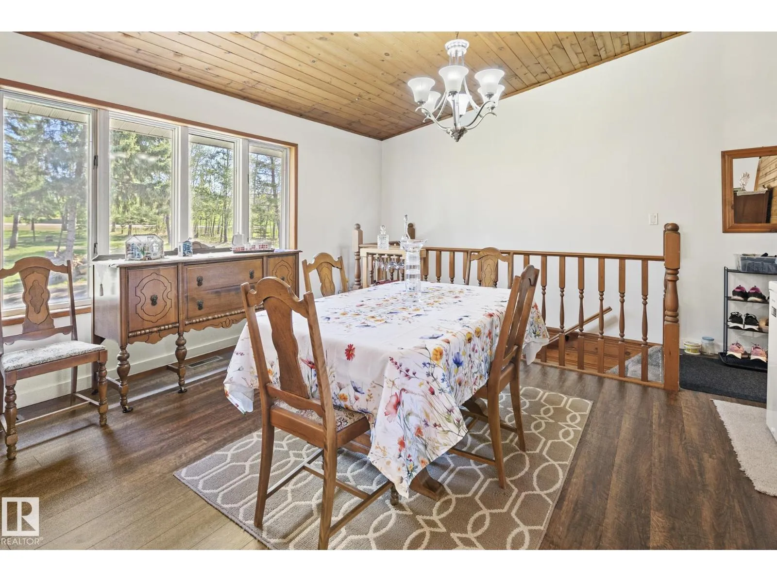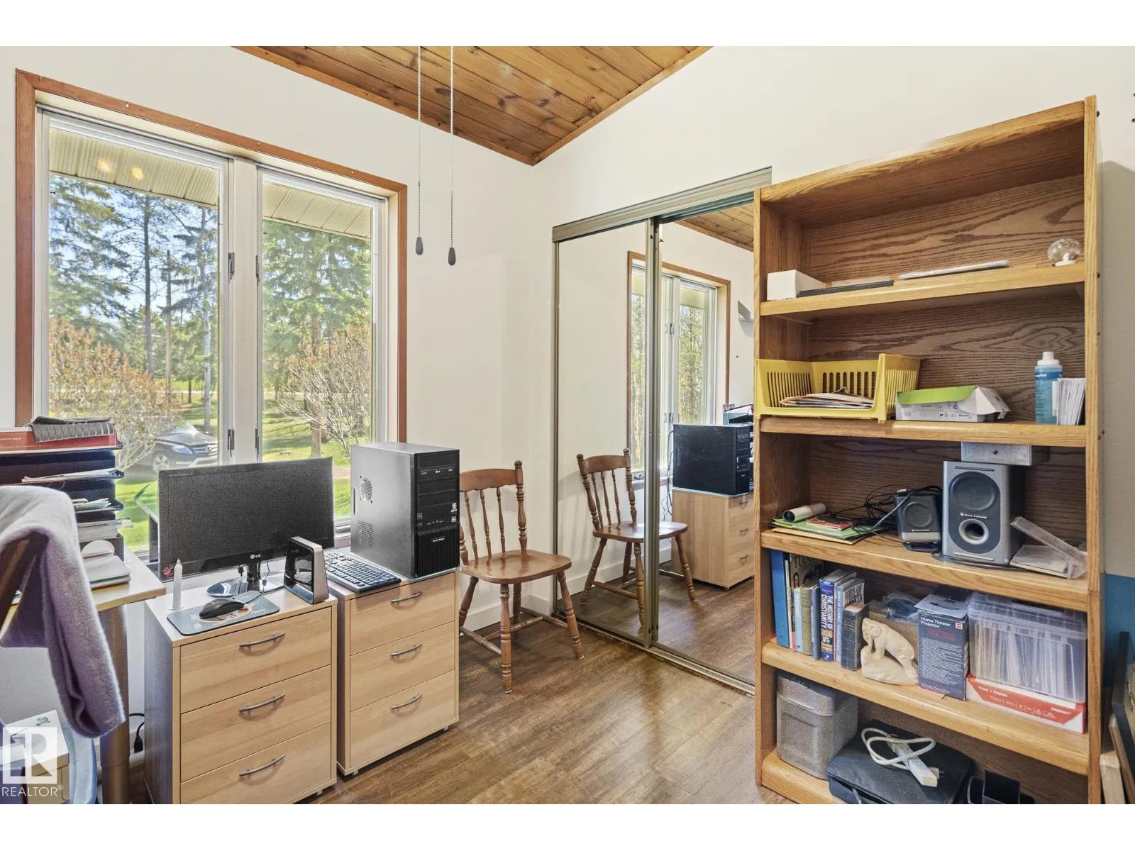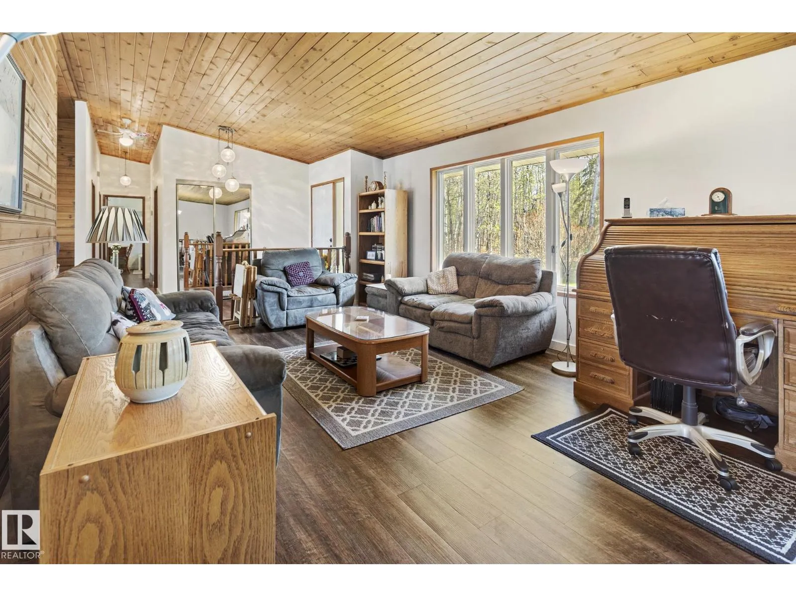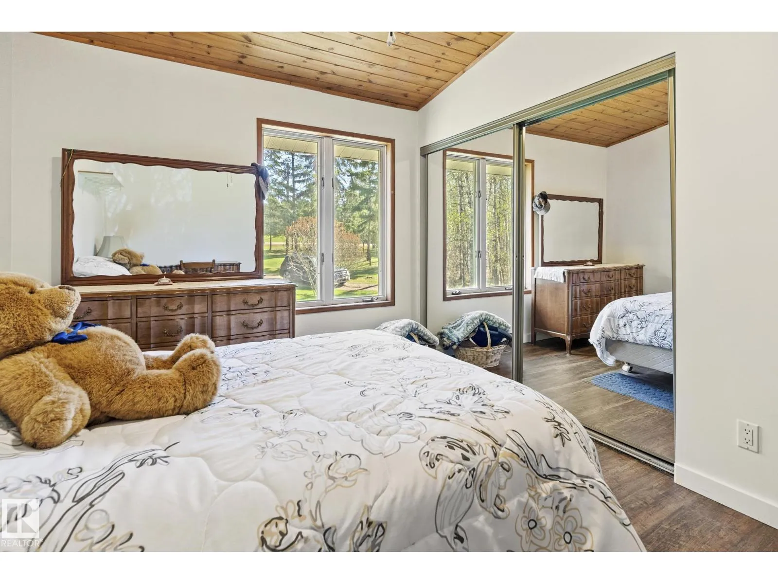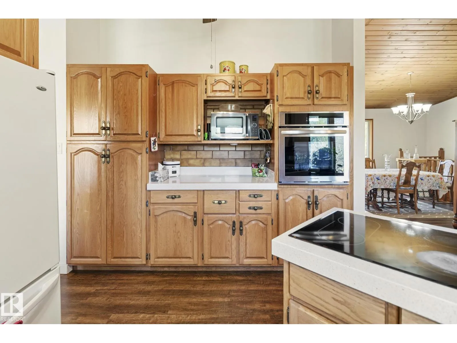 Welcome to this beautiful bungalow in the Gibbonslea subdivision, just minutes from the town of Gibbons, 5 minutes from Goose Hummock Golf Course and Jurassic Forest, with quick access to Highway 28A. Proudly owned by the original owners, this immaculately maintained sq. ft. home features vaulted pine-planked ceilings, vinyl flooring throughout the main floor, and a cozy corner wood-burning fireplace in the living room. The kitchen offers quartz countertops, a built-in oven, ample storage, and windows overlooking the property. The main floor includes three bedrooms, a 4-piece main bath, and a 4-piece ensuite off the primary bedroom, which also connects to a framed sunroom heated by a gas fireplace and surrounded by windows. The fully finished basement includes a hot tub room, a fourth bedroom, and generous storage space. An attached double garage and with man door out to a beautifully landscaped private yard with apple trees fire pit area. This is a must see character property. (id:27476)