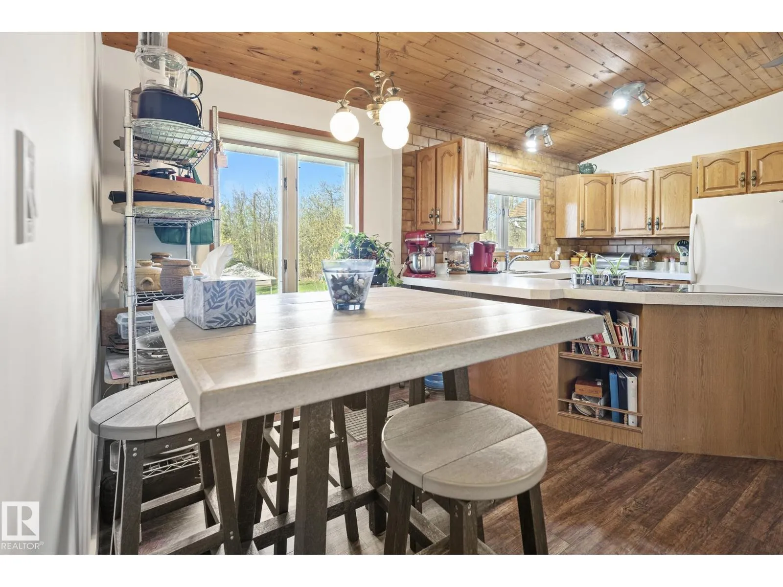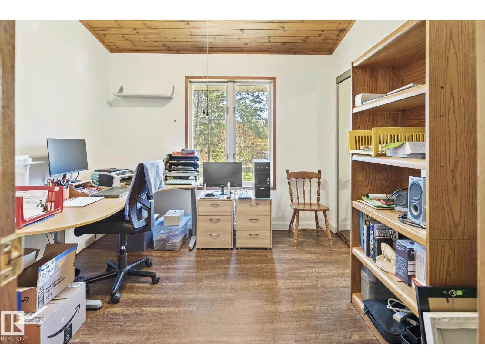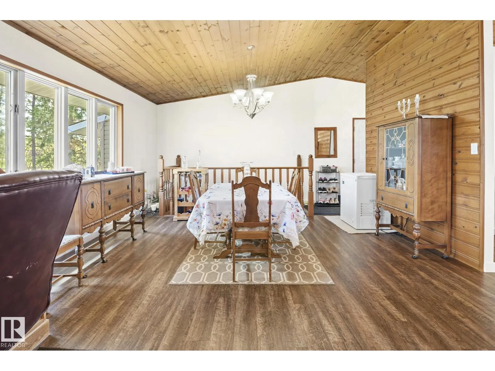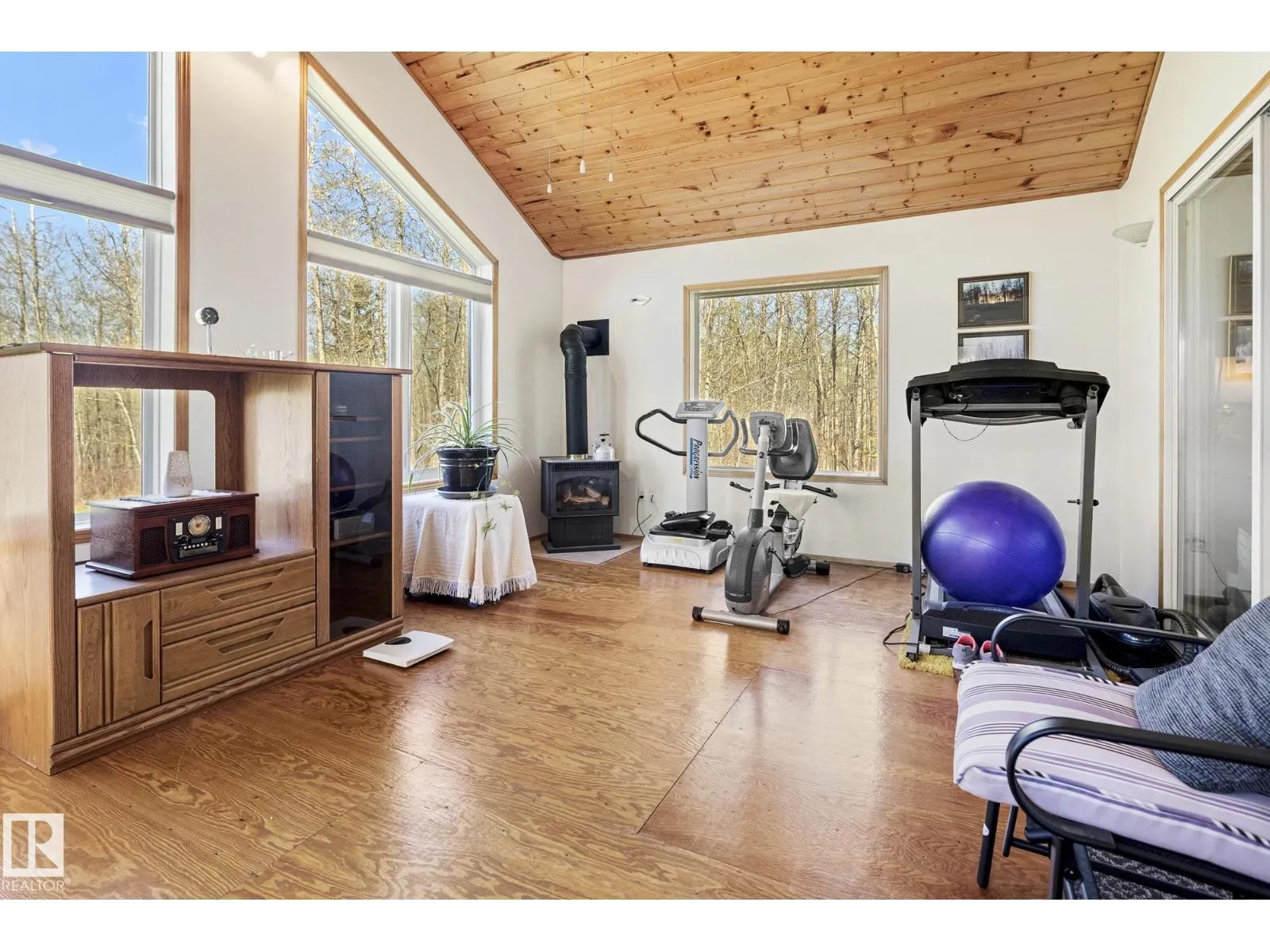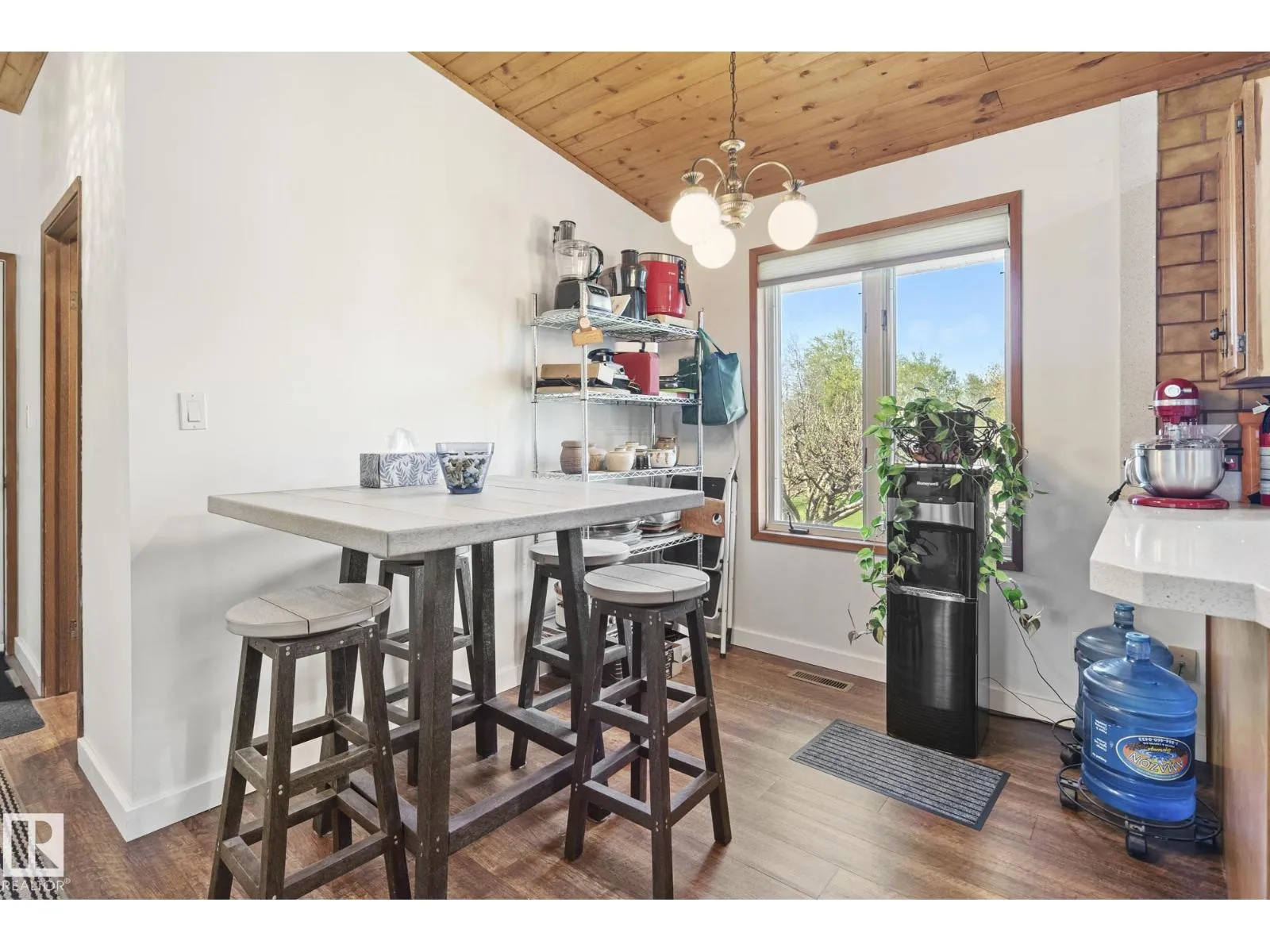 Welcome to this beautiful bungalow in the Gibbonslea subdivision, just minutes from the town of Gibbons, 5 minutes from Goose Hummock Golf Course and Jurassic Forest, with quick access to Highway 28A. Proudly owned by the original owners, this immaculately maintained sq. ft. home features vaulted pine-planked ceilings, vinyl flooring throughout the main floor, and a cozy corner wood-burning fireplace in the living room. The kitchen offers quartz countertops, a built-in oven, ample storage, and windows overlooking the property. The main floor includes three bedrooms, a 4-piece main bath, and a 4-piece ensuite off the primary bedroom, which also connects to a framed sunroom heated by a gas fireplace and surrounded by windows. The fully finished basement includes a hot tub room, a fourth bedroom, and generous storage space. An attached double garage and with man door out to a beautifully landscaped private yard with apple trees fire pit area. This is a must see character property. (id:27476)