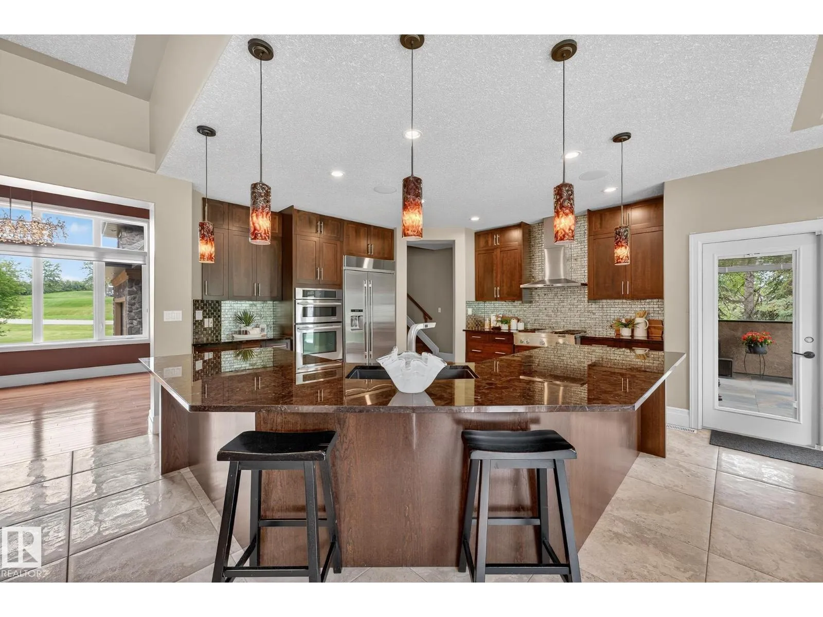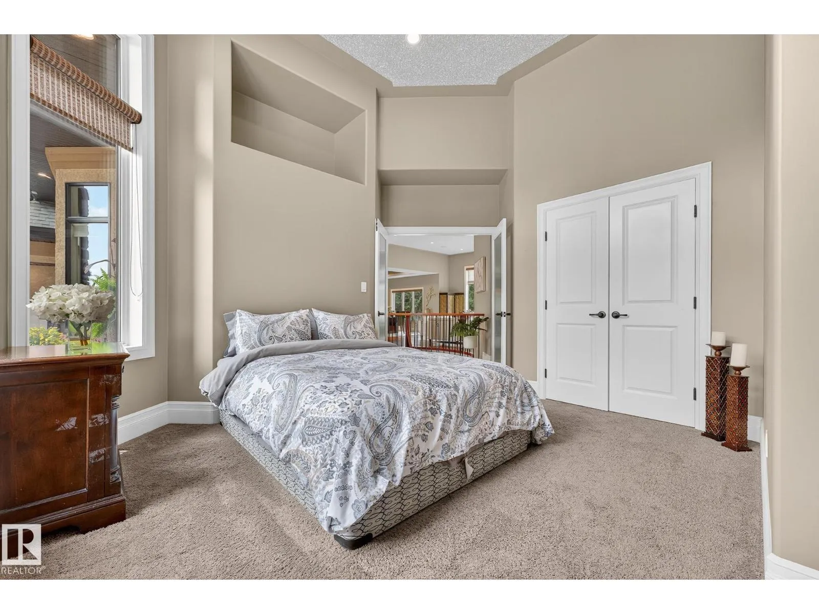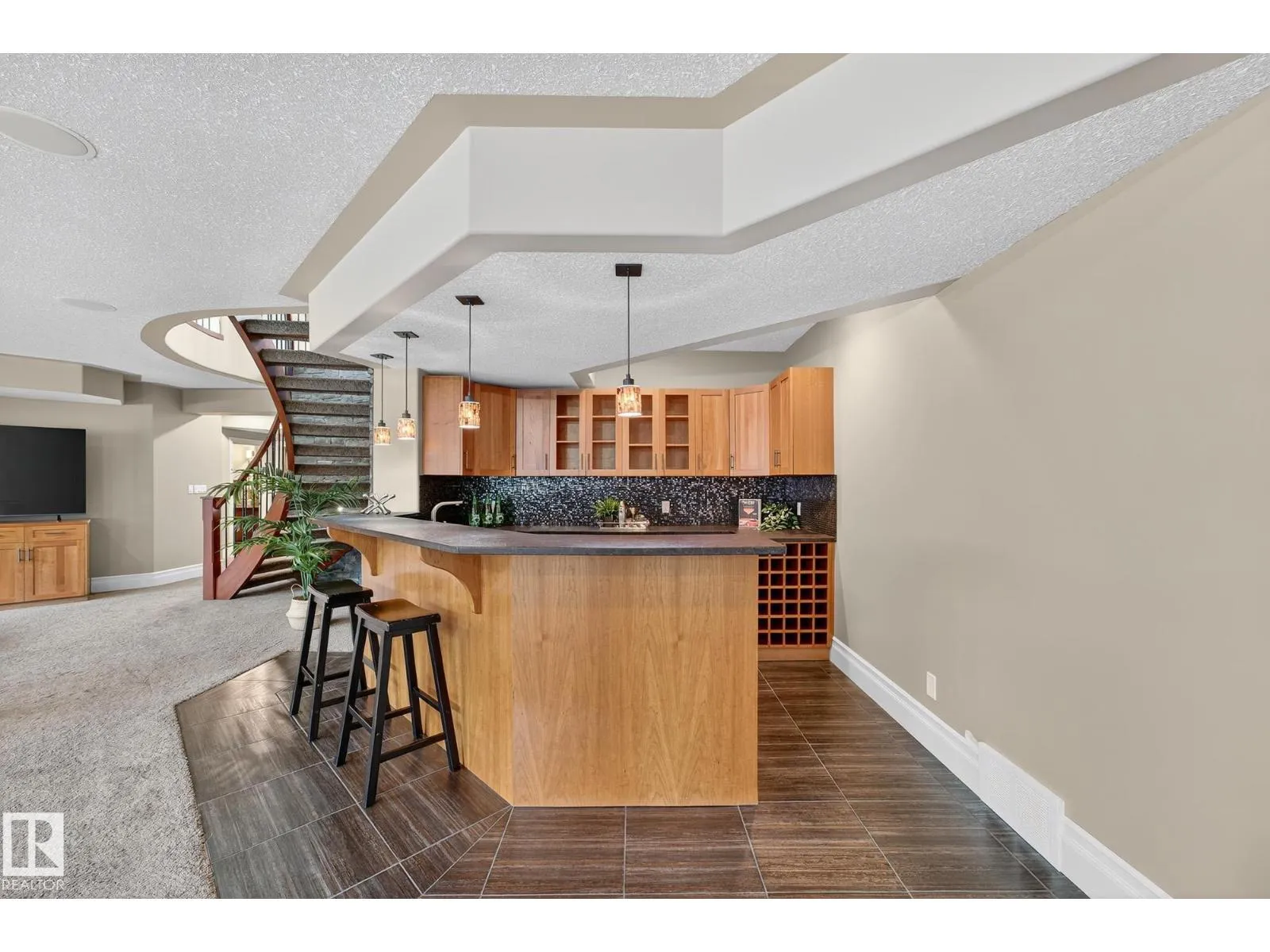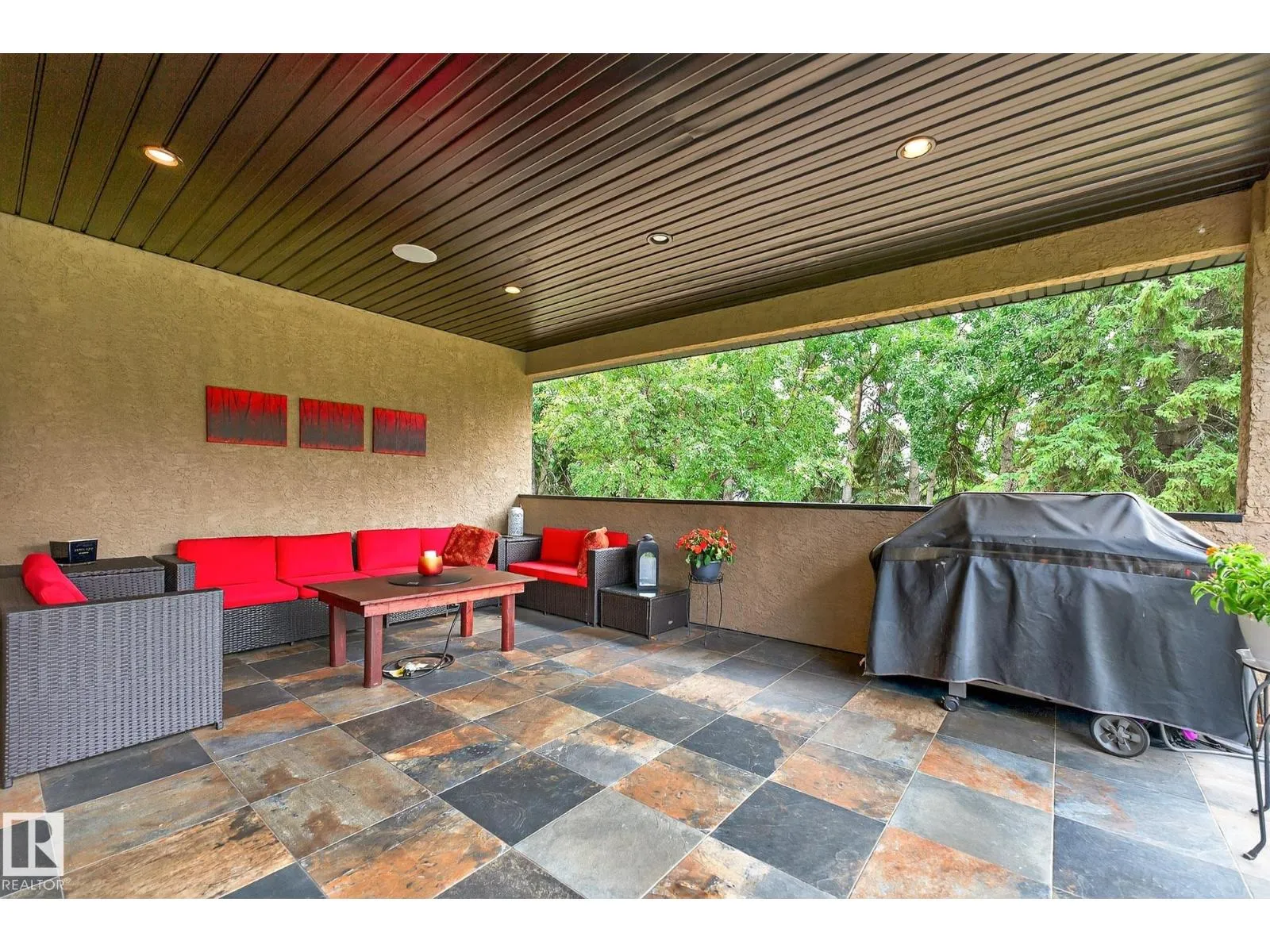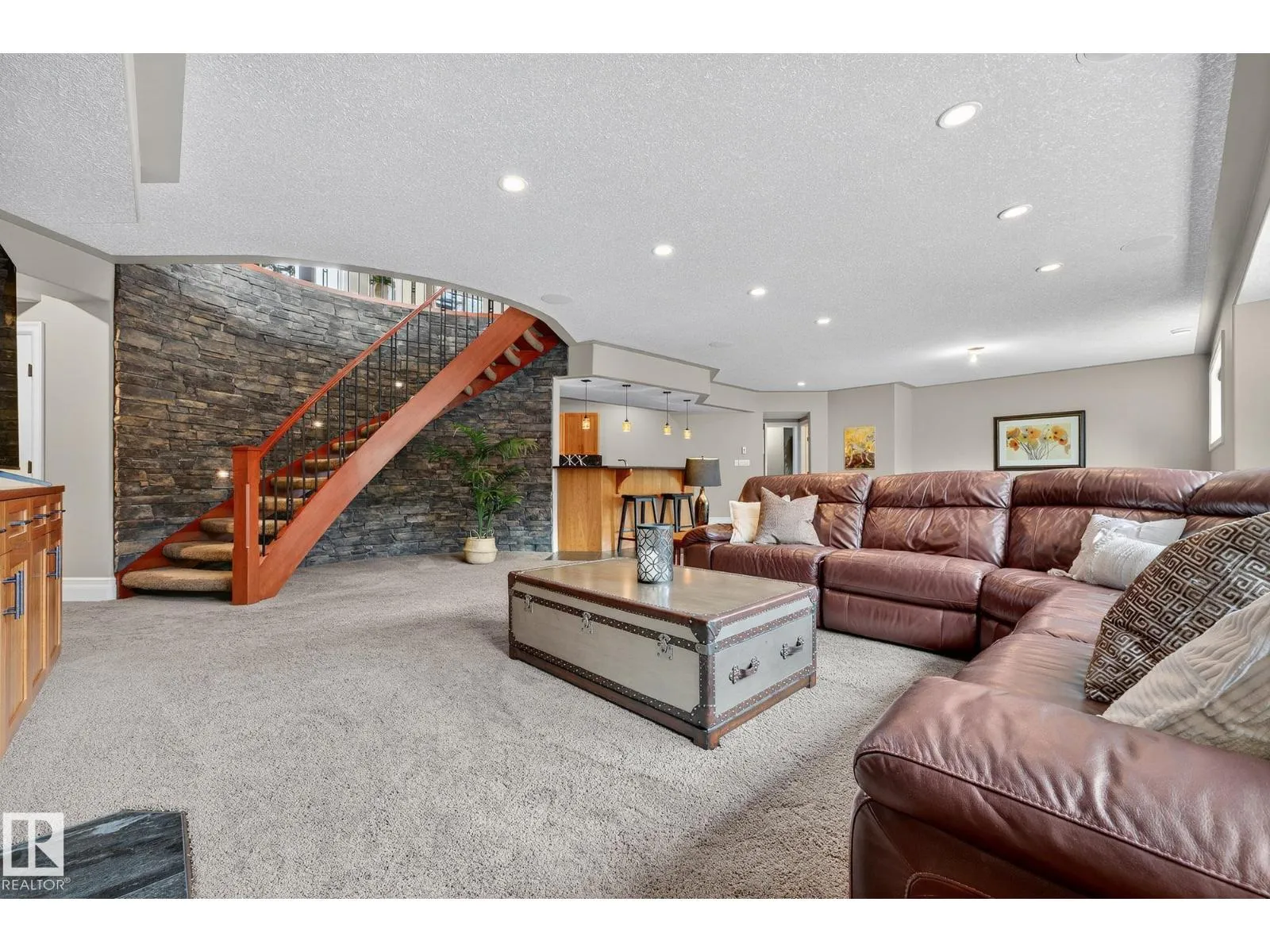 Welcome to Namao Ridge! This custom-built bungalow, situated on 1.67 acres, offers upscale living with unparalleled privacy. A dramatic curved staircase set against a stone feature wall, tray ceilings, and wall-to-wall windows elevate the open-concept main level. Enjoy a chef-inspired kitchen with rich cabinetry, granite countertops, and premium appliances, open to the living and dining areas, featuring a striking stone fireplace. The main floor includes the spacious primary suite, a second bedroom, and a formal dining room with architectural detailing. Downstairs features 3 bedrooms, a full bath, a half bath, a home gym, and a spacious rec room with room for a pool table. The show-stopping bar includes custom cabinetry, tile backsplash, and seating. A dedicated theatre room above the 4-car garage is perfect for movie nights. The 1,824sqft heated shop is finished with power, making it ideal for trades, storage, or your dream workspace. A covered patio and mature trees round out this exceptional property. (id:27476)
