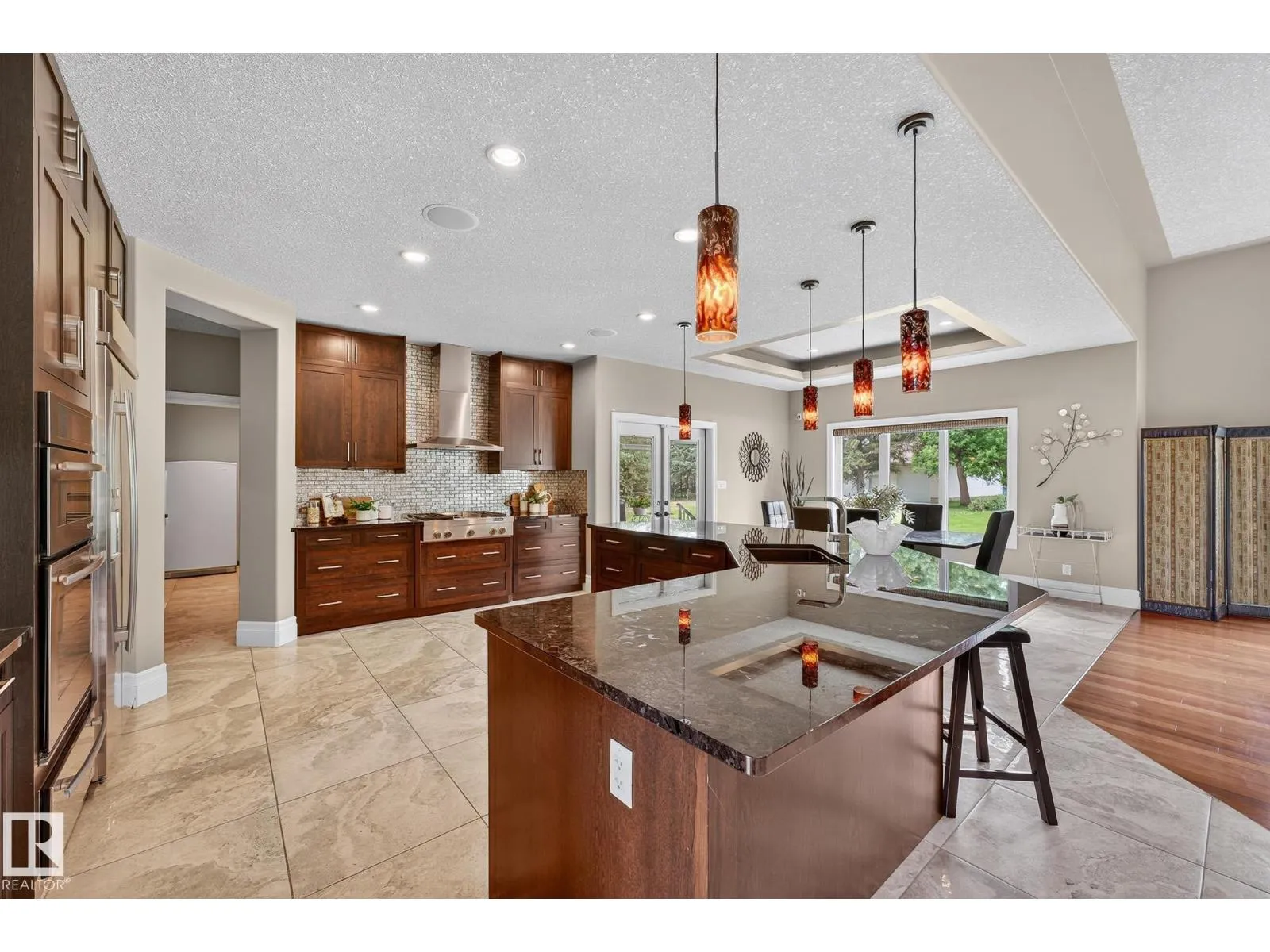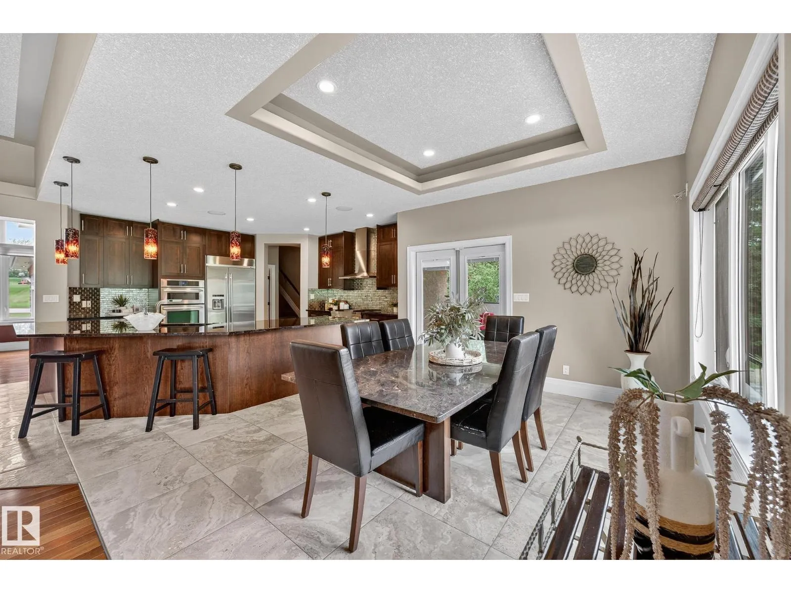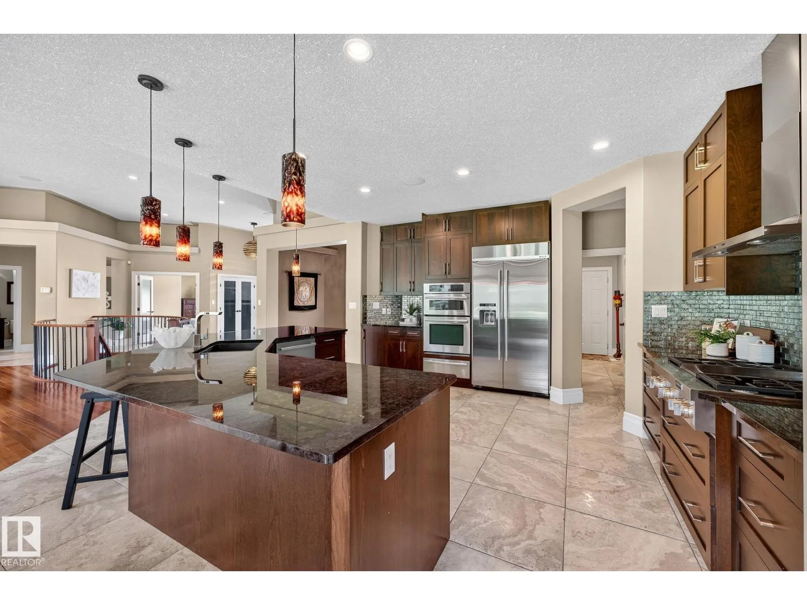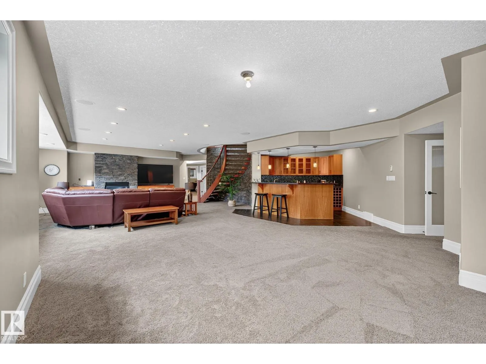 Welcome to Namao Ridge! This custom-built bungalow, situated on 1.67 acres, offers upscale living with unparalleled privacy. A dramatic curved staircase set against a stone feature wall, tray ceilings, and wall-to-wall windows elevate the open-concept main level. Enjoy a chef-inspired kitchen with rich cabinetry, granite countertops, and premium appliances, open to the living and dining areas, featuring a striking stone fireplace. The main floor includes the spacious primary suite, a second bedroom, and a formal dining room with architectural detailing. Downstairs features 3 bedrooms, a full bath, a half bath, a home gym, and a spacious rec room with room for a pool table. The show-stopping bar includes custom cabinetry, tile backsplash, and seating. A dedicated theatre room above the 4-car garage is perfect for movie nights. The 1,824sqft heated shop is finished with power, making it ideal for trades, storage, or your dream workspace. A covered patio and mature trees round out this exceptional property. (id:27476)