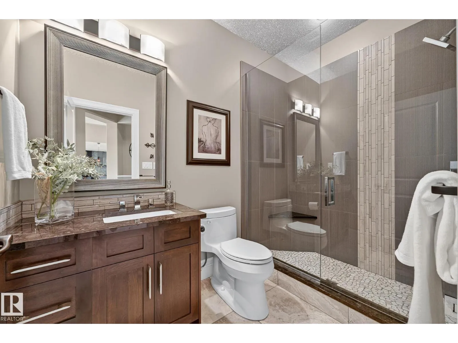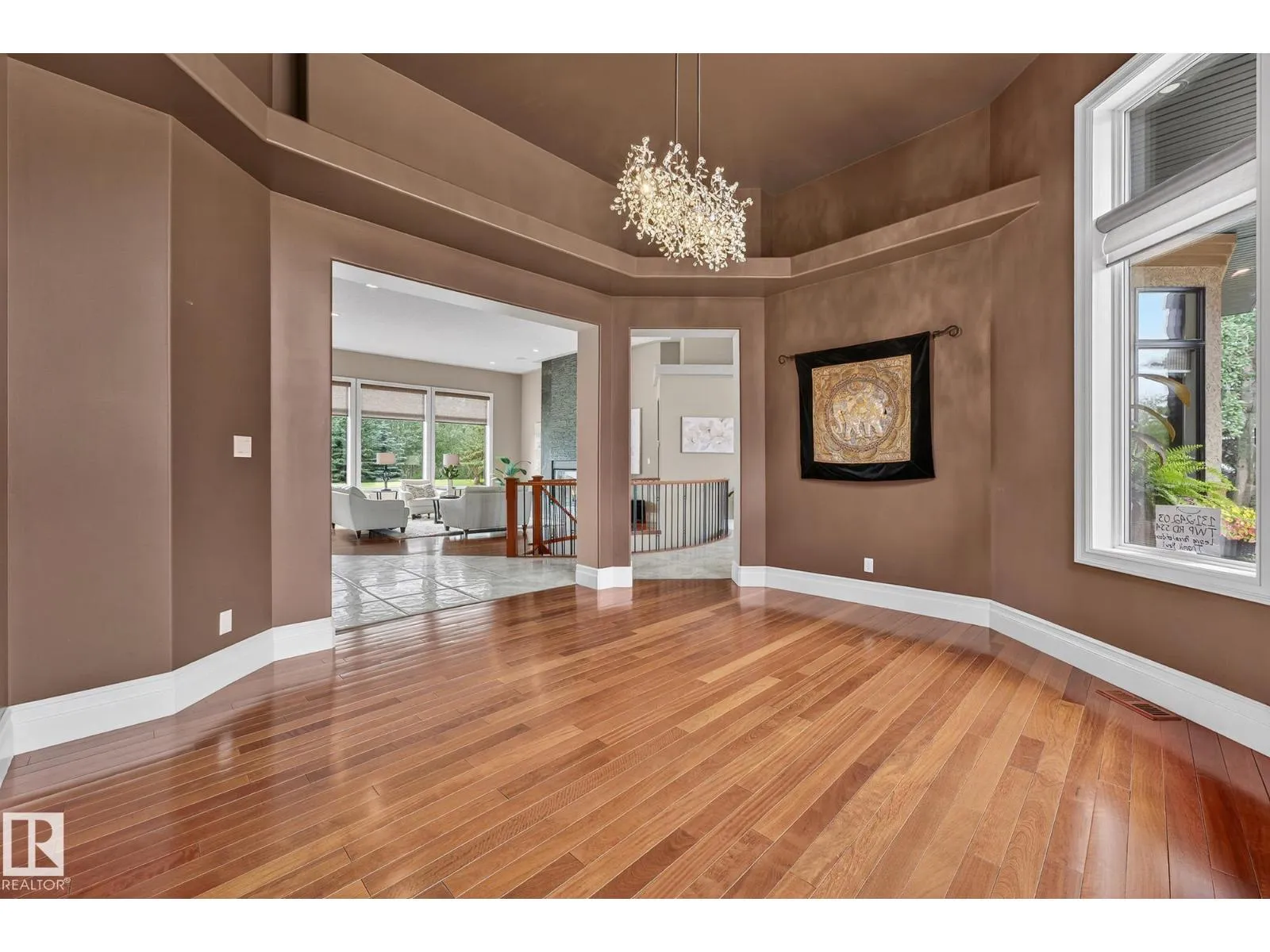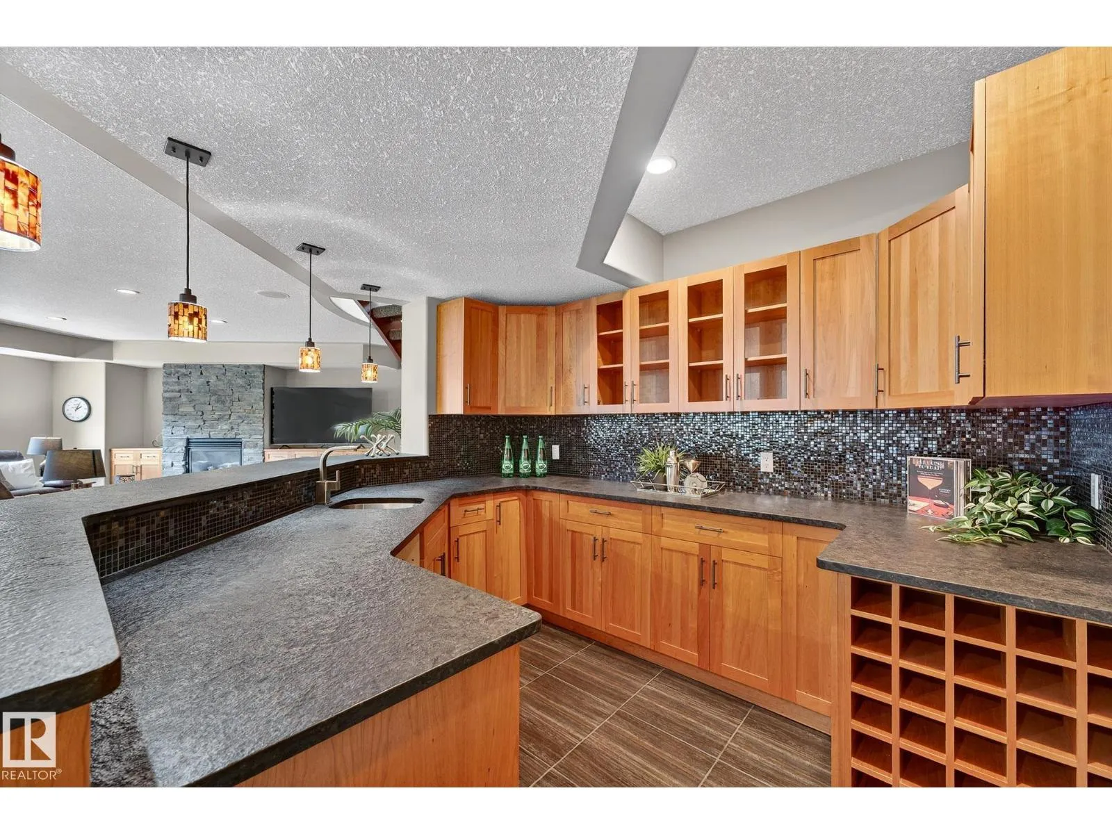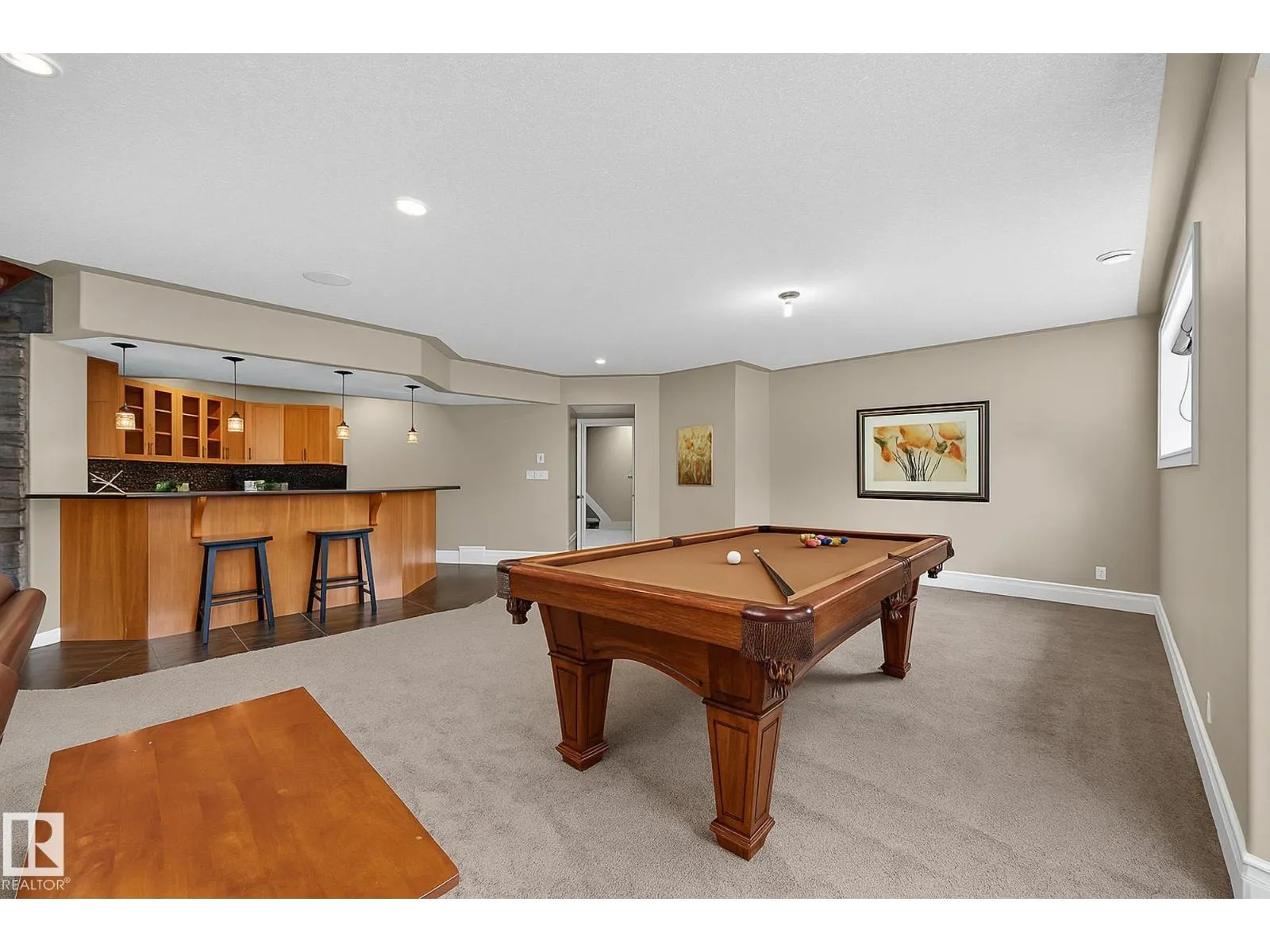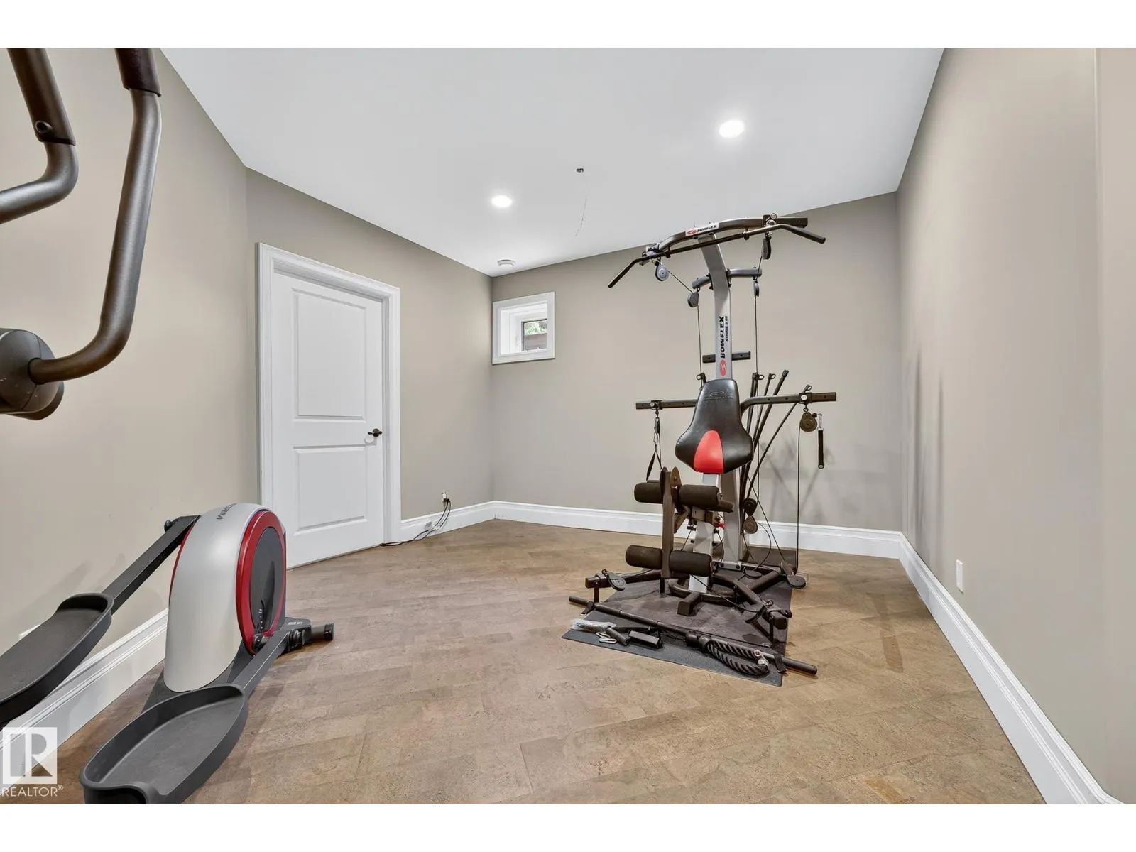 Welcome to Namao Ridge! This custom-built bungalow, situated on 1.67 acres, offers upscale living with unparalleled privacy. A dramatic curved staircase set against a stone feature wall, tray ceilings, and wall-to-wall windows elevate the open-concept main level. Enjoy a chef-inspired kitchen with rich cabinetry, granite countertops, and premium appliances, open to the living and dining areas, featuring a striking stone fireplace. The main floor includes the spacious primary suite, a second bedroom, and a formal dining room with architectural detailing. Downstairs features 3 bedrooms, a full bath, a half bath, a home gym, and a spacious rec room with room for a pool table. The show-stopping bar includes custom cabinetry, tile backsplash, and seating. A dedicated theatre room above the 4-car garage is perfect for movie nights. The 1,824sqft heated shop is finished with power, making it ideal for trades, storage, or your dream workspace. A covered patio and mature trees round out this exceptional property. (id:27476)
