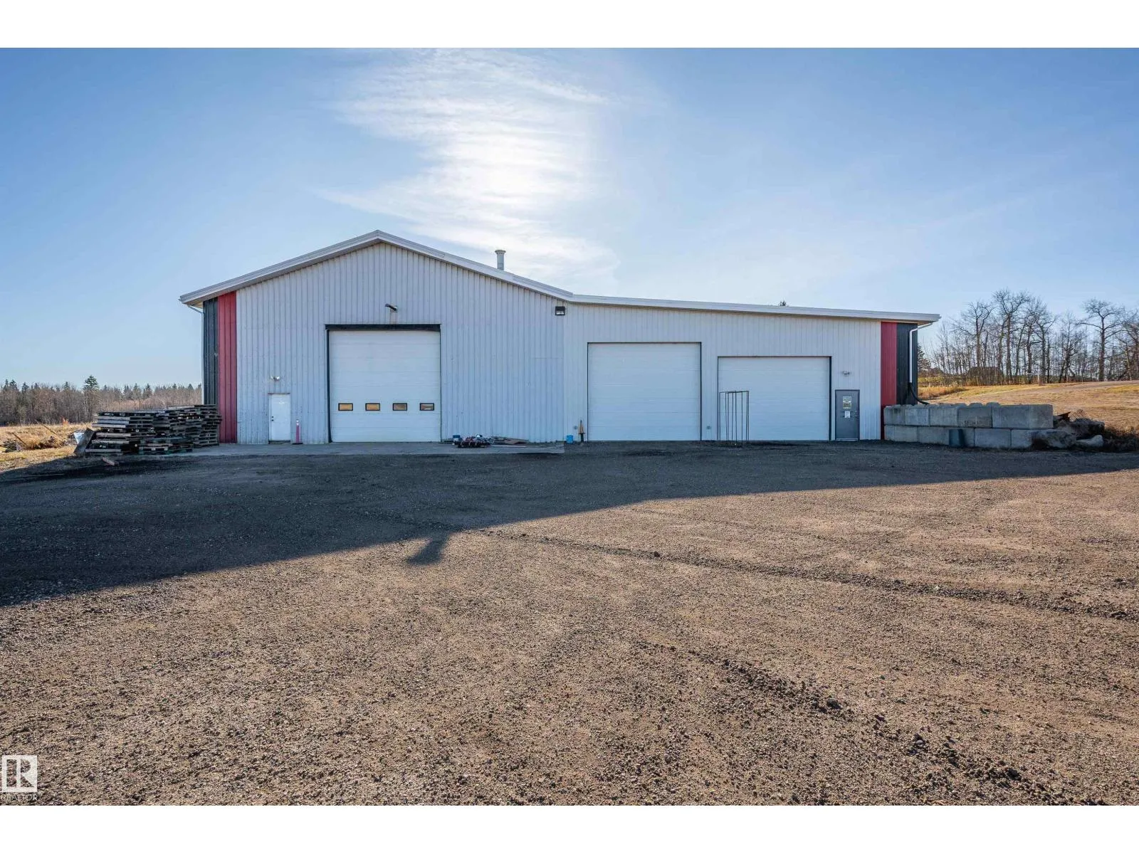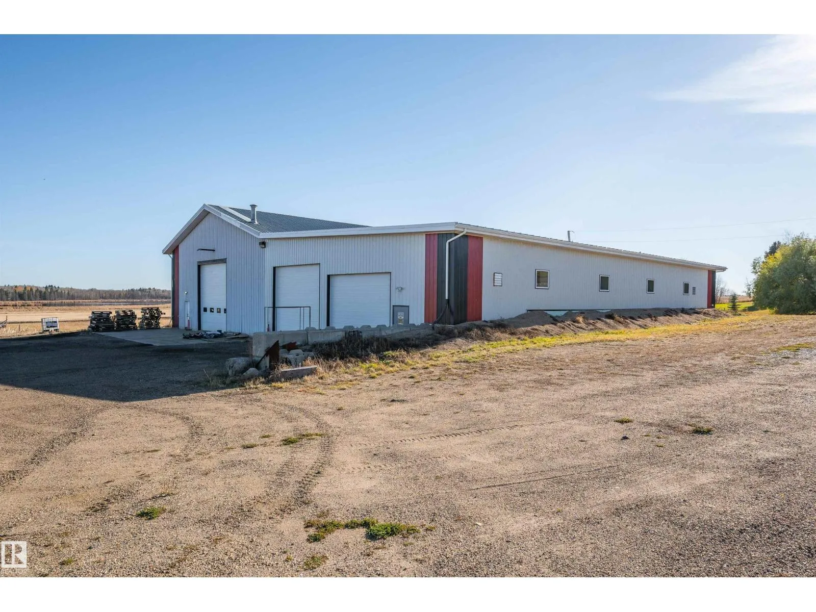 Experience Country Living & Business Potential on this private setting, 153 Acre parcel located just 30 min from Edmonton, St. Albert & Fort Sask. This prime property offers 58 acres of cultivatable land, a MASSIVE, 10 000 sqft SHOP, and a well-kept, 2 bed, 2 bath, 942 sqft, Modular Home. Zoned AG, this property is ideal for Agriculture, Investment or Business use. The packed gravel driveway leads to the concrete apron of the impressive SHOP which offers 3 well-lit Bays w/ 12, 14 & 16 ft automatic doors, floor drains, 200 amp electrical service (3 panels), radiant & forced air heating, and a total of 5000 gal cistern water supply. The Shop is ideally equipped w/ a 3-pc Washroom w/ Shower, a Lunchroom/Boardroom. The upper floor features the Kitchen & Office Area, complimented by working counter space, sink, ample storage & cupboards. The Third Bay of the shop has a Welding Area adorned w/ metal panels & sufficient electrical and Mezzanine above. This property is also equipped w/ a Cell Phone Booster. (id:27476)