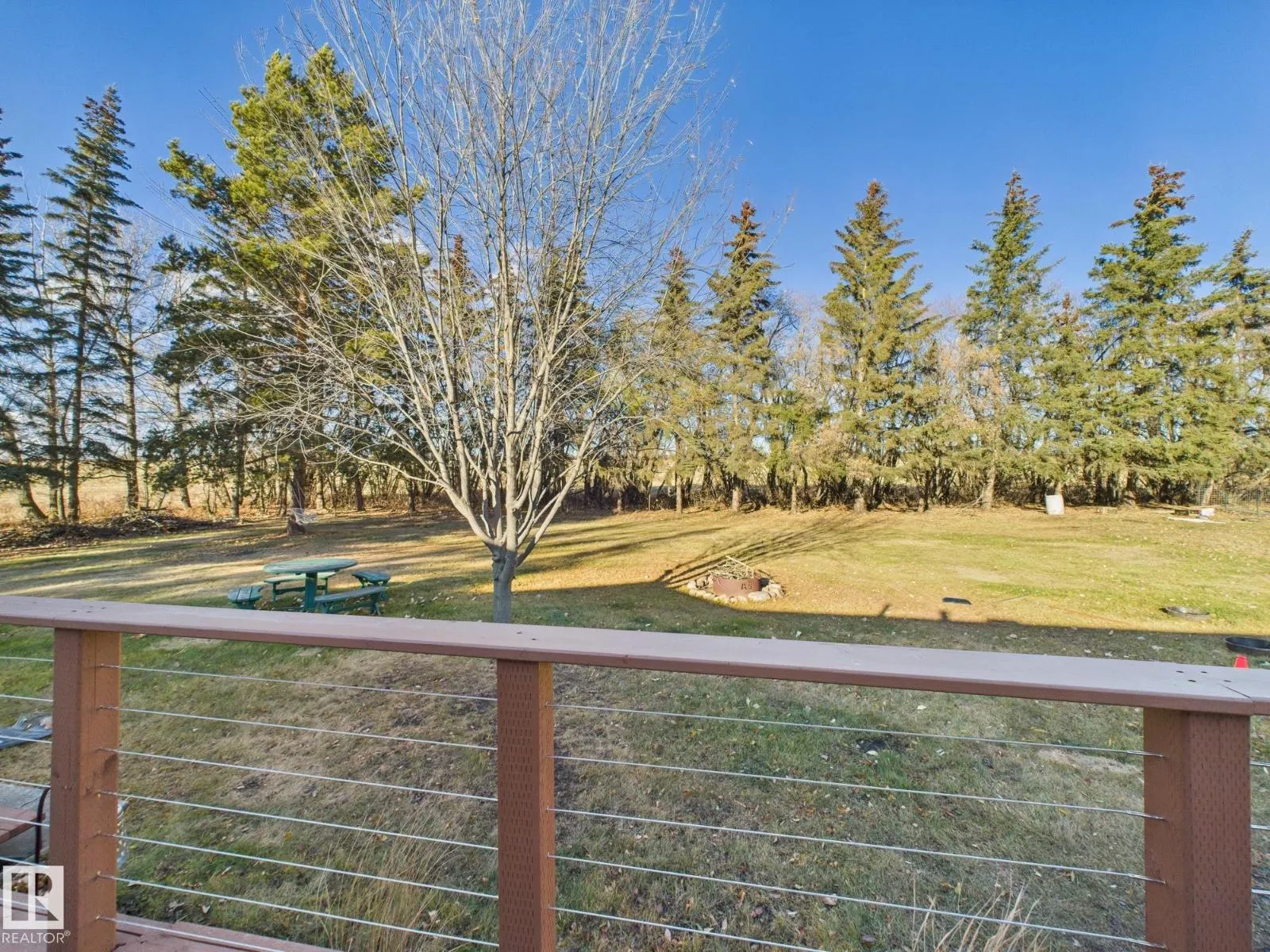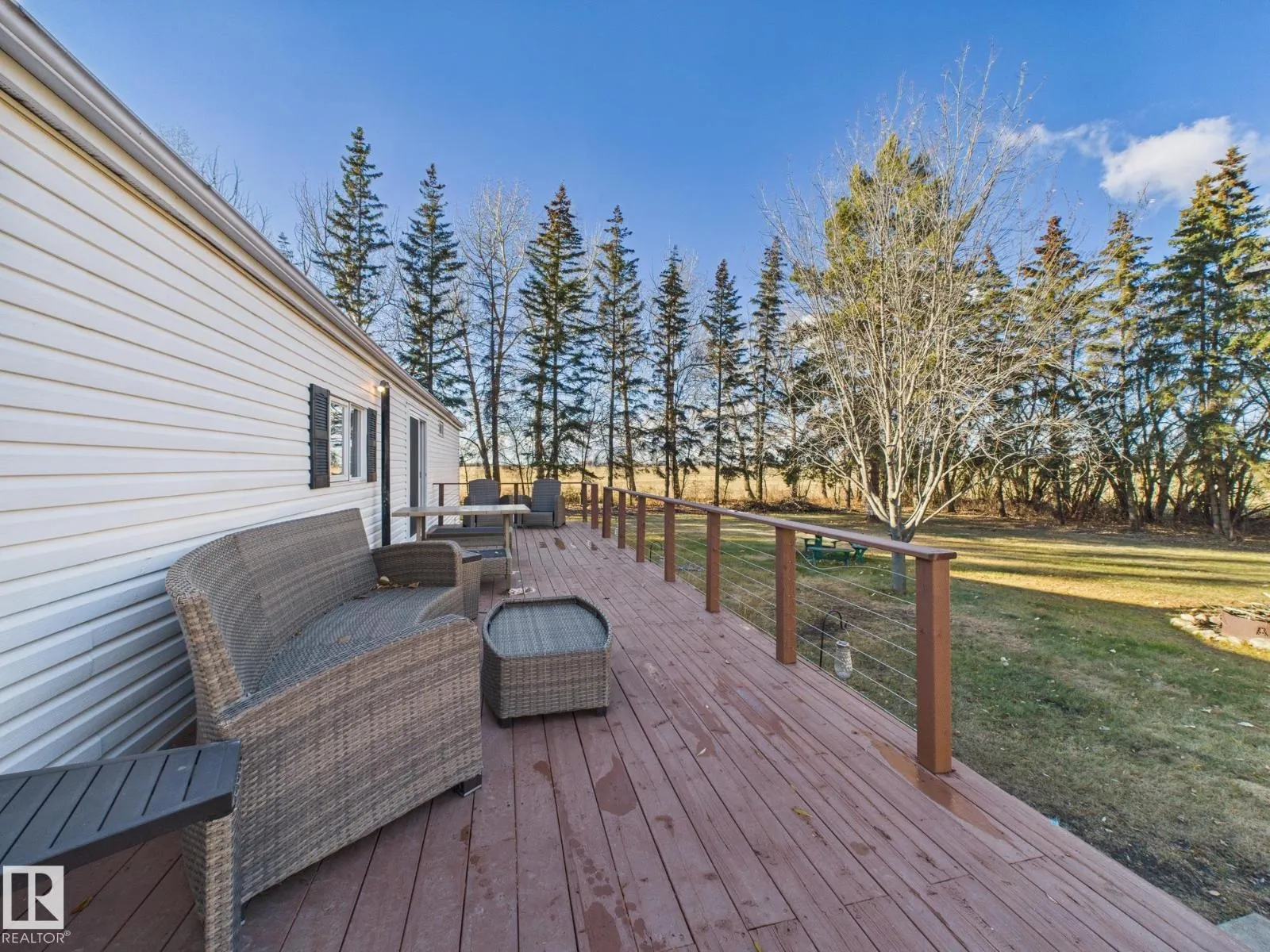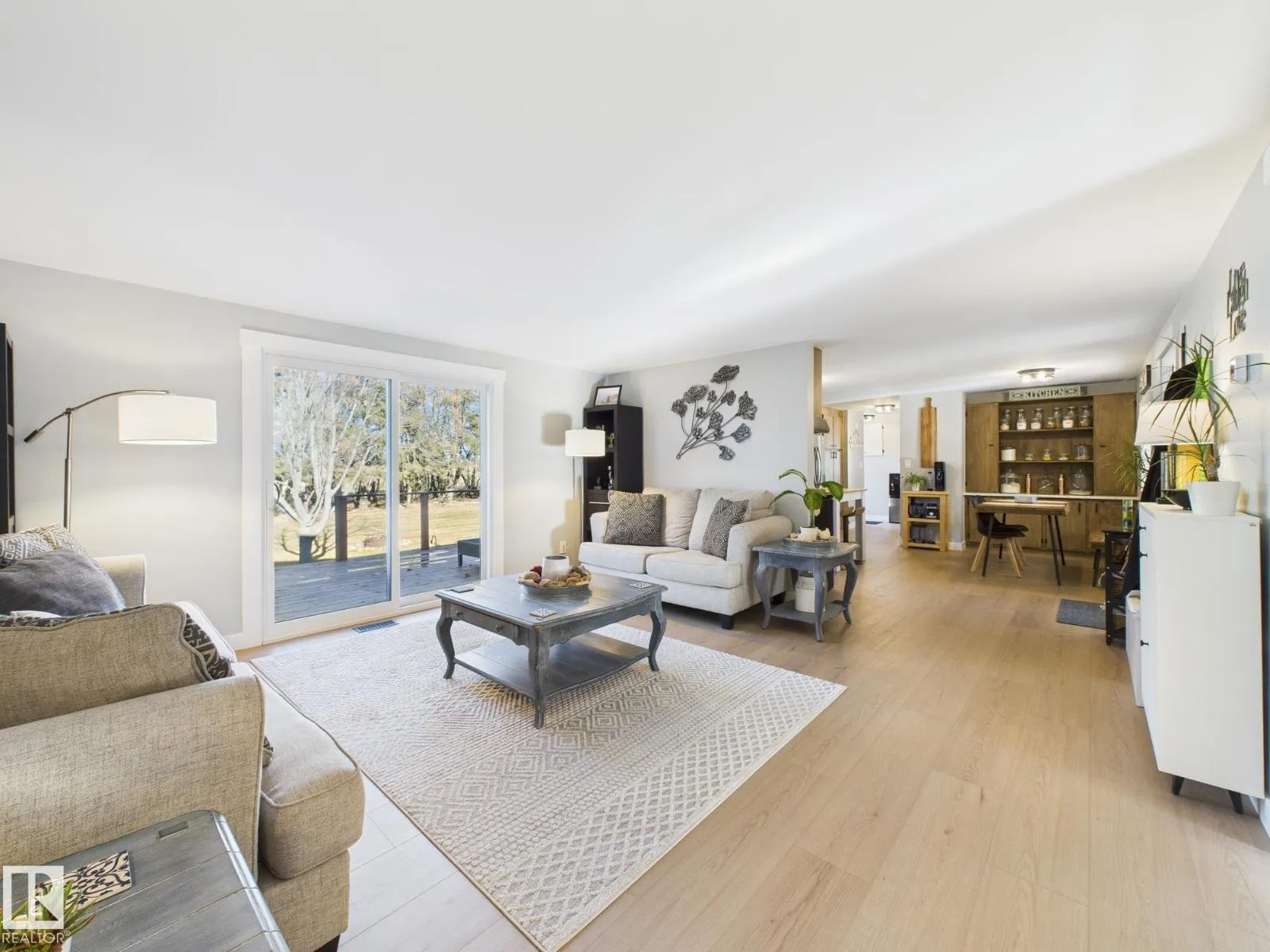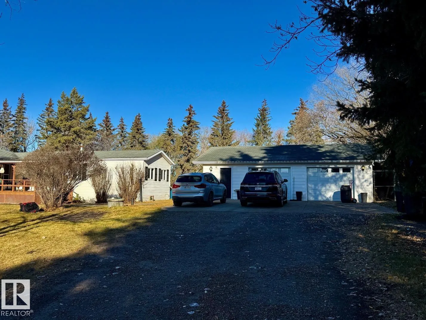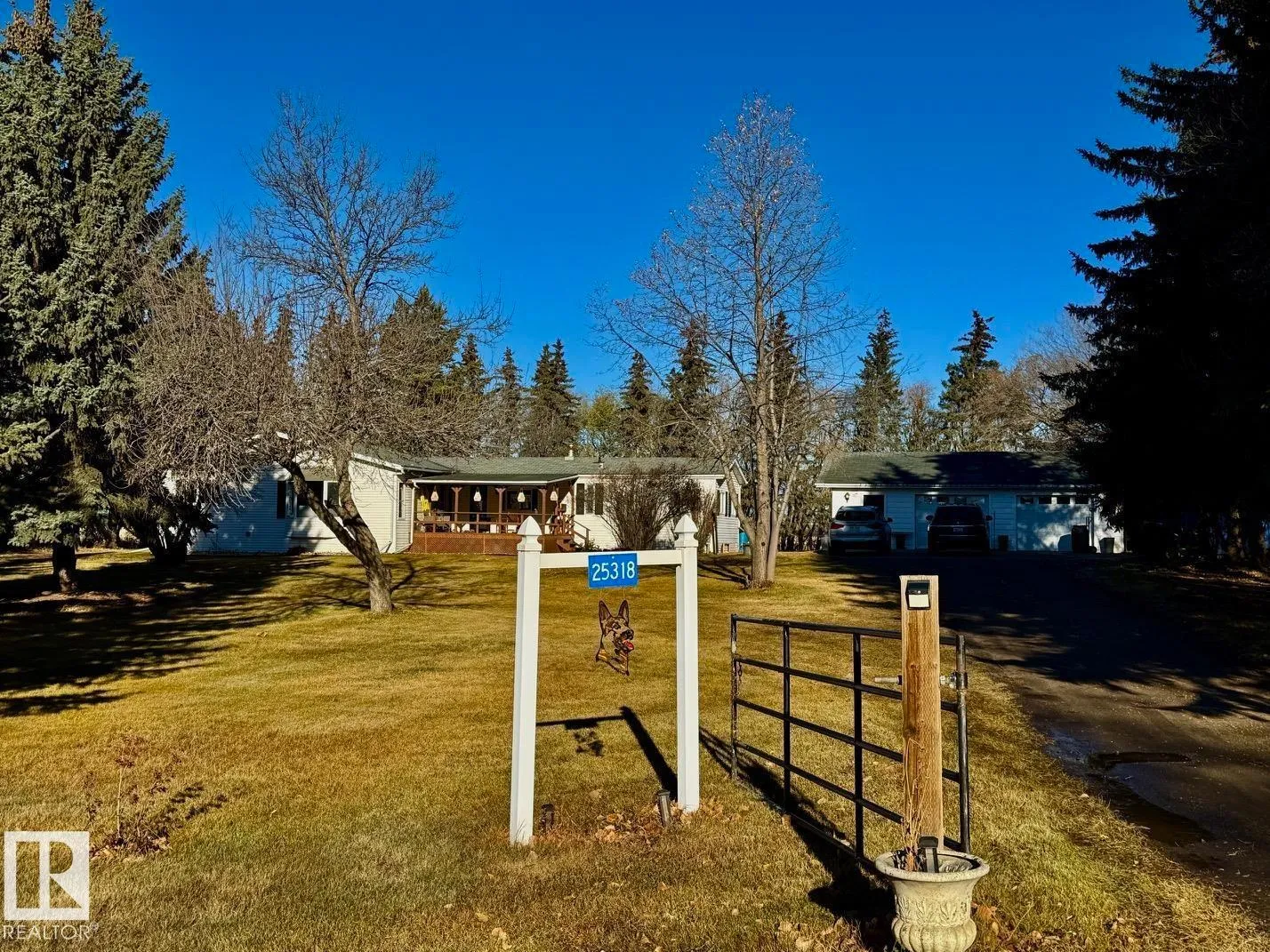 LOCATION LOCATION LOCATION! This beautifully renovated home sits on a stunning 1.5 acre property less than a kilometer from Hwy 2 between Morinville and St. Albert. Surrounded by mature trees, it offers peace, privacy, and space to enjoy the outdoors with family and friends. Imagine relaxing on the large south-facing covered front deck or hosting gatherings on the huge back deck overlooking this serene setting. Inside, the home is bright and inviting with big windows, vinyl plank flooring, and a flowing layout. Youâll love the three spacious bedrooms with generous closets and two gorgeous new bathrooms. Updates completed in 2025 include fresh paint, baseboards, both bathrooms, new light fixtures throughout, new front and back doors, a new kitchen entry door, and new balcony window. The oversized heated double garage is perfect for hobbies, storage, or parking. This property is the perfect blend of country charm and modern living just minutes from city conveniences. (id:27476)