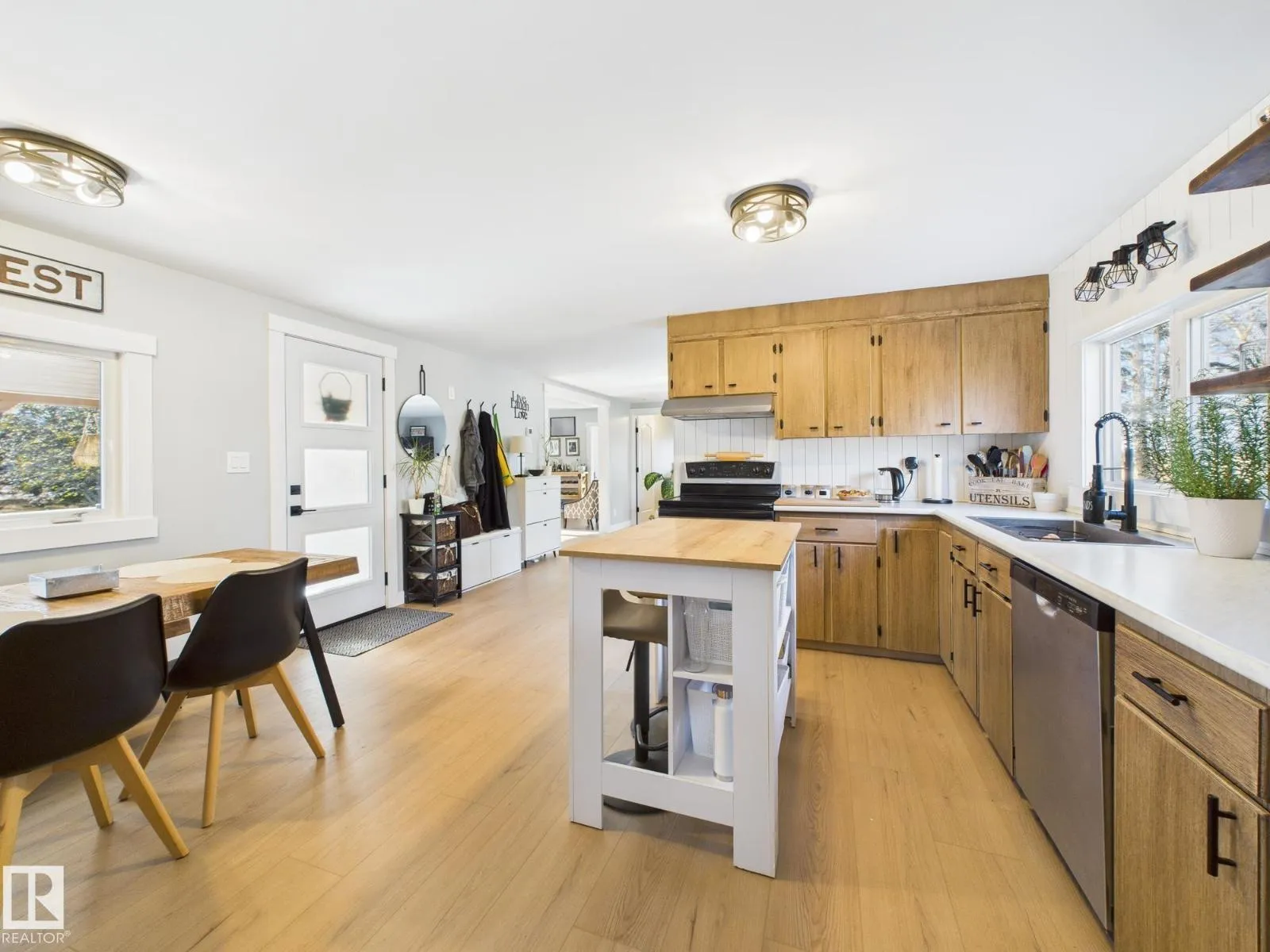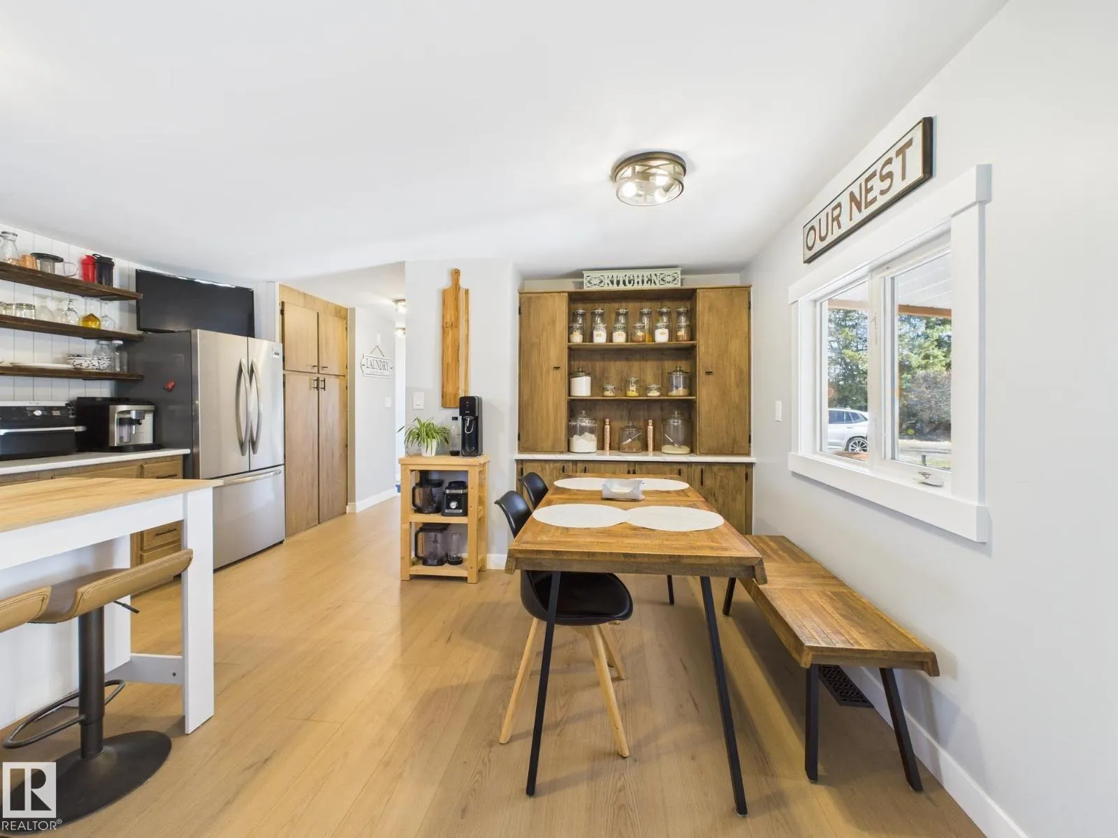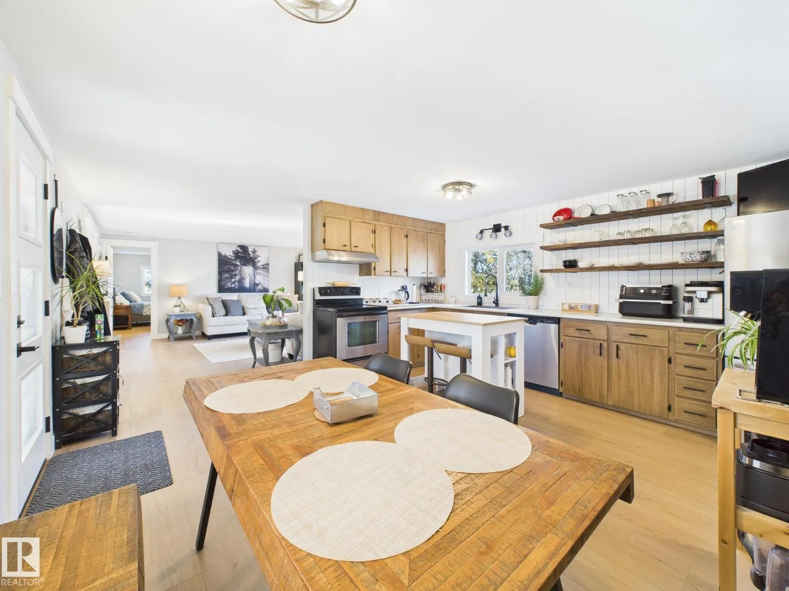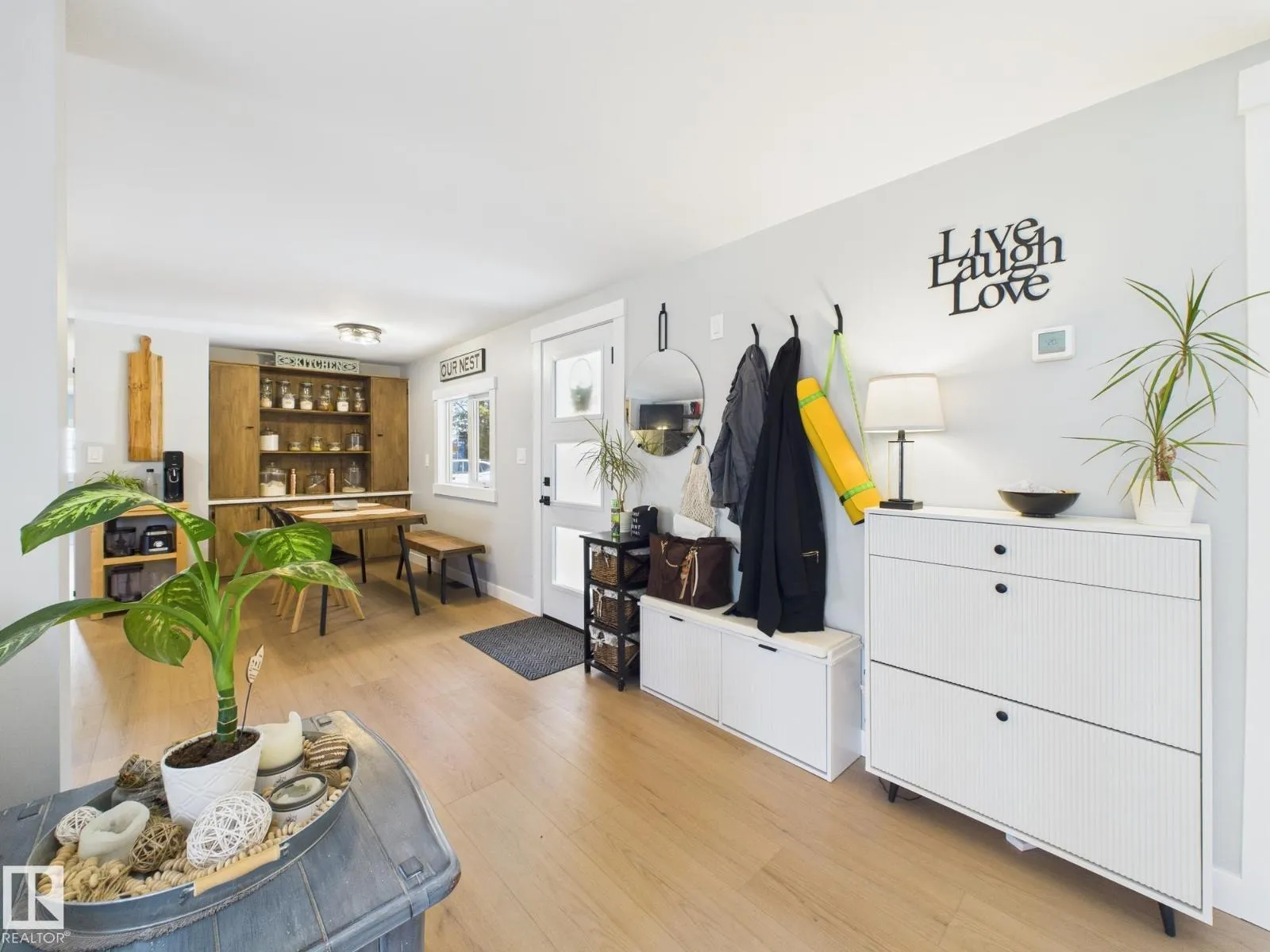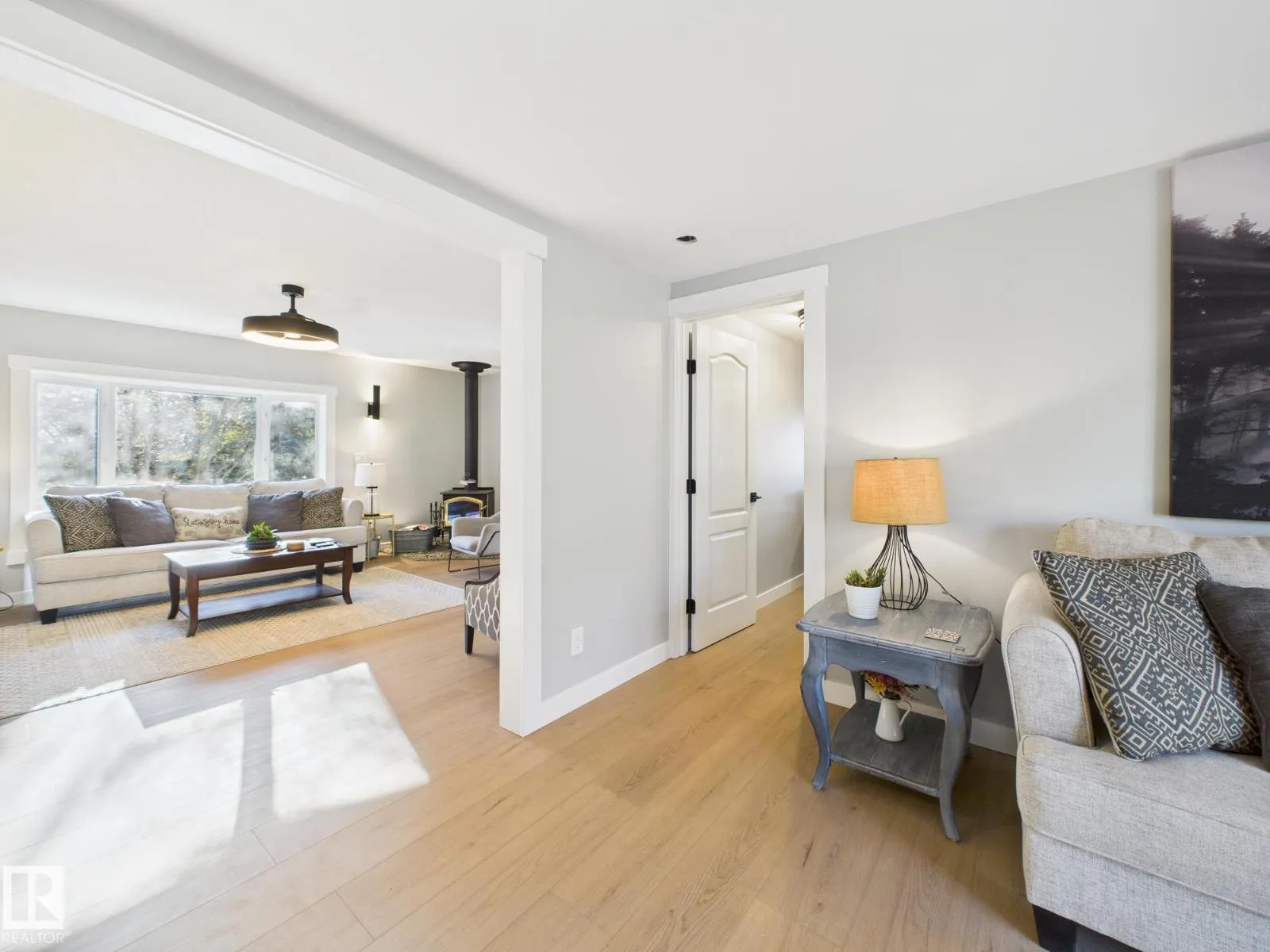 LOCATION LOCATION LOCATION! This beautifully renovated home sits on a stunning 1.5 acre property less than a kilometer from Hwy 2 between Morinville and St. Albert. Surrounded by mature trees, it offers peace, privacy, and space to enjoy the outdoors with family and friends. Imagine relaxing on the large south-facing covered front deck or hosting gatherings on the huge back deck overlooking this serene setting. Inside, the home is bright and inviting with big windows, vinyl plank flooring, and a flowing layout. Youâll love the three spacious bedrooms with generous closets and two gorgeous new bathrooms. Updates completed in 2025 include fresh paint, baseboards, both bathrooms, new light fixtures throughout, new front and back doors, a new kitchen entry door, and new balcony window. The oversized heated double garage is perfect for hobbies, storage, or parking. This property is the perfect blend of country charm and modern living just minutes from city conveniences. (id:27476)