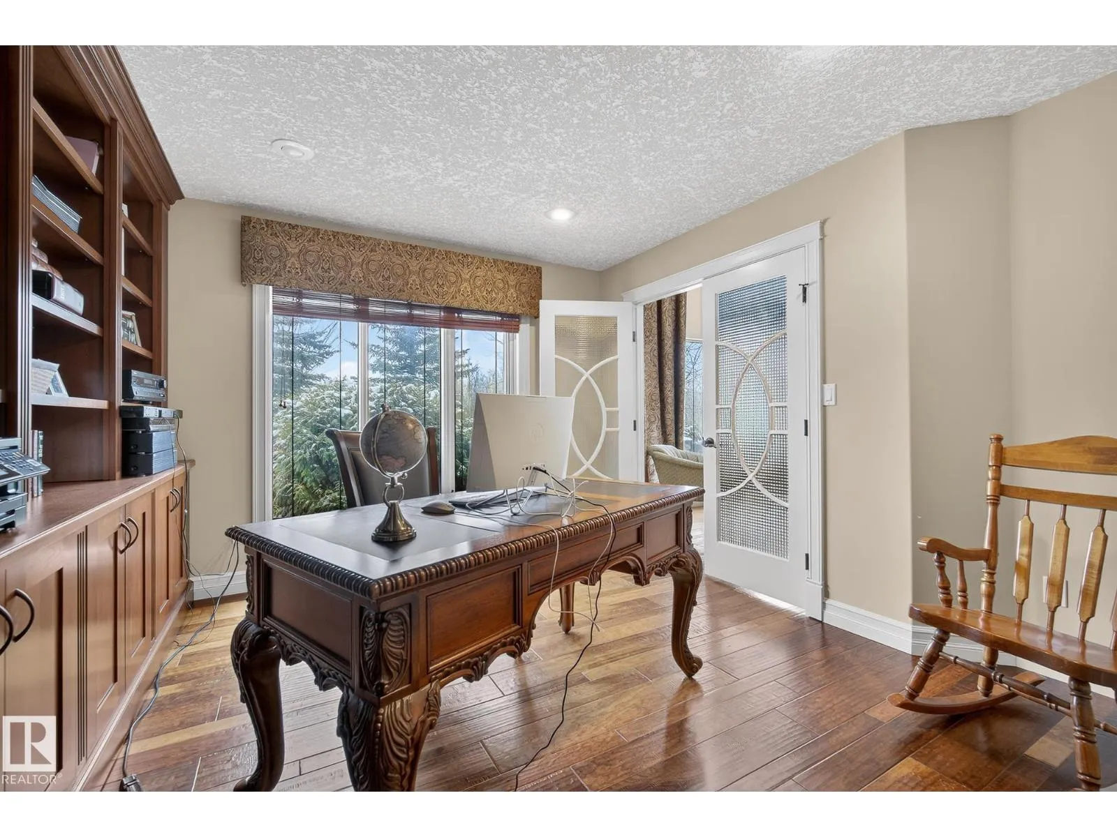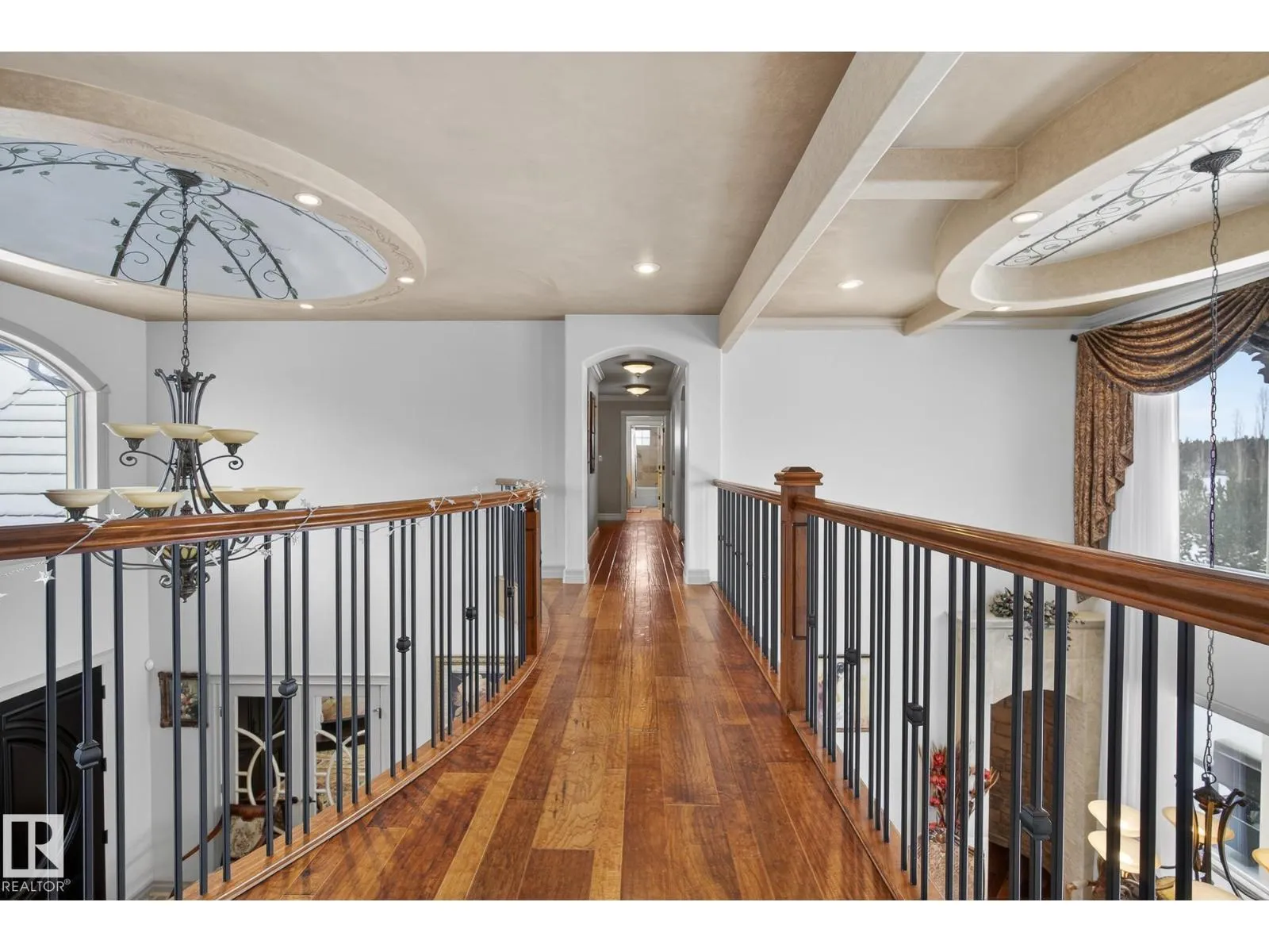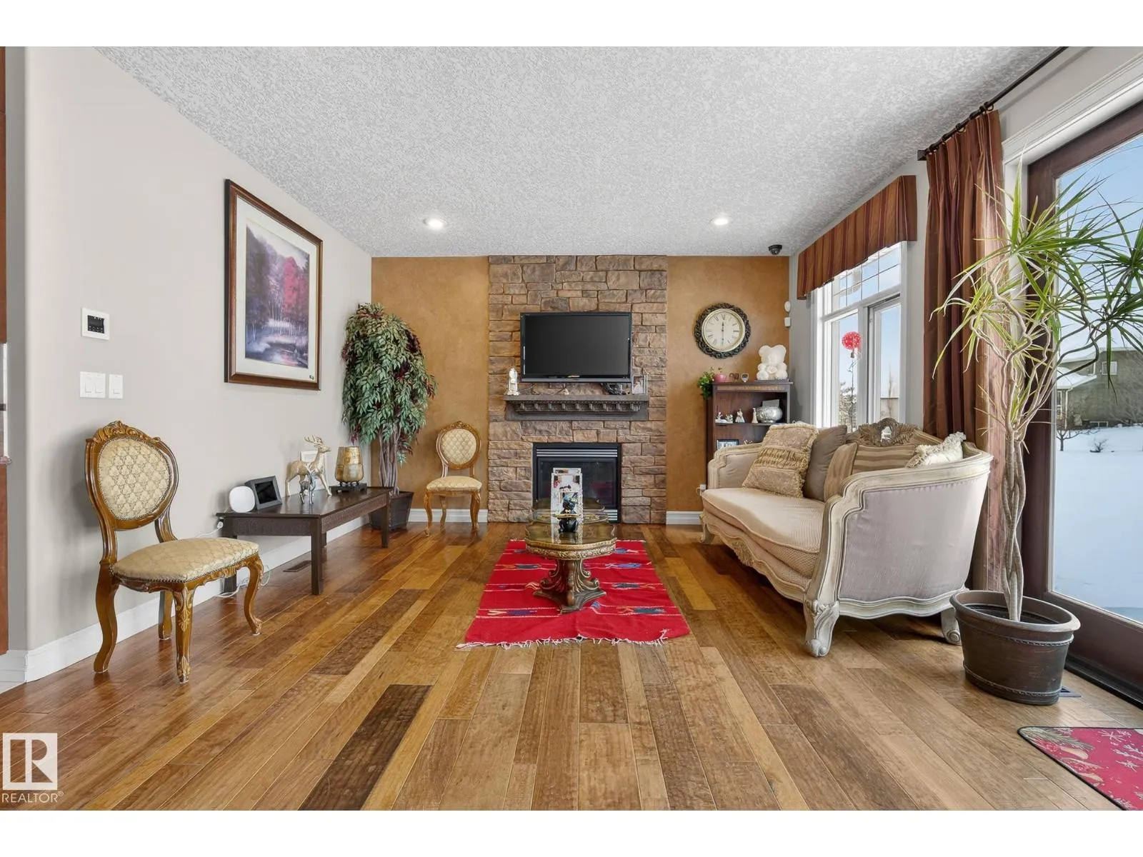 Welcome to this stunning Sturgeon County home, just under 10 minutes from St. Albert. Situated on a half-acre lot, this property offers over 5000 sq. ft. across three beautifully finished levels. With six spacious bedrooms, including two with their own en suites, this home is dedicated to accommodate families of all sizes. The layout features hardwood finishes, cozy fireplaces, and a bright kitchen with stainless steel appliances. Enjoy movie nights in the dedicated theatre room and take advantage of countless additional upgrades throughout. A rare opportunity to own a home that blends space, comfort, and convenience. (id:27476)