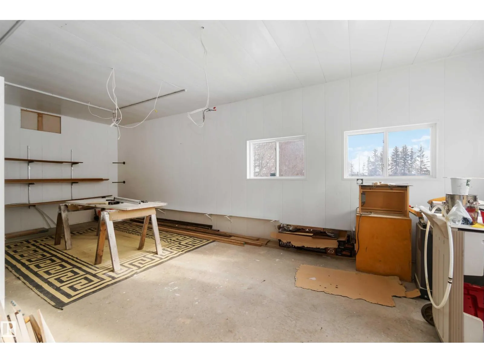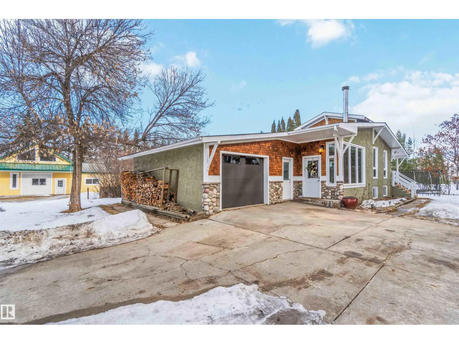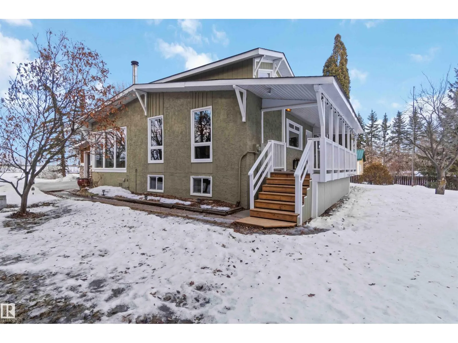 Over 2 acres of beautiful acreage-style living in the hamlet of Villeneuve, just 10 minutes west of St. Albert. This property is serviced with city water and a septic tank connected to the city septic system. A true dream shop measuring 82â x 30â plus loft features in-floor heating and is ideal for woodworking, mechanical projects, or storing all your toys. The main floor of the house offers a functional layout with a cozy wood-burning stove, large kitchen, and two bedrooms, with the option to convert the main-floor laundry back into a third bedroom. A 4-piece main bath and extensive built-in cabinetry add to the homeâs charm and practicality. The fully developed basement includes two additional bedrooms, a 3-piece bathroom, and a spacious recreation room. Recent upgrades include most windows, the furnace, and the hot water tank. (id:27476)