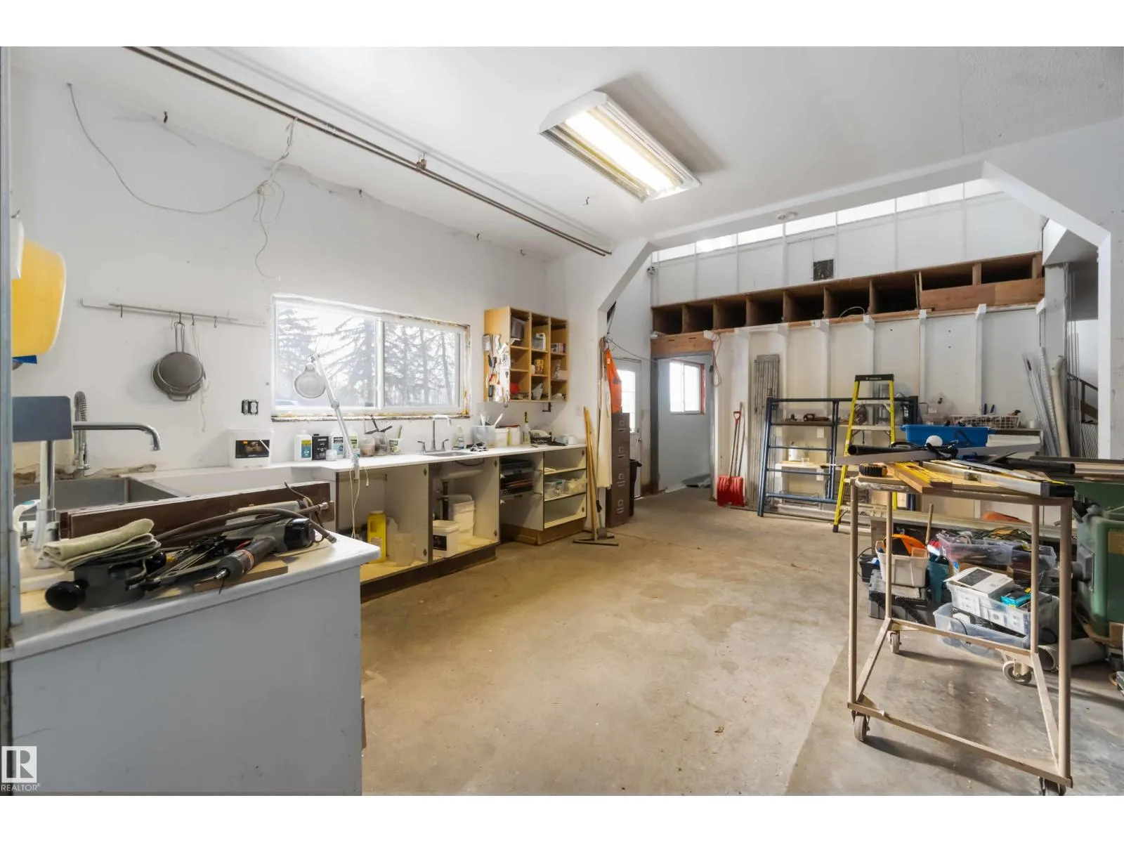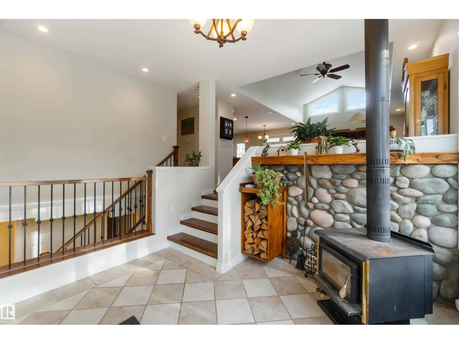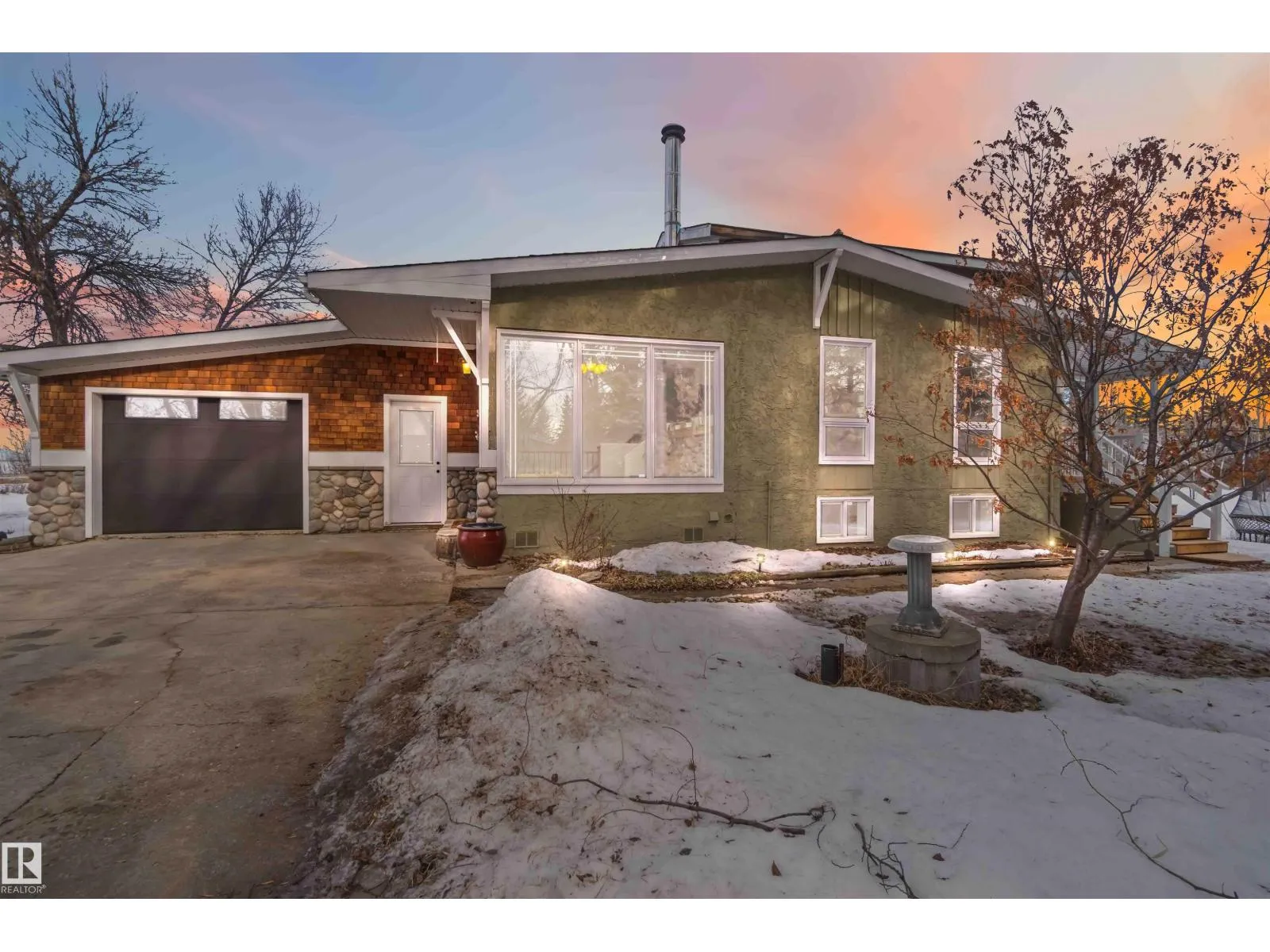Over 2 acres of beautiful acreage-style living in the hamlet of Villeneuve, just 10 minutes west of St. Albert. This property is serviced with city water and a septic tank connected to the city septic system. A true dream shop measuring 82â x 30â plus loft features in-floor heating and is ideal for woodworking, mechanical projects, or storing all your toys. The main floor of the house offers a functional layout with a cozy wood-burning stove, large kitchen, and two bedrooms, with the option to convert the main-floor laundry back into a third bedroom. A 4-piece main bath and extensive built-in cabinetry add to the homeâs charm and practicality. The fully developed basement includes two additional bedrooms, a 3-piece bathroom, and a spacious recreation room. Recent upgrades include most windows, the furnace, and the hot water tank. (id:27476)