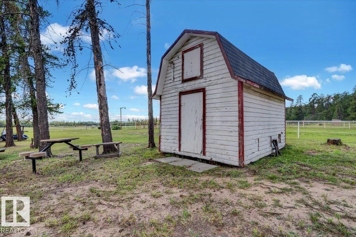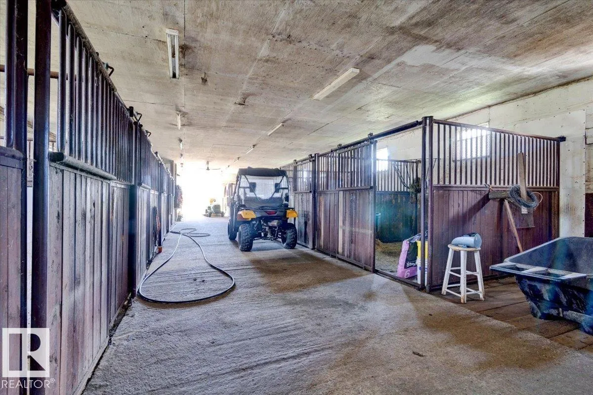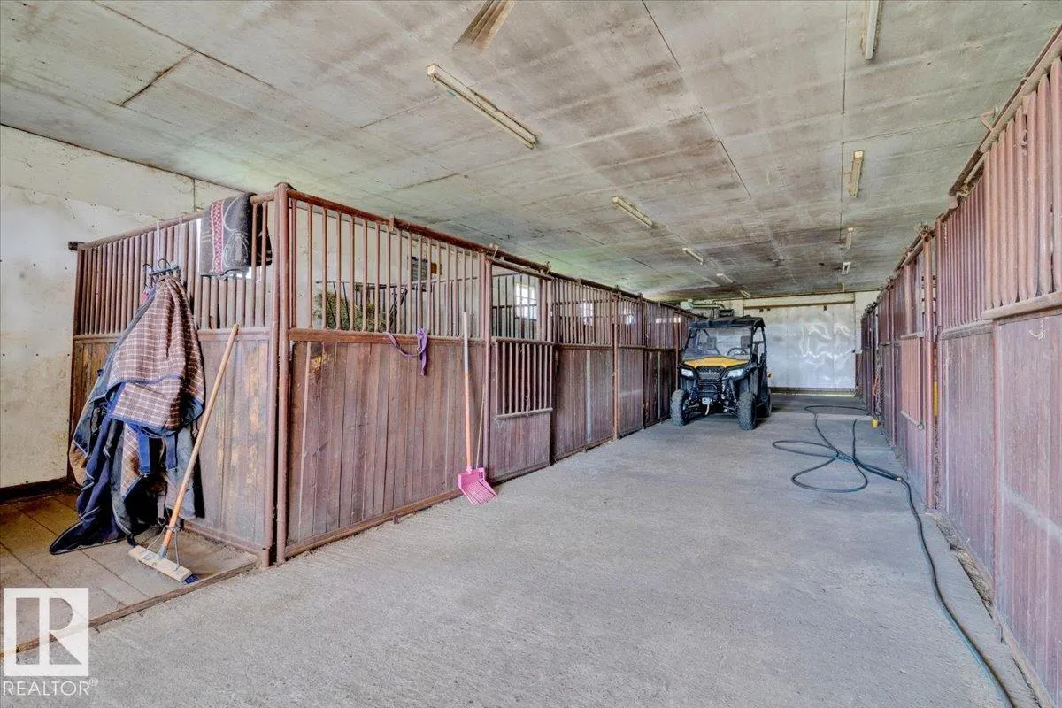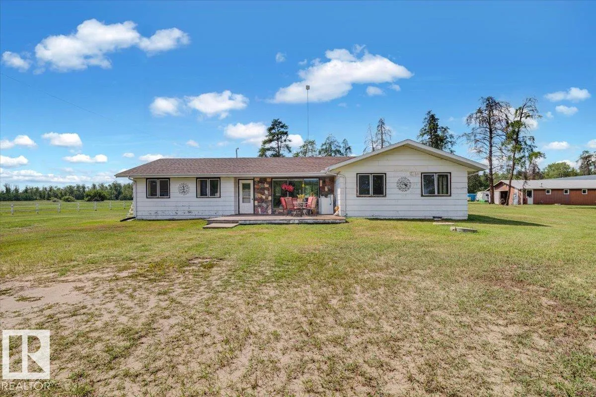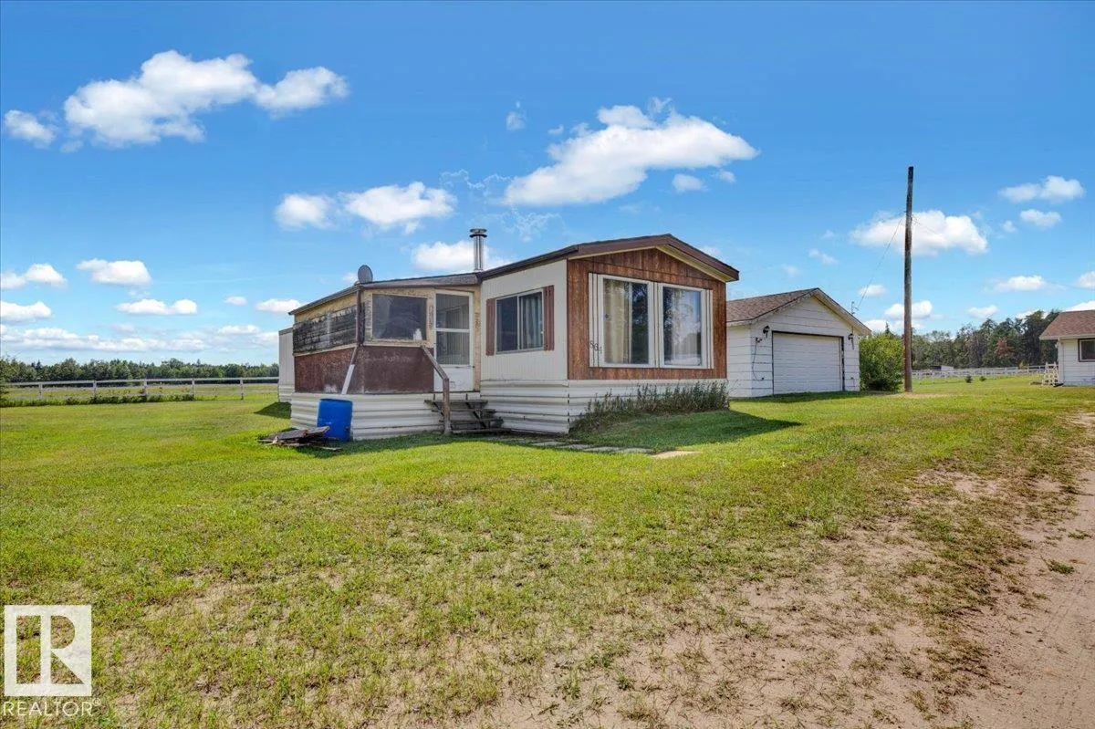 Saddle up for the lifestyle youâve been dreaming of! This 61-acre equestrian paradise offers an indoor riding arena, 10-stall barn (with potential for 11), heated barn & tack room, 5 corrals with horse shelters, 3 grain bins, 2 fuel tanks, and secure metal fencing. One bored well services the house and mobile, while the second feeds the barn and corrals (no auto waterers). Peacefully tucked away on a quiet road, the 1,900 sq ft slab-on-grade home features 3 bedrooms, 1.5 baths, 2 living rooms, plus a versatile rec roomâperfect as a 4th bedroom, office, or future master with ensuite. A second dwelling awaits plumbing upgrades for full use. With a double-detached garage, serene views, and room to make it your own, this property is ready for its new owners to make it truly shine! (id:27476)