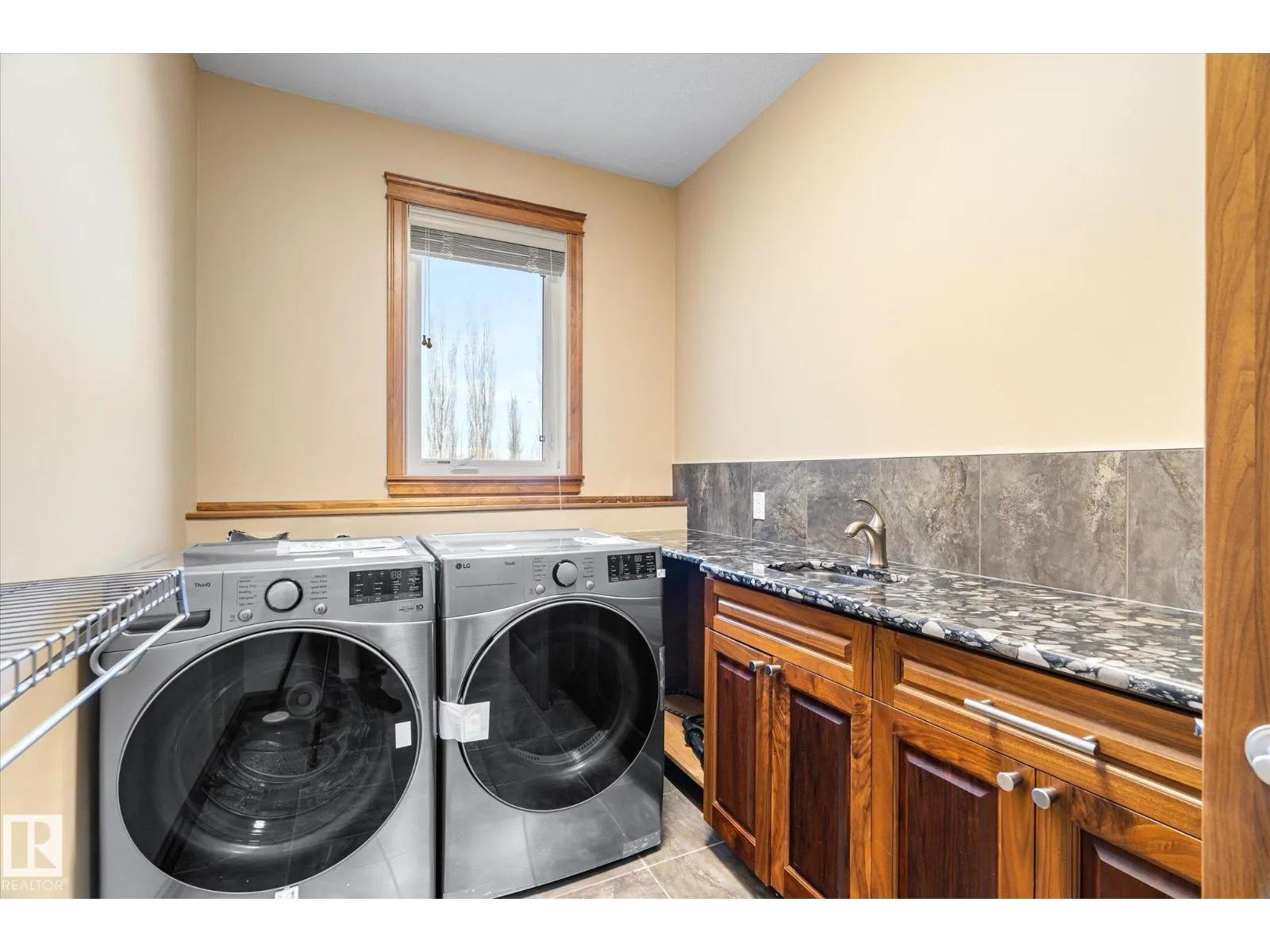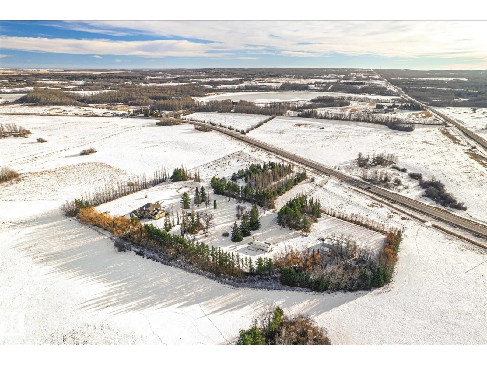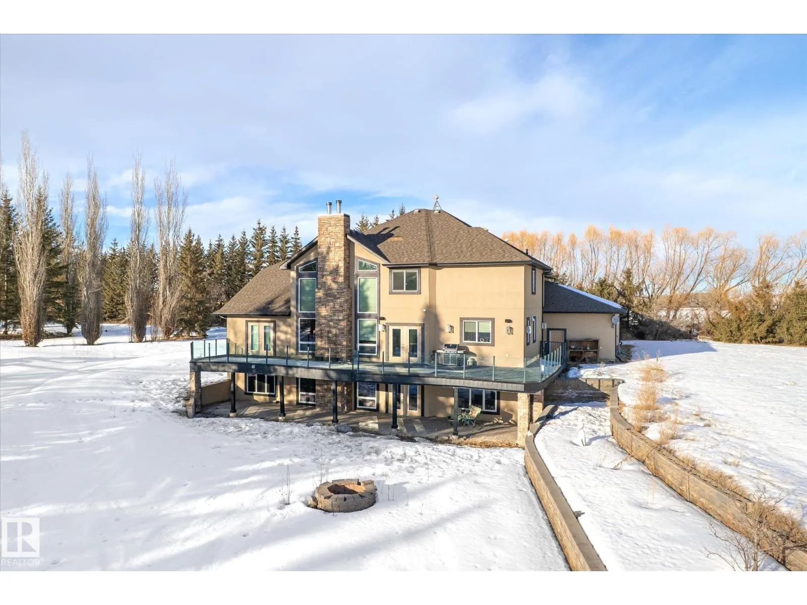 Custom built one of a kind prestigious estate situated on 10.95 acres . This unique home features 6 bedrooms , 5 bathrooms with a fully finished walkout basement. The living room has 20 ft vaulted ceiling, floor to ceiling massive windows, floor to ceiling stone wood burning fireplace, a huge balcony. Open concept gourmet kitchen with cherry wood cabinetry & custom granite counters, and high end appliances. There are 2 bedrooms in this level including the master bedroom with ensuite and a bright office . The grand staircase leads to the upper level with 3 bedrooms with ensuites and a spacious bonus room. The walkout basemen has a large family room with wood fireplace, 6th bedroom, theatre room & wet bar. Outbuildings include 40'x60'heated shop, and 2 storage sheds . Only 20 mnts to Spruce Grove and 30 mnts to Edmonton. (id:27476)