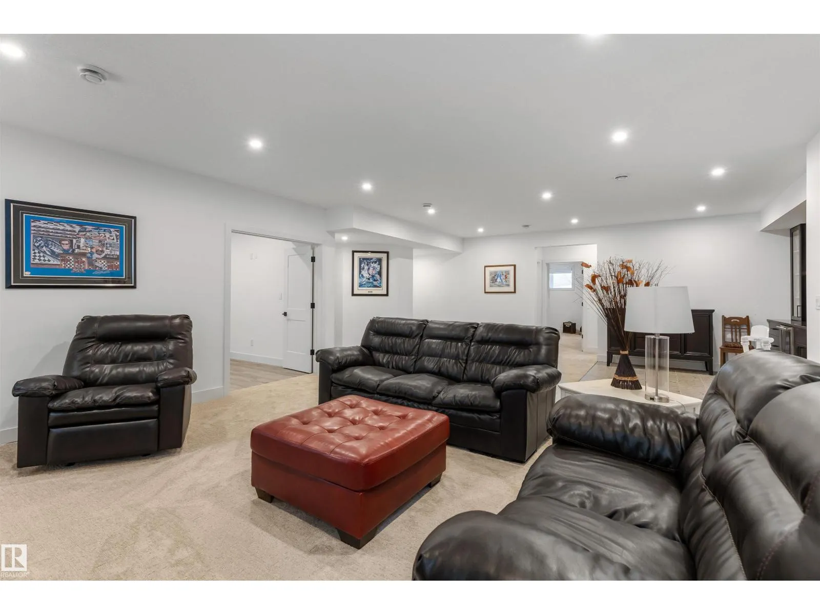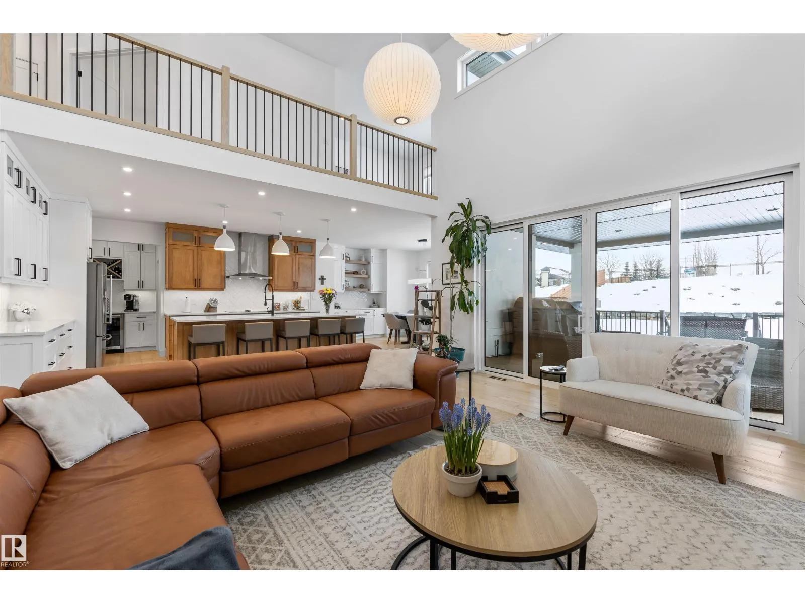 Located at end of a private cul de sac, in the exclusive acreage development of Riverâs Gate discover this sensational bungalow. The foyer opens to soaring 2 floor ceiling heights w/ stunning ENGINEERED HARDWOOD FLOORING that flows through most of the main floor. There is a office/den in the front of the home. The kitchen, dining & living room all flow effortlessly into a cozy space for family while being able to accommodate large scale gatherings. The living room has a gas f/p & a full wall of sliding doors onto the COVERED BACK DECK. The kitchen has an abundance of pot/pan drawers, a huge eating bar island & a stunning butlers pantry. The primary bedroom is on the main floor w/ a spa like 5pce ensuite w/ custom shower & a spacious walk in closet. This home has a partial lofted style 2nd floor w/ 2 bedrooms, a bonus room & a 5pce bath. The FULLY FINISHED basement has a large rec room w/ wet bar, flex room, 2 large bedrooms & a 4pce bath. A HEATED oversized triple attached garage completes this property! (id:27476)