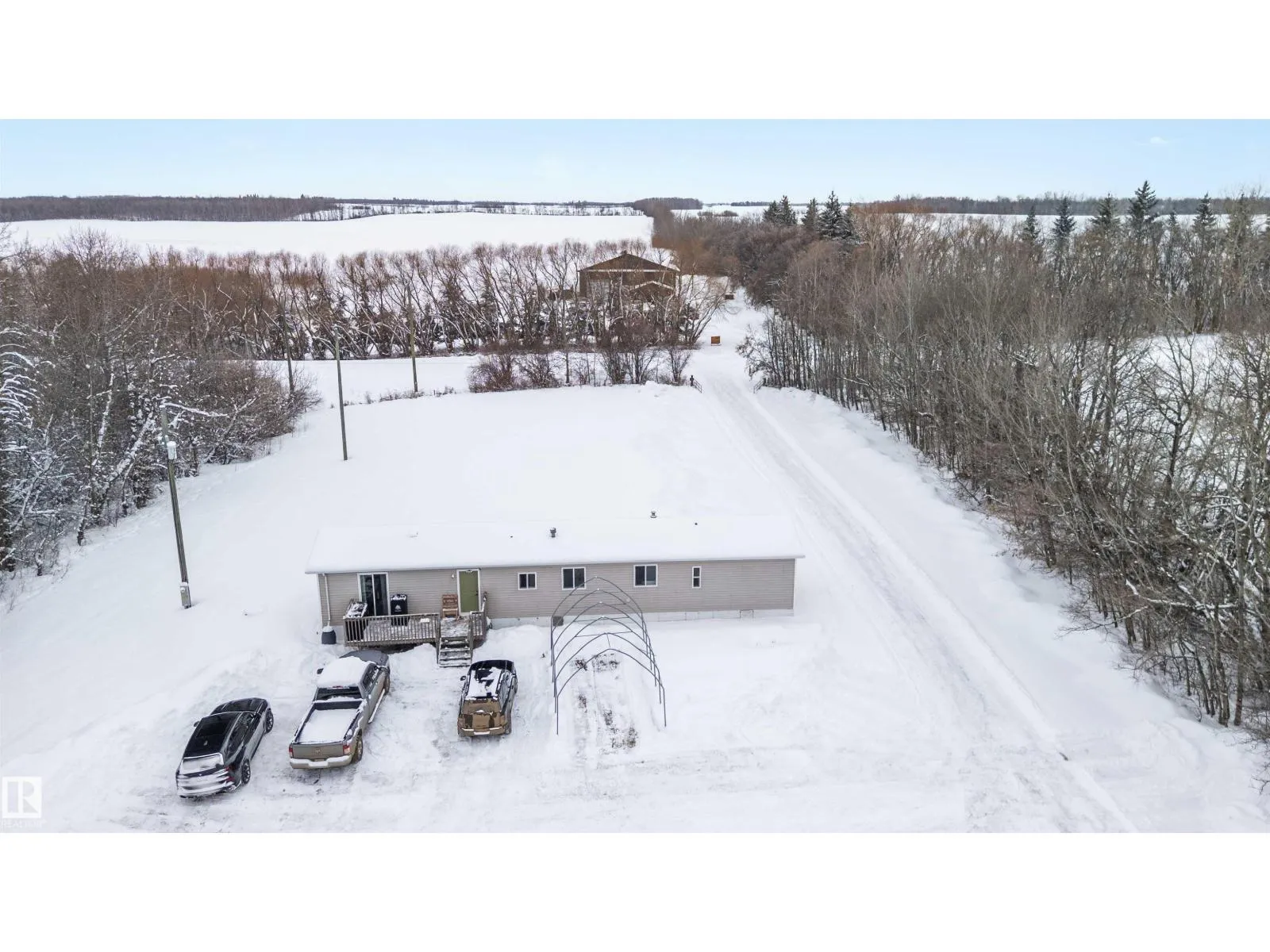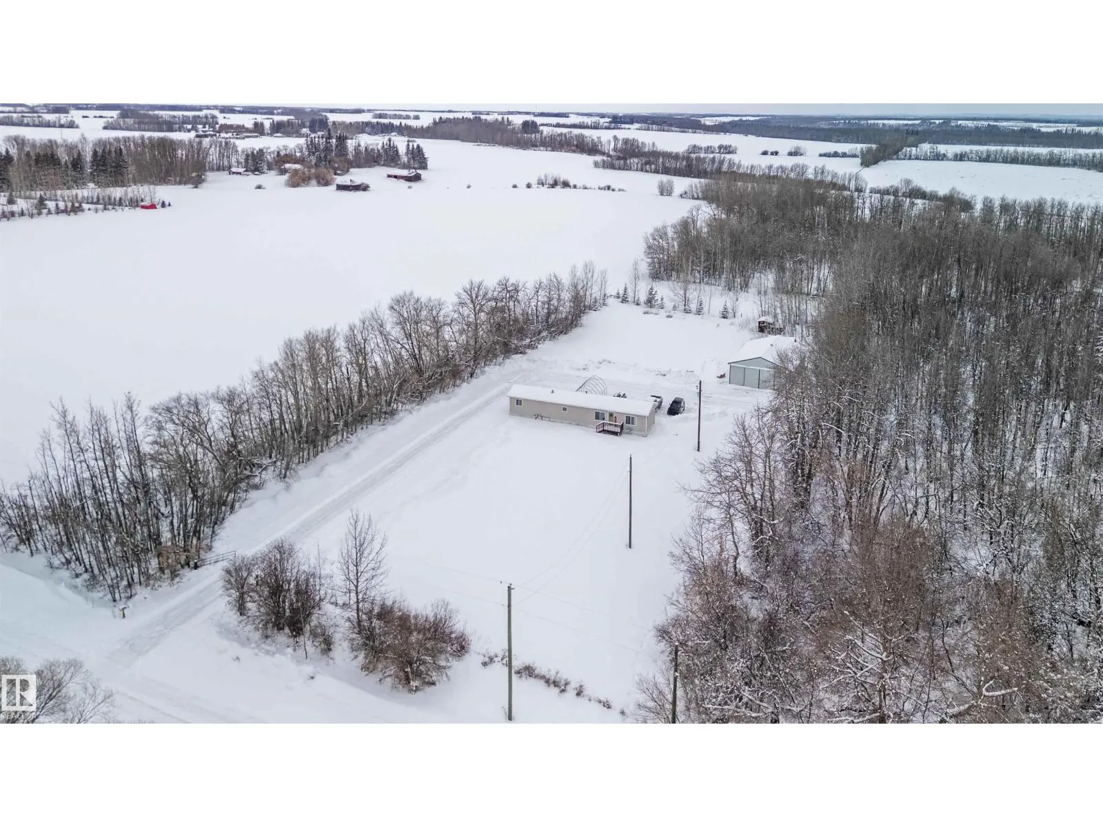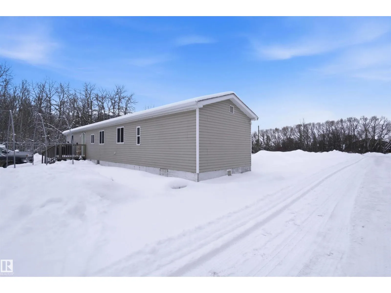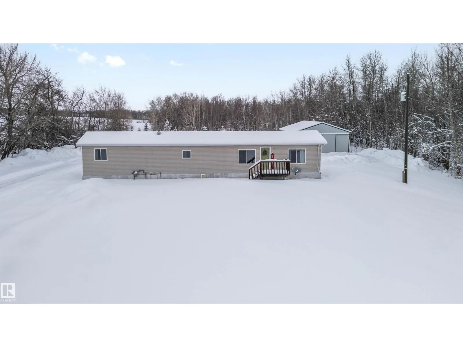 Find your peace and tranquility at this lovely acreage out of a subdivision just a few miles north of Bon Accord. Set on 2 acres with mature trees surrounding the perimeter is this completely upgraded south facing 2 bedroom modular home with a front and back landing/decks for morning coffee! Vinyl siding & windows have been replaced and the interior is nicely upgraded. Extra closet space has been added in the primary bedroom & a newer hot water tank (2013). Mature raspberry bushes & a garden area on the property and the highlight is the 30'x45' shop with lots of power & with framing around the interior walls for concrete footings. Gravel floor at present & built-in shelving will stay. Great spot for all your toys or RV storage. Enjoy country living in a great location and affordable price! (id:27476)