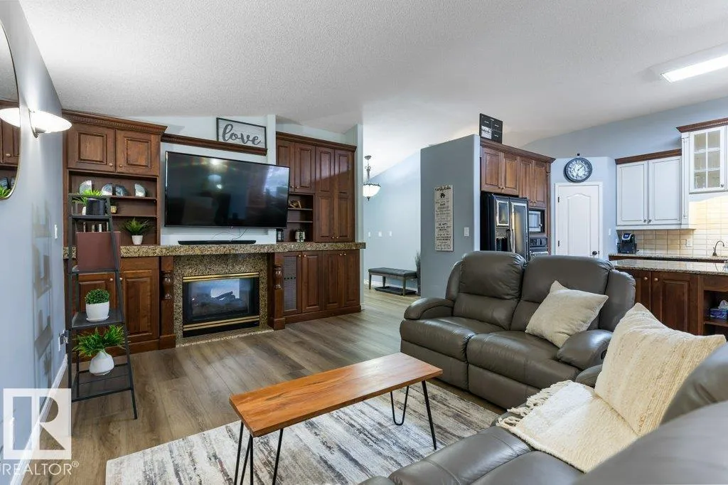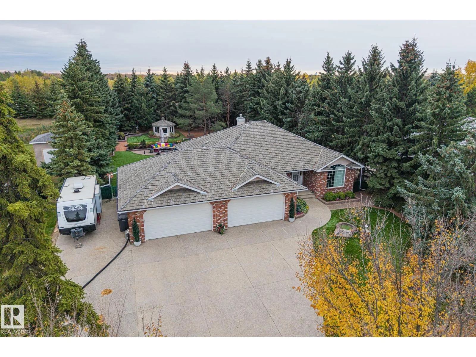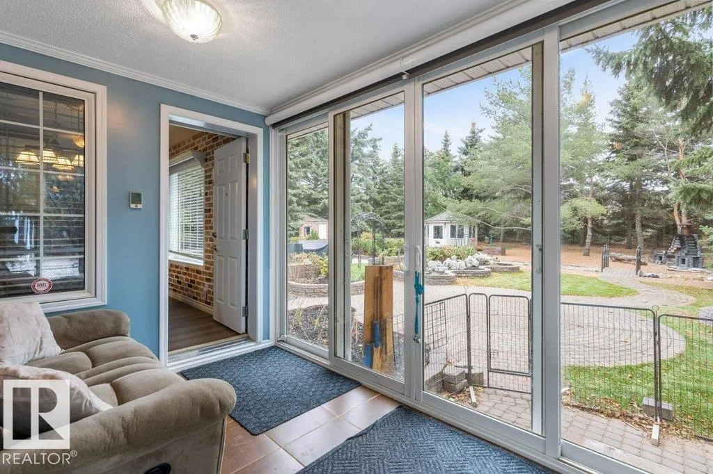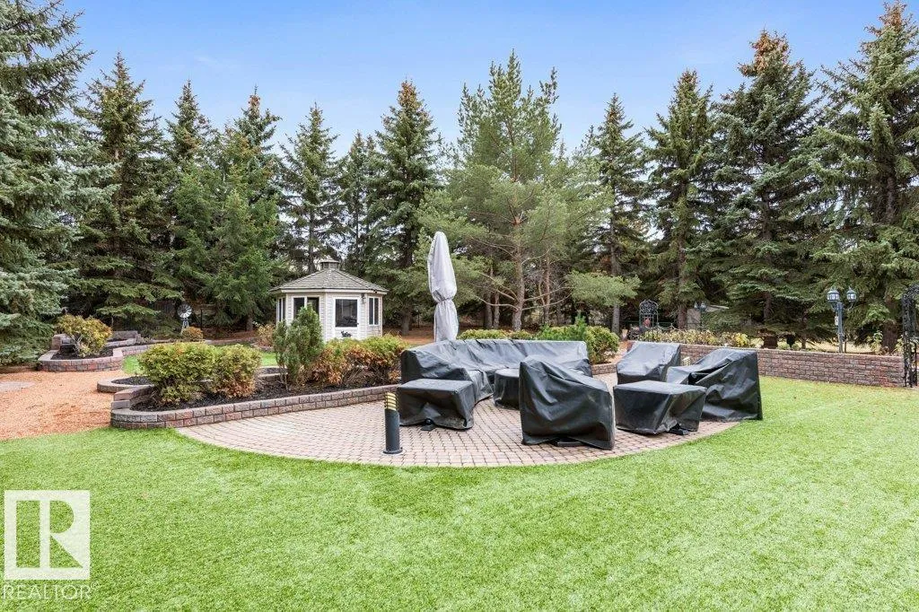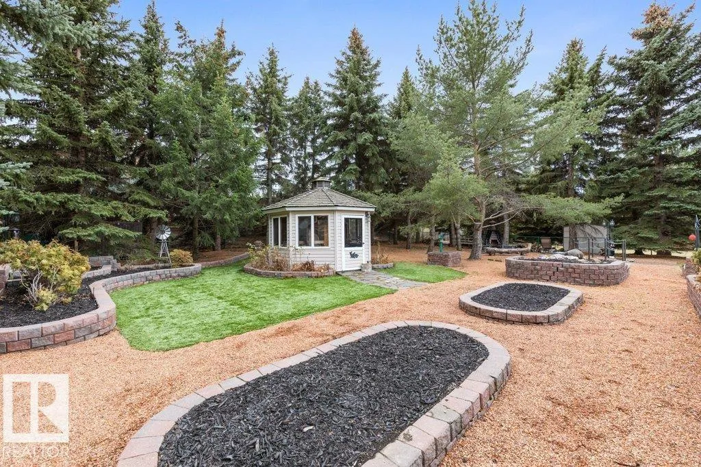 The acreage lifestyle youâve been waiting for is here! This exceptional custom bungalow with a fully finished basement sits on a private, fully fenced lot with maintenance free turf front and back plus RV parking. Inside, vaulted ceilings create a bright, open feel, while the dining room and living room are anchored by a stunning double sided gas fireplace. The two tone kitchen features crown moulding, granite counters and premium Elmira appliances. The primary suite offers a walk in closet and private 4-pce ensuite, with a second bedroom or den, full bath, laundry and mudroom completing the main floor. The basement showcases new flooring, a large rec room with wet bar, two spacious bedrooms, den, full bath and storage. Notable upgrades include hybrid septic, new vinyl plank, fresh paint, upgraded power, newer HWT, industrial AC, in floor heated sunroom, powered gazebo and an oversized heated garage with epoxy floors and bath, perfect for entertaining year round. A rare acreage offering exceptional value. (id:27476)