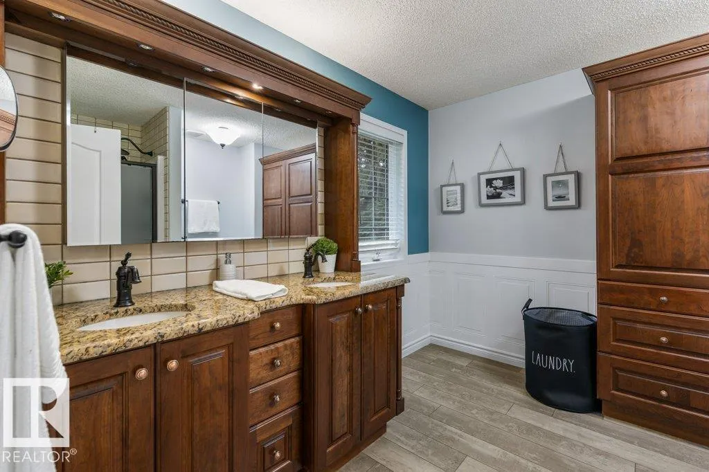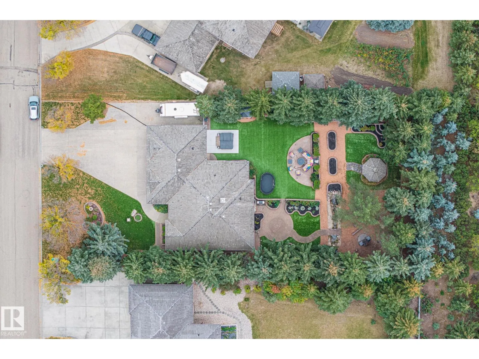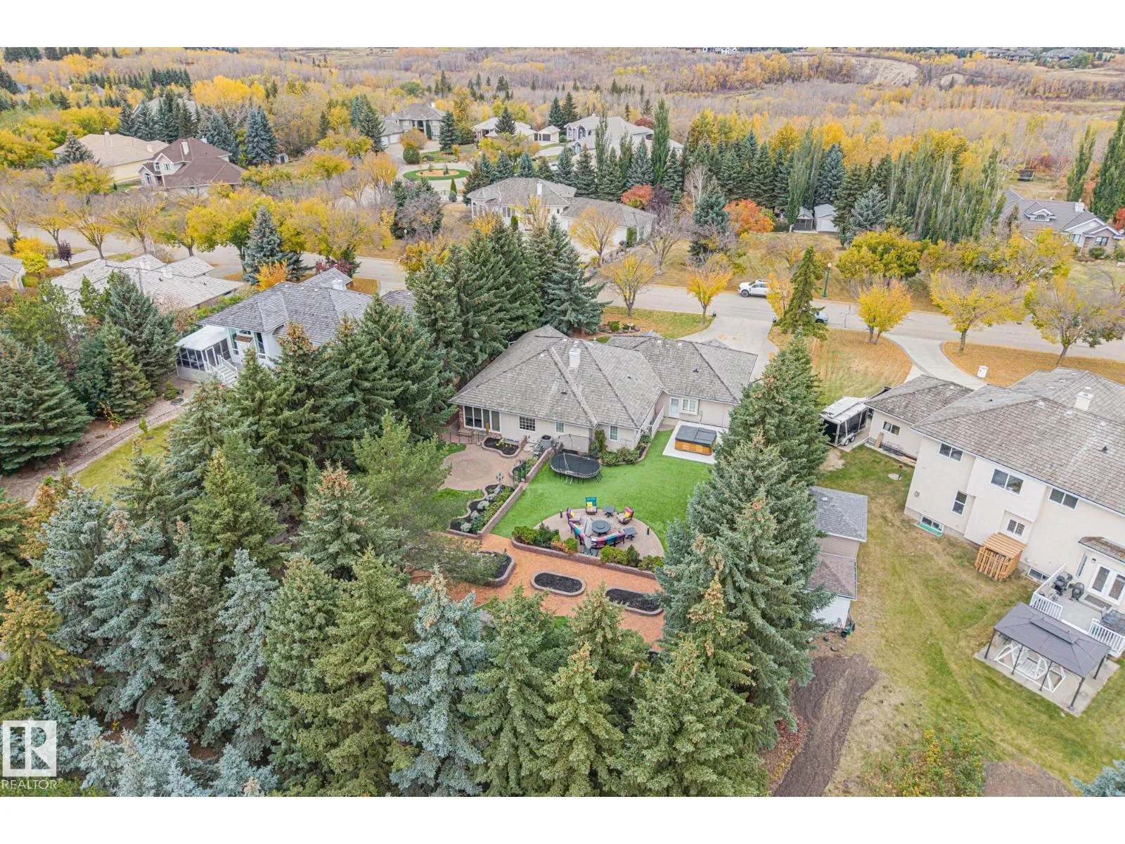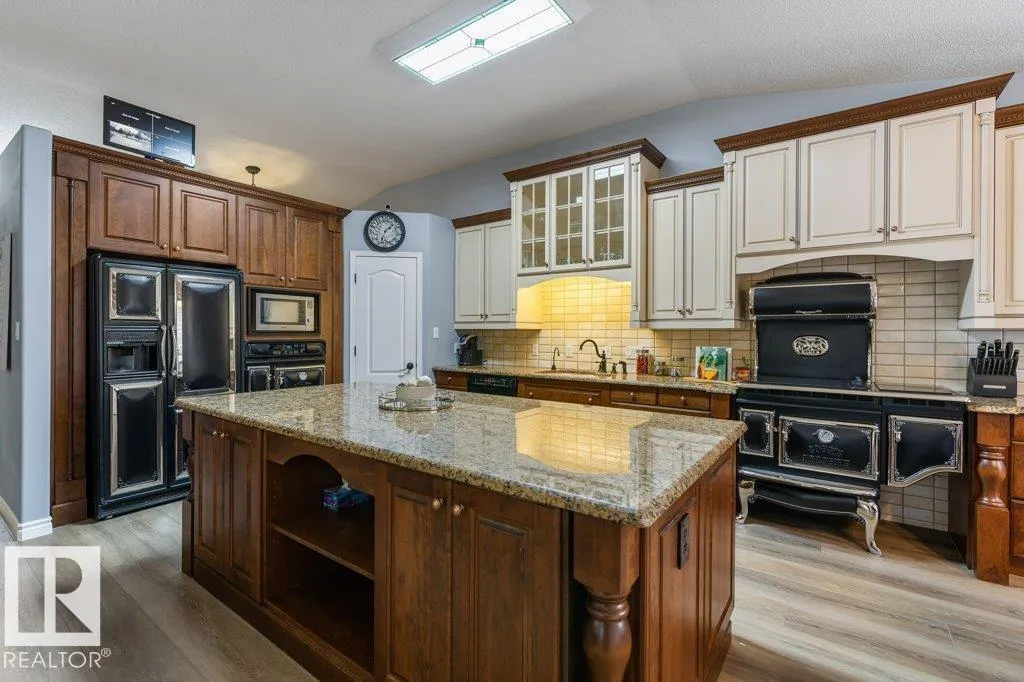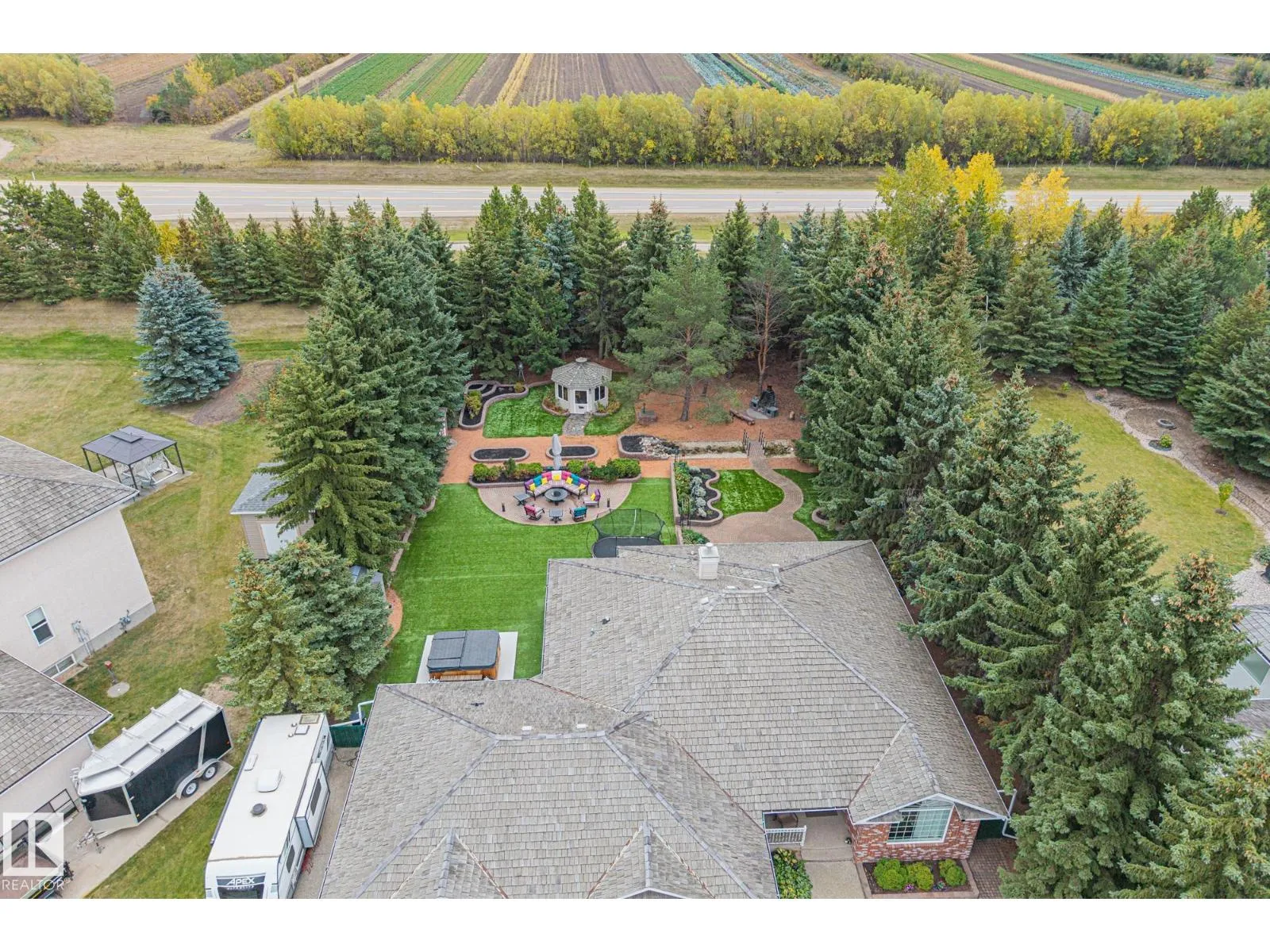 The acreage lifestyle youâve been waiting for is here! This exceptional custom bungalow with a fully finished basement sits on a private, fully fenced lot with maintenance free turf front and back plus RV parking. Inside, vaulted ceilings create a bright, open feel, while the dining room and living room are anchored by a stunning double sided gas fireplace. The two tone kitchen features crown moulding, granite counters and premium Elmira appliances. The primary suite offers a walk in closet and private 4-pce ensuite, with a second bedroom or den, full bath, laundry and mudroom completing the main floor. The basement showcases new flooring, a large rec room with wet bar, two spacious bedrooms, den, full bath and storage. Notable upgrades include hybrid septic, new vinyl plank, fresh paint, upgraded power, newer HWT, industrial AC, in floor heated sunroom, powered gazebo and an oversized heated garage with epoxy floors and bath, perfect for entertaining year round. A rare acreage offering exceptional value. (id:27476)