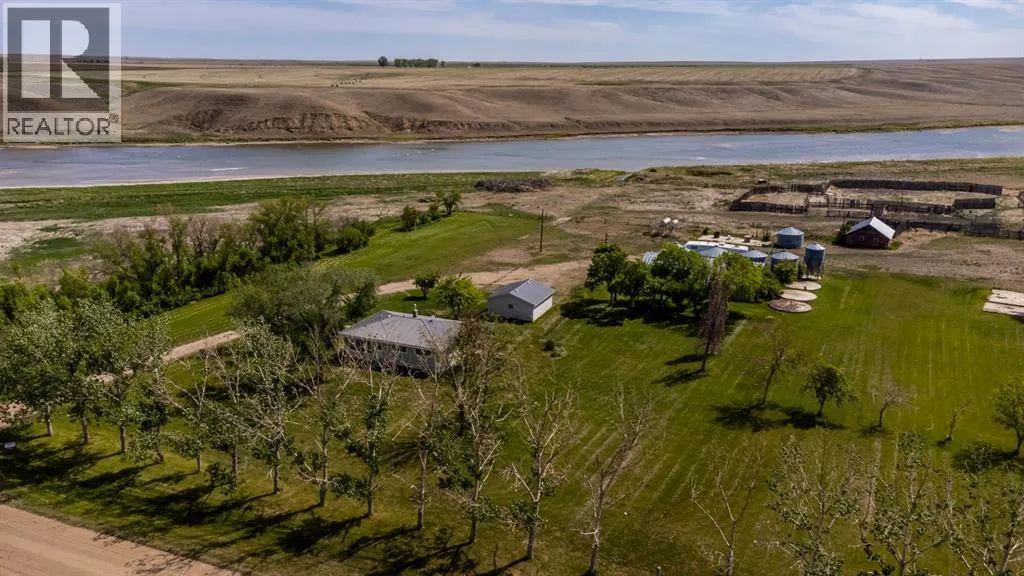 This is a rare opportunity to own a River Ranch Home secluded from the world at the end of a quiet county road. Two parcels of land totaling 17.7 acres border the Bow and offer unparalleled views and opportunity. From the kitchen window, you can watch the current slowly pass by. World famous fishing, boating, wildlife, and clear water are directly outside your window. The home is well maintained and ready to move in. Recent upgrades include windows, an accessible bathroom, a metal roof, flooring, custom boiler system, and extensive yard clean up. This 17.7 acre property holds promise for a multitude of ventures. There are legacy corrals, bins and a barn are close at hand for the critters of your choosing. A 40x60 Quonset provides limitless options. Conveniently located in the heart of Southern Alberta makes this the perfect place to get away and still have amenities close at hand. This RIVER FRONT home is a rare opportunity, call today for a private showing. (id:27476)