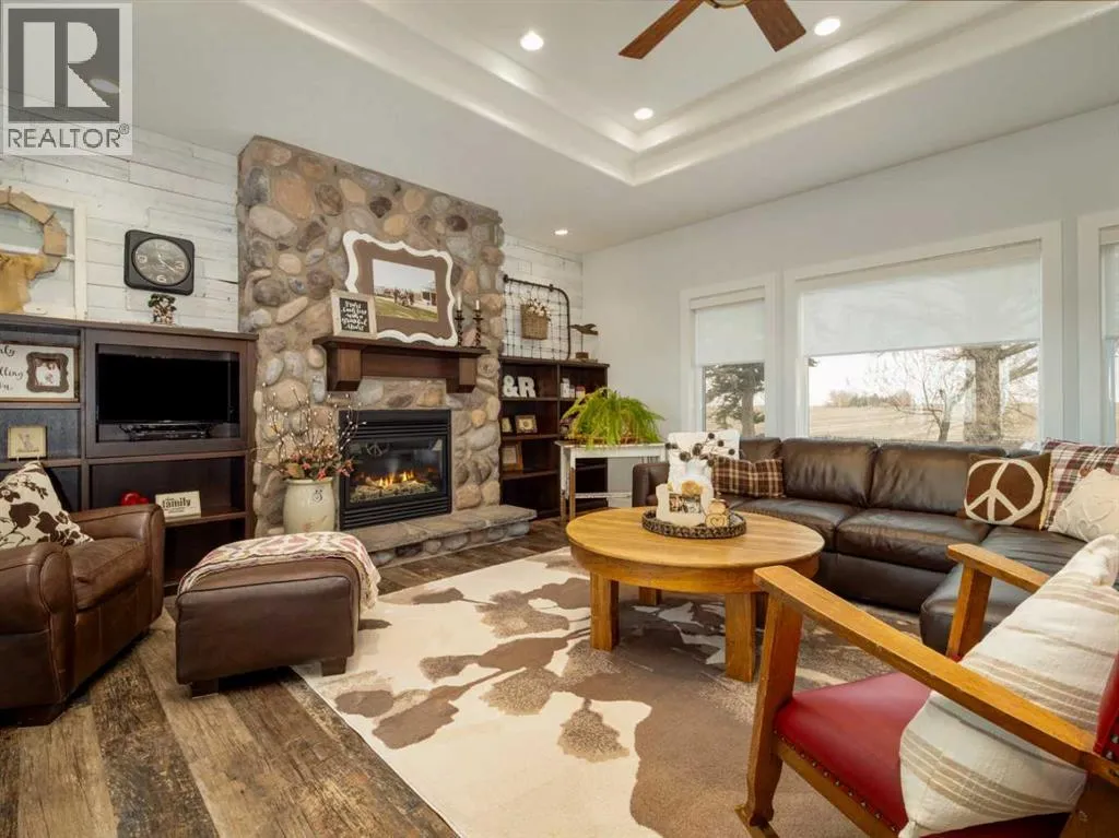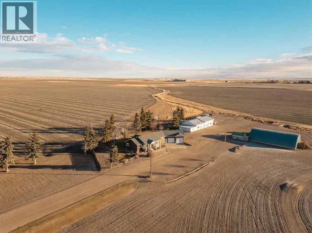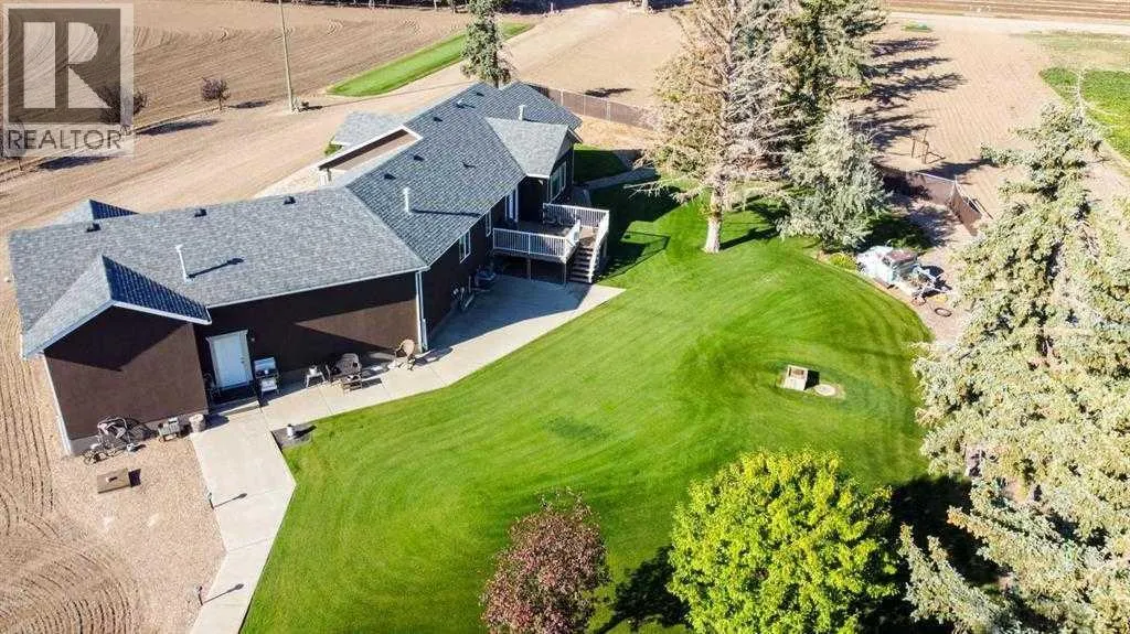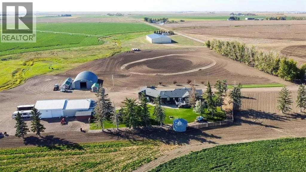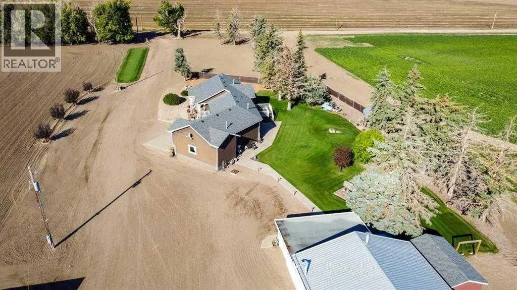 Just 15 minutes east of Coaldale, this ranch-style acreage offers the perfect blend of space, function, and country charm. The home features 4 bedrooms and 3 bathrooms and showcases a beautiful rock fireplace, large windows, and an open-concept floor plan that fills the space with natural light while maintaining a warm, cosy country feel. Situated on 7.86 acres, the property is exceptionally well equipped with a large heated shop (73â x 51â) featuring five overhead doors, a Quonset, and six additional sheds, making it ideal for a home based business, equipment storage, or hobby farming. The backyard is highlighted by a unique grain bin gazebo, creating a the perfect spot for entertaining, hosting weddings, or gathering family and friends for special occasions.This acreage offers a rare opportunity to enjoy rural living with space, character, and versatility, (id:27476)