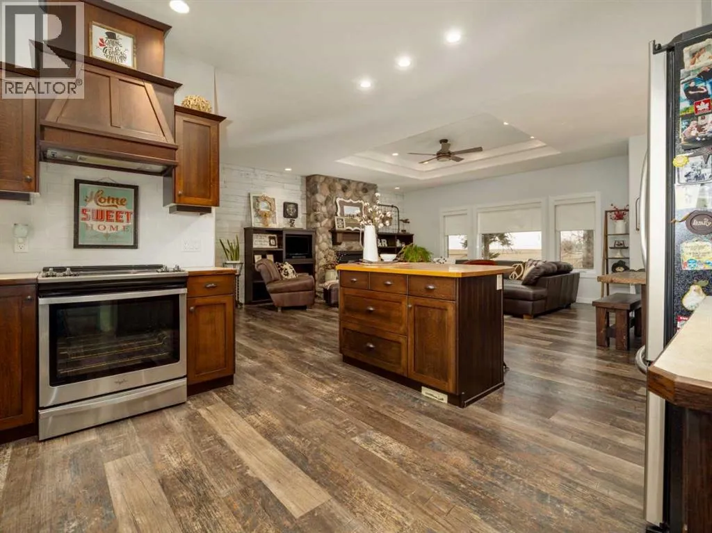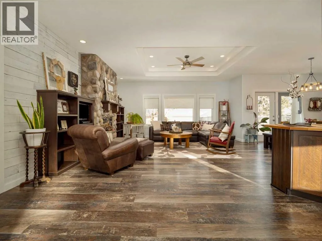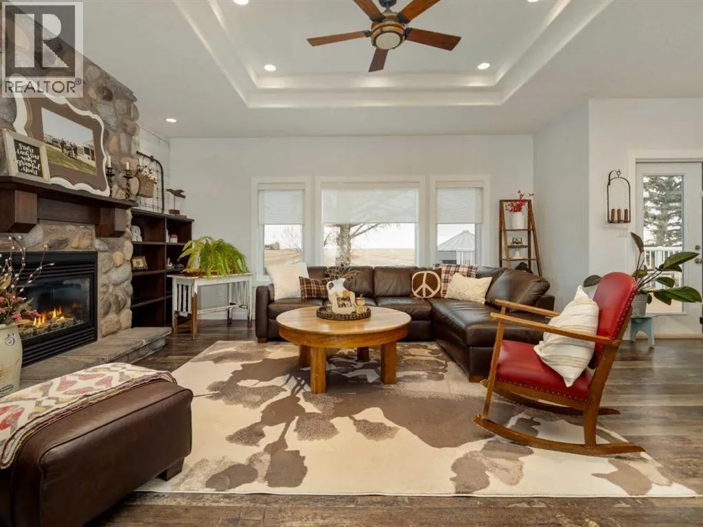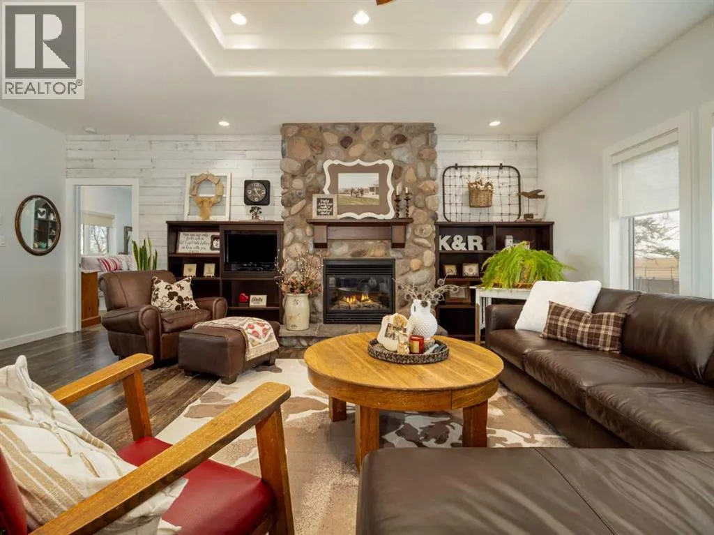 Just 15 minutes east of Coaldale, this ranch-style acreage offers the perfect blend of space, function, and country charm. The home features 4 bedrooms and 3 bathrooms and showcases a beautiful rock fireplace, large windows, and an open-concept floor plan that fills the space with natural light while maintaining a warm, cosy country feel. Situated on 7.86 acres, the property is exceptionally well equipped with a large heated shop (73â x 51â) featuring five overhead doors, a Quonset, and six additional sheds, making it ideal for a home based business, equipment storage, or hobby farming. The backyard is highlighted by a unique grain bin gazebo, creating a the perfect spot for entertaining, hosting weddings, or gathering family and friends for special occasions.This acreage offers a rare opportunity to enjoy rural living with space, character, and versatility, (id:27476)