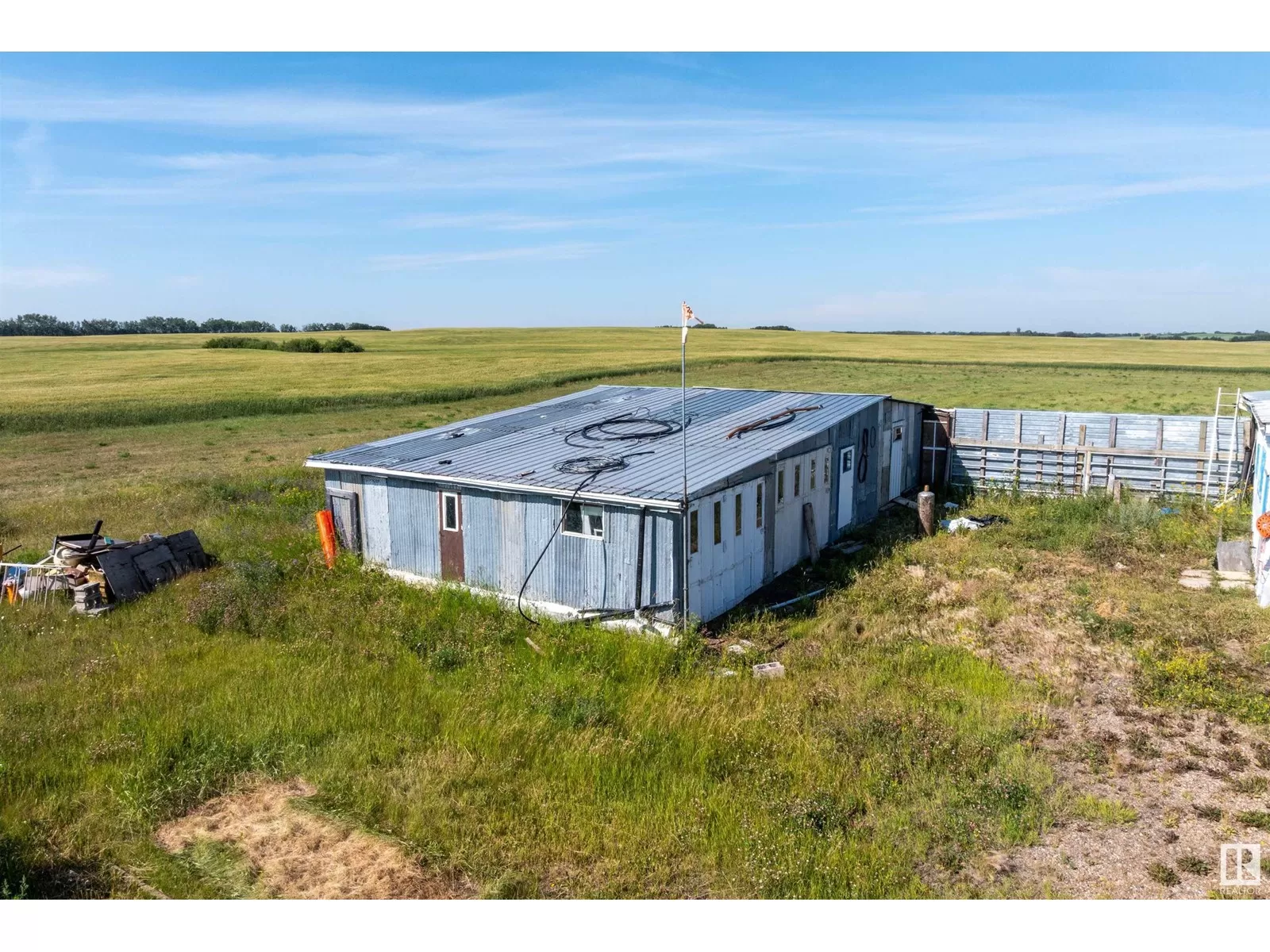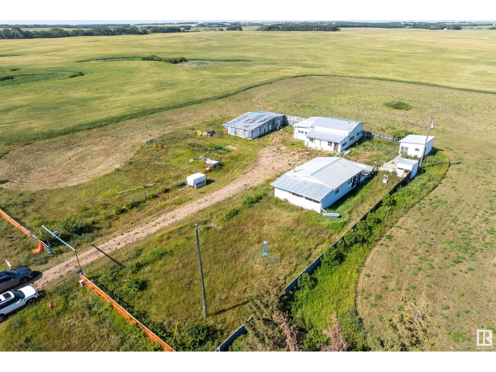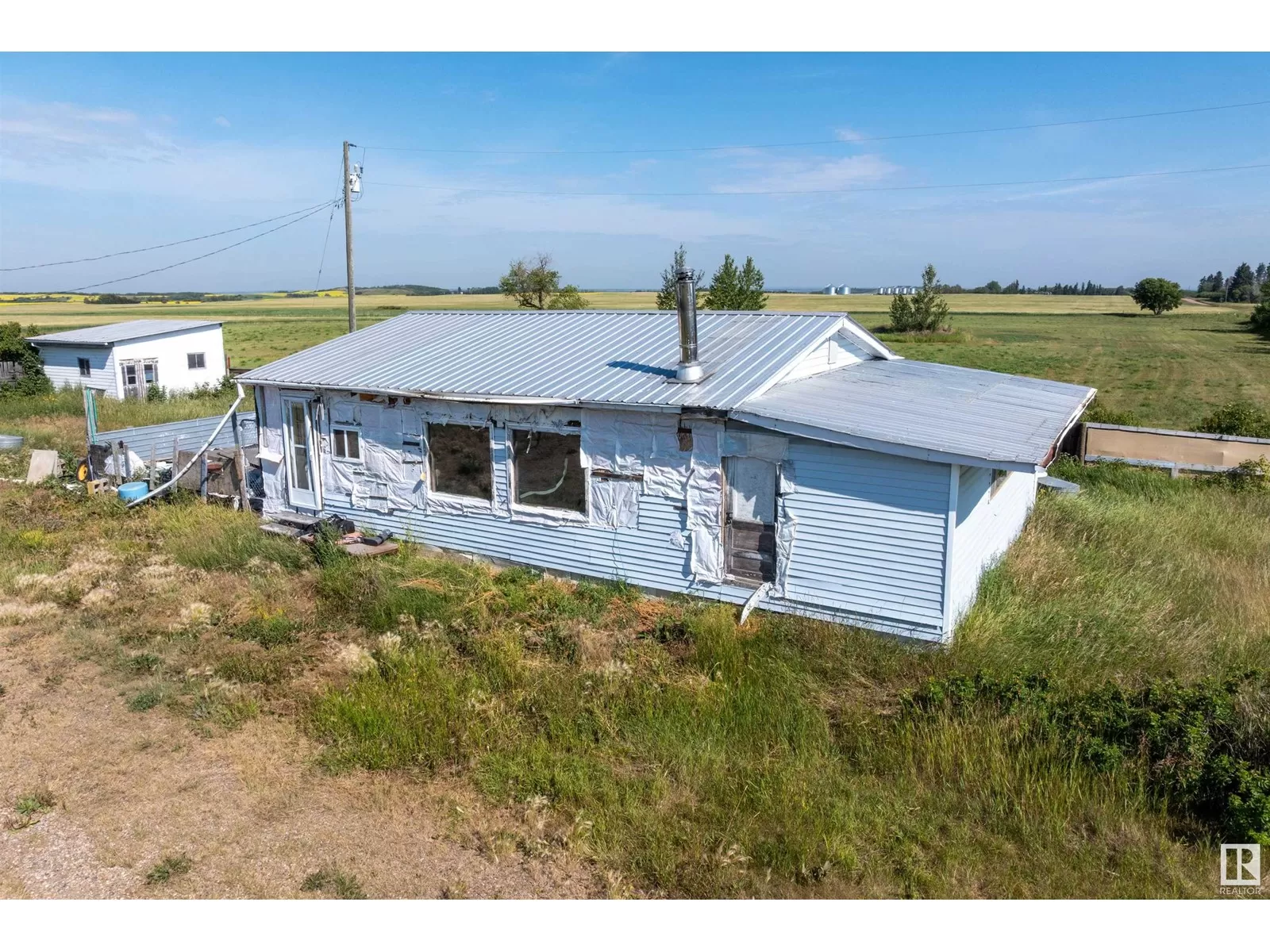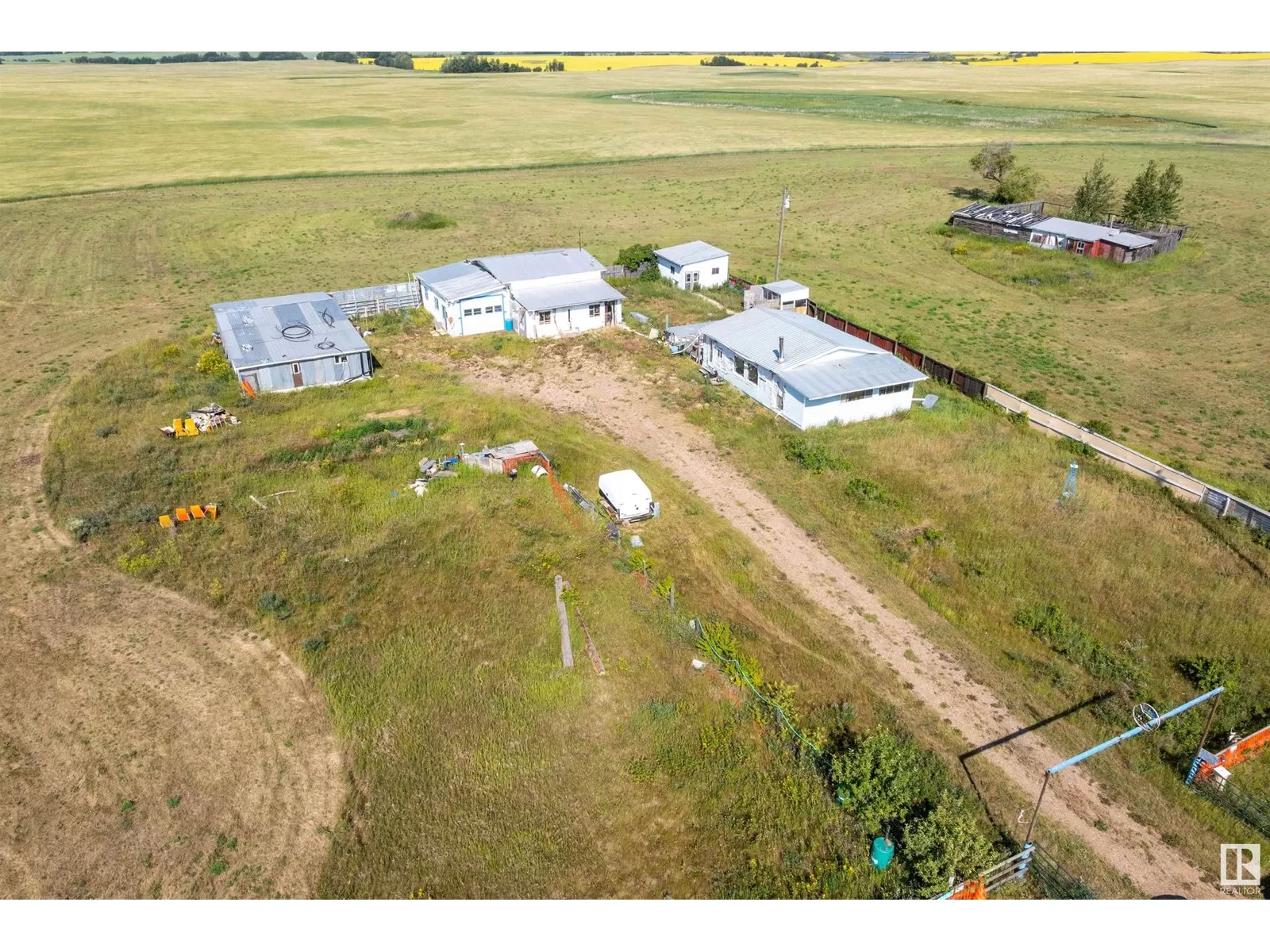 First time on the market! This 9.66-acre estate sale in Two Hills County is a rare opportunity for those seeking space, privacy, and potential. Fully fenced and lined with mature fruit trees, this peaceful parcel features a fully functional machine shopâthe true crown jewel of the propertyâplus several spacious outbuildings for all your storage needs. Power and gas are already on site. A mobile home remains but is uninhabitable (floor is caving in). Thereâs also a well and septic system (condition unknown). Neighbour currently cuts the hay. Located minutes from Myrnam, Two Hills, and St. Paul, this tranquil, tucked-away gem is a diamond in the rough. The possibilities are wide openâbring your vision and make it yours! (id:27476)