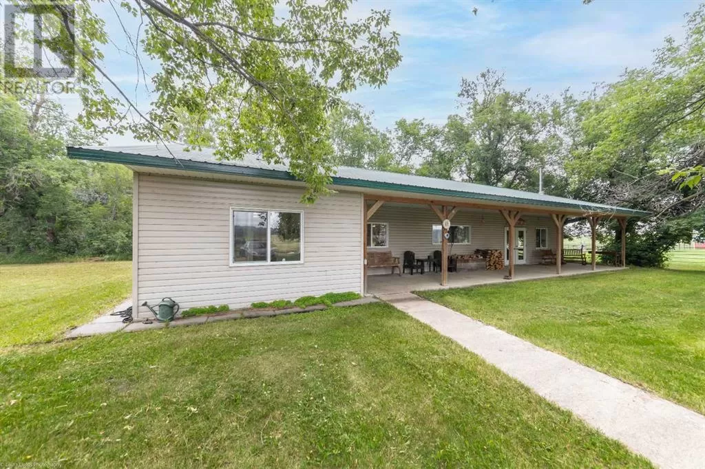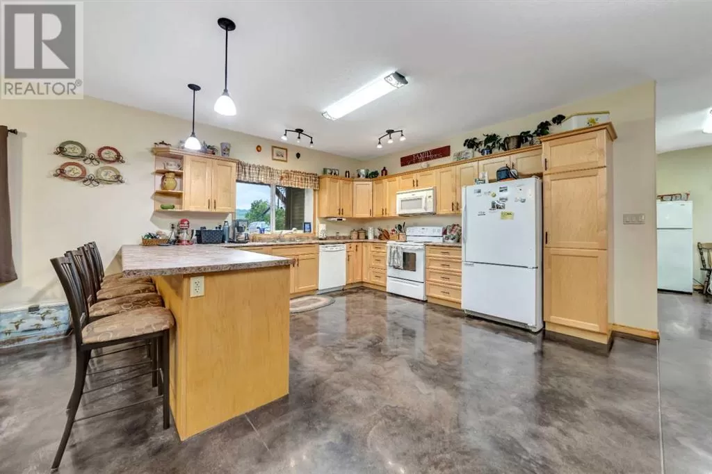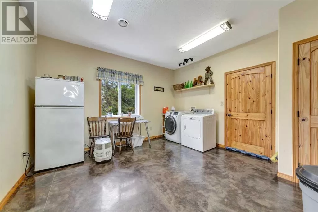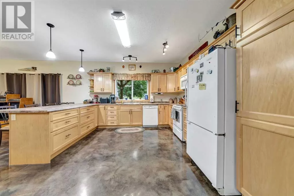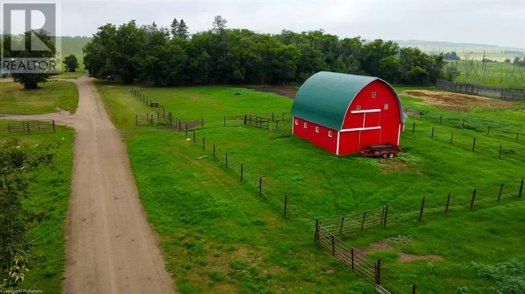 Turnkey ranch on 557 acres, located 25 KM northeast of Marwayne, AB. This property offers approximately half cultivated land and half pasture, making it ideal for supporting a livestock operation. The 2010-built bungalow provides a spacious, single-level, open-concept layout with 2,712 sq ft of living space. Constructed with ICF for energy efficiency and durability, the home features infloor heating throughout its acid-wash concrete floors, supplemented by a wood stove. The exterior is low maintenance with vinyl siding and a metal roof. The house has three bedrooms, two full bathrooms, 36â doors, and 9â ceilings for accessibility and comfort. The main shop offers a 40â x 40â heated area, plus a 20â x 40â annex for additional flexibility, with 12â walls allowing ample space for various uses. The property also includes a barn plus several outbuildings ready to use. Utilities include reliable natural gas service and a 36â bored well with plastic cribbing, tested in August 2024, producing 10 GPM. For more details and a comprehensive information package, please contact the listing office. (id:27476)