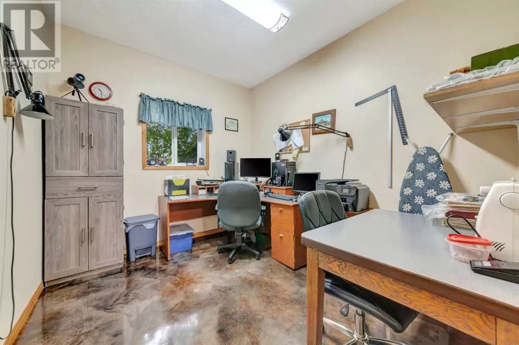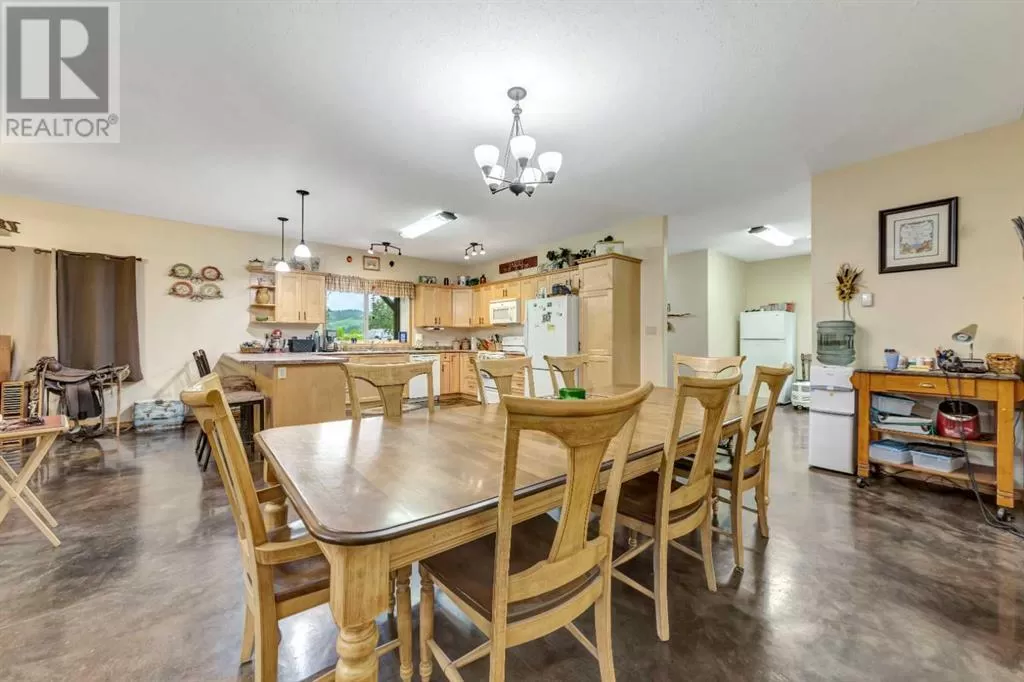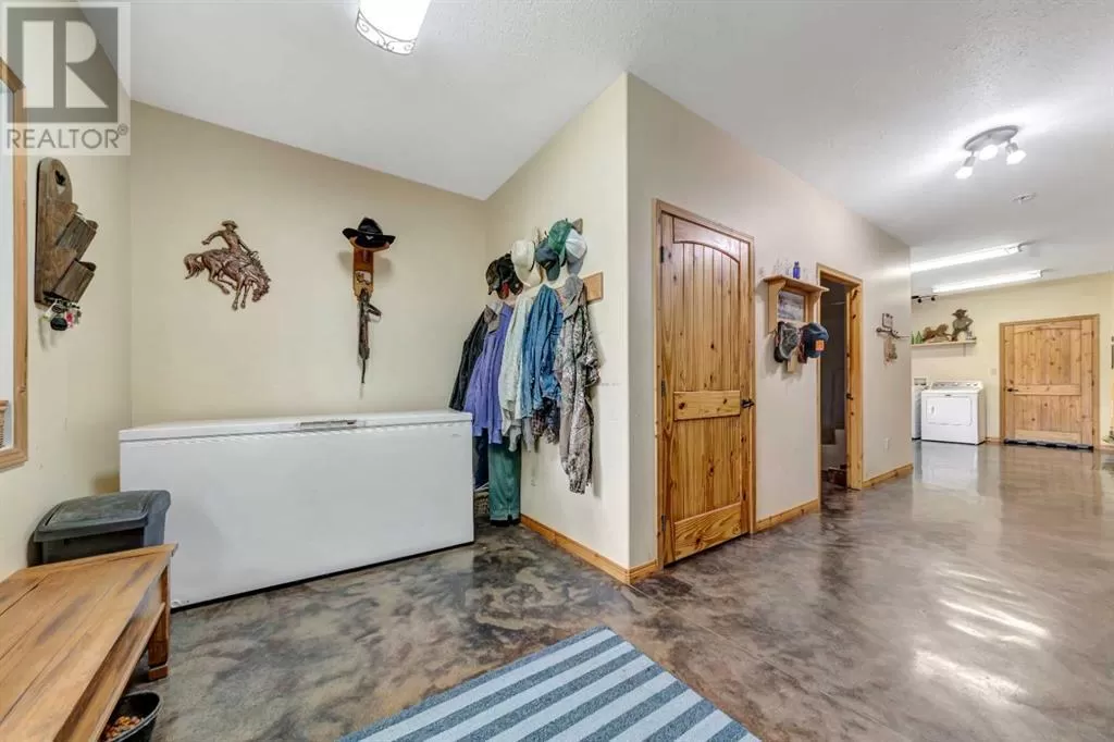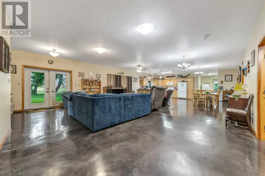 Turnkey ranch on 557 acres, located 25 KM northeast of Marwayne, AB. This property offers approximately half cultivated land and half pasture, making it ideal for supporting a livestock operation. The 2010-built bungalow provides a spacious, single-level, open-concept layout with 2,712 sq ft of living space. Constructed with ICF for energy efficiency and durability, the home features infloor heating throughout its acid-wash concrete floors, supplemented by a wood stove. The exterior is low maintenance with vinyl siding and a metal roof. The house has three bedrooms, two full bathrooms, 36â doors, and 9â ceilings for accessibility and comfort. The main shop offers a 40â x 40â heated area, plus a 20â x 40â annex for additional flexibility, with 12â walls allowing ample space for various uses. The property also includes a barn plus several outbuildings ready to use. Utilities include reliable natural gas service and a 36â bored well with plastic cribbing, tested in August 2024, producing 10 GPM. For more details and a comprehensive information package, please contact the listing office. (id:27476)