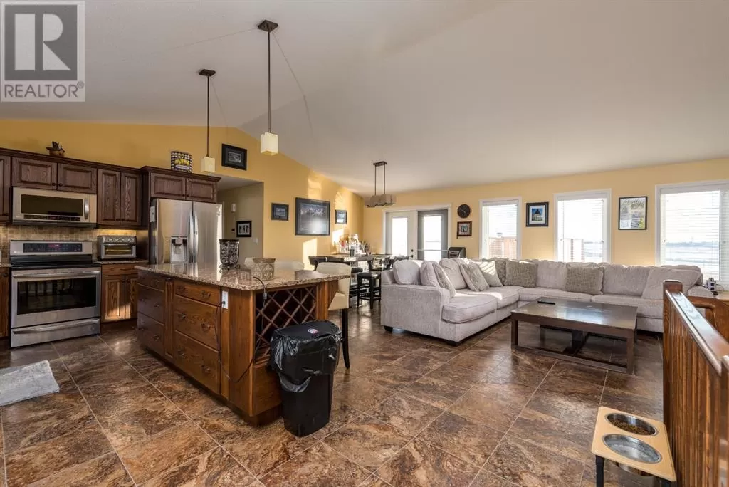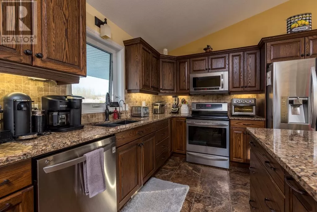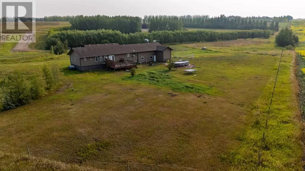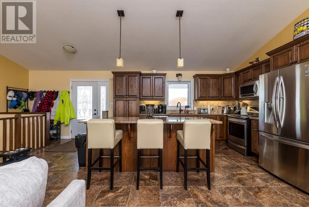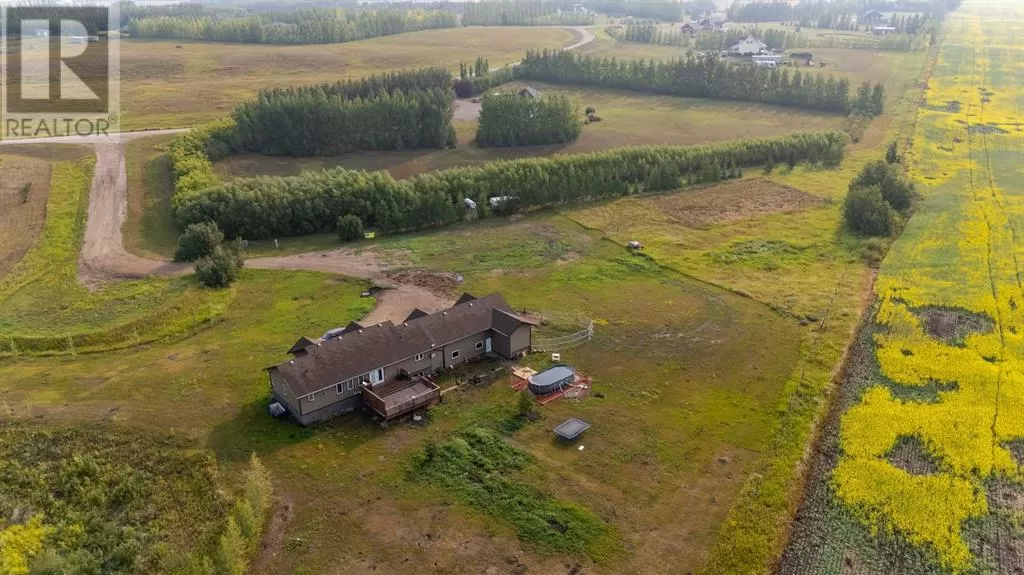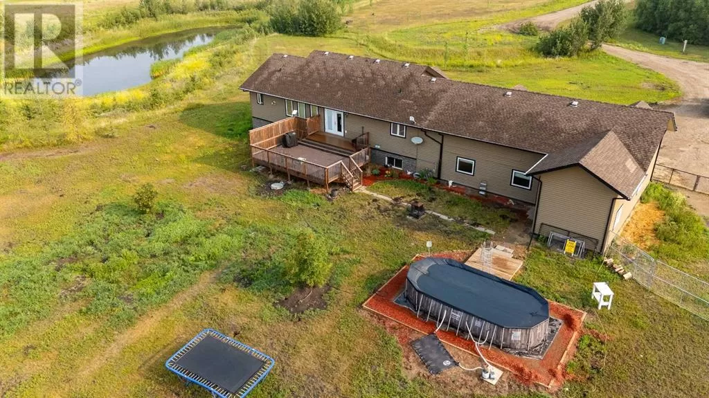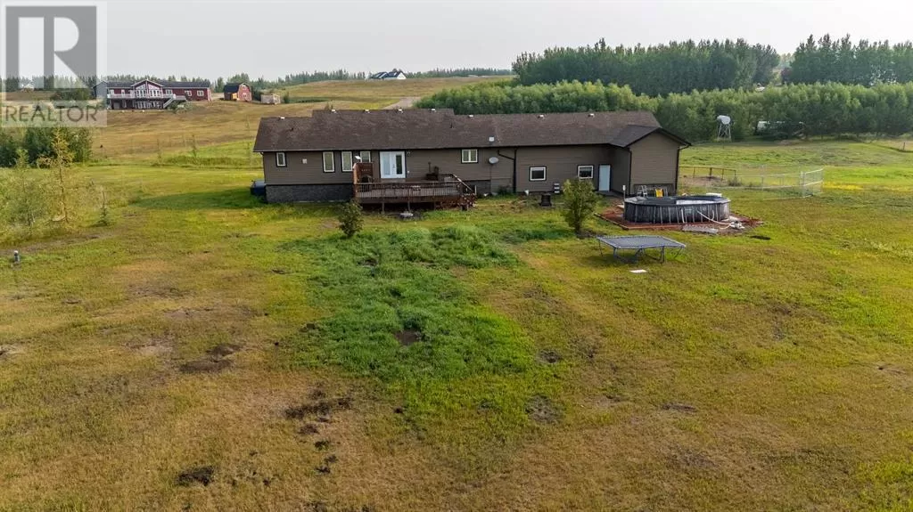34 Rainbow Crescent â Acreage Living with Room to GrowTucked away on nearly 5 acres at the end of a quiet crescent, this beautifully cared-for acreage offers the perfect blend of peaceful country living and modern comfortâjust 5 minutes from Kitscoty and under 20 minutes to Lloydminster.This 5-bedroom, 4-bathroom raised bungalow was custom-built on a solid ICF basement and designed with space, function, and family in mind. The main floor features gorgeous hardwood and ceramic tile, a bright open-concept kitchen, dining, and living space with a cozy gas fireplace, and convenient main floor laundry. Two of the three main floor bedrooms include their own private en suitesâideal for guests or generational family members wanting extra privacy.The lower level is where the fun begins. A huge recreation space, complete with a wet bar and dedicated media room (TV, equipment, and authentic theatre seating from the Telus Science Centre all included), is perfect for movie nights and entertaining. Two additional oversized bedrooms offer even more flexibility for large families or overnight guests.Enjoy the fully finished triple attached garage with a separate work areaâgreat for tinkering, hobbies, or your own mancave/she-shed setup. Front and back decks invite you to take in the sunrise or unwind at sunset, surrounded by over 100 young trees already taking root for future privacy. A dugout, ample green space, and the option for pasture make this acreage as versatile as it is inviting.At 34 Rainbow Crescent, youâre not just buying a homeâyouâre finding your space at the end of the Rainbow. (id:27476)