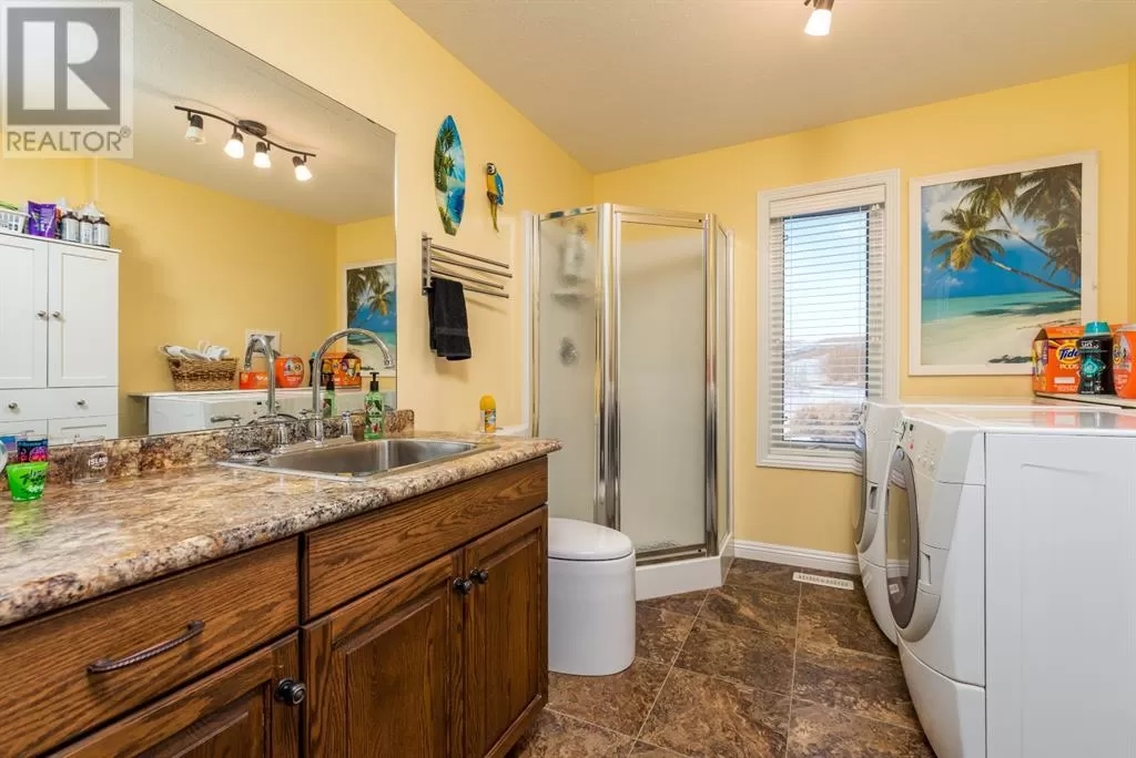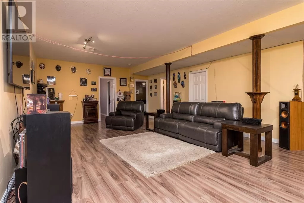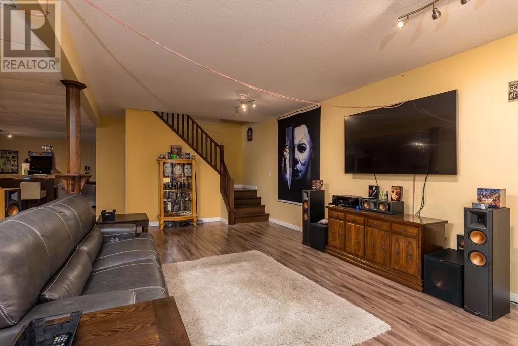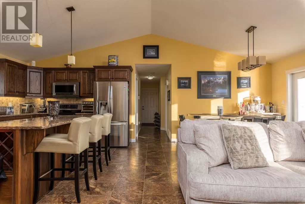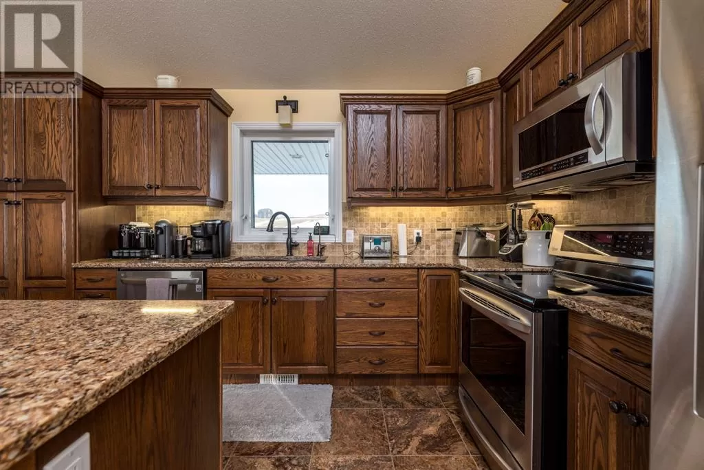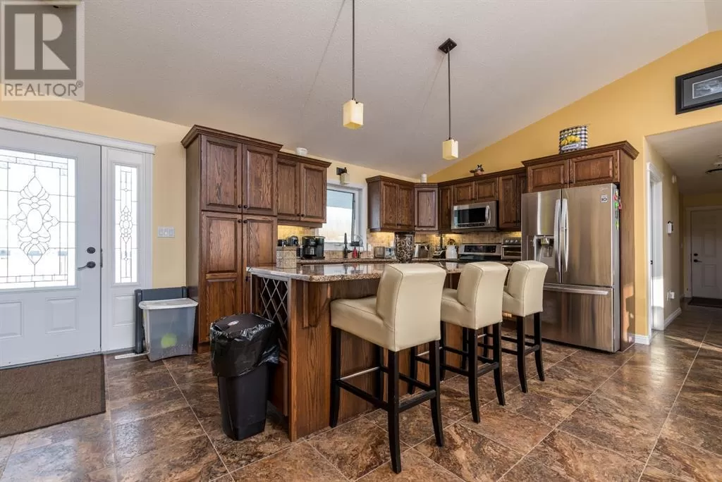 34 Rainbow Crescent â Acreage Living with Room to GrowTucked away on nearly 5 acres at the end of a quiet crescent, this beautifully cared-for acreage offers the perfect blend of peaceful country living and modern comfortâjust 5 minutes from Kitscoty and under 20 minutes to Lloydminster.This 5-bedroom, 4-bathroom raised bungalow was custom-built on a solid ICF basement and designed with space, function, and family in mind. The main floor features gorgeous hardwood and ceramic tile, a bright open-concept kitchen, dining, and living space with a cozy gas fireplace, and convenient main floor laundry. Two of the three main floor bedrooms include their own private en suitesâideal for guests or generational family members wanting extra privacy.The lower level is where the fun begins. A huge recreation space, complete with a wet bar and dedicated media room (TV, equipment, and authentic theatre seating from the Telus Science Centre all included), is perfect for movie nights and entertaining. Two additional oversized bedrooms offer even more flexibility for large families or overnight guests.Enjoy the fully finished triple attached garage with a separate work areaâgreat for tinkering, hobbies, or your own mancave/she-shed setup. Front and back decks invite you to take in the sunrise or unwind at sunset, surrounded by over 100 young trees already taking root for future privacy. A dugout, ample green space, and the option for pasture make this acreage as versatile as it is inviting.At 34 Rainbow Crescent, youâre not just buying a homeâyouâre finding your space at the end of the Rainbow. (id:27476)