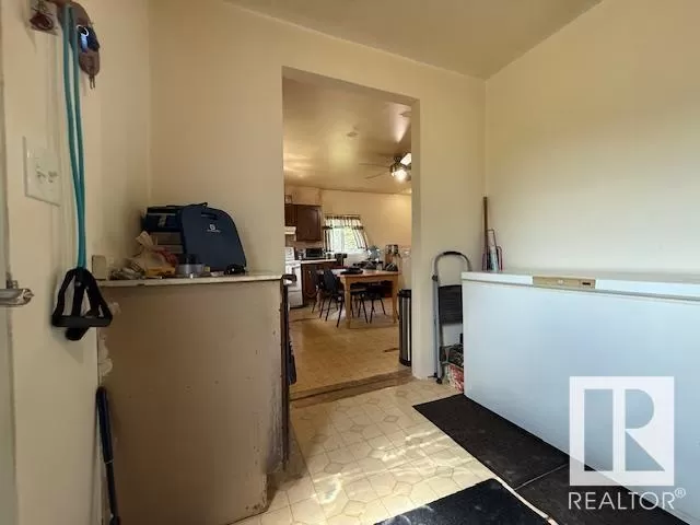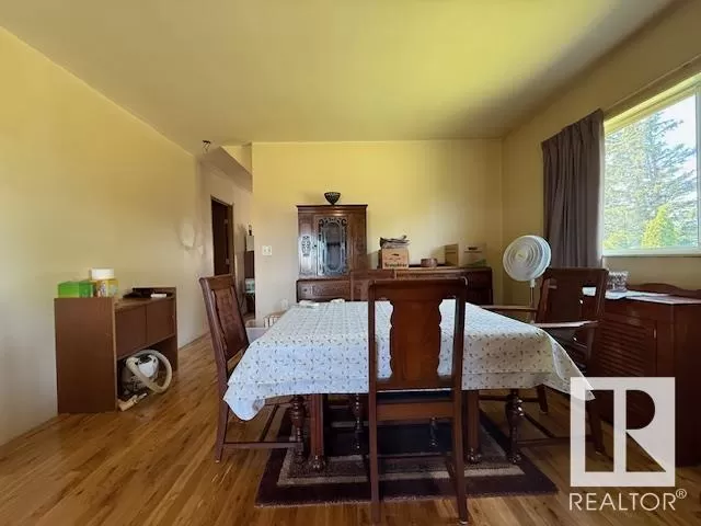 Welcome to this cozy acreage that's just 8 minutes from Lloydminster. This 0.89 acre property offers a pond view, trees, paved range road & lots of opportunity to make it your own. There's a newer septic system a/ mound, well water, a large U turn gravel driveway, & close proximity to Kitscoty (6 min). This bungalow on the main floor offers: 1 bedroom, 1 full bath which functions also as a semi ensuite, the kitchen, a large entry, a spacious dining area as well as the living room. There is access to the back of the home via patio sliding doors. (The deck will need to be removed, and isn't safe to walk on, do not walk on please). Up in the Loft area, there is a landing for storage, and two areas that have a window each; This allows for a great cross breeze. The undeveloped basement has large above ground windows & can be developed into a 2 bedroom plus 1 bathroom, & laundry. (*Please note in the past the home has been smoked; has not been smoked in the past few months.) (Handyman special)(Lot 129' x 298') (id:27476)