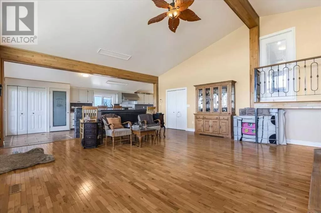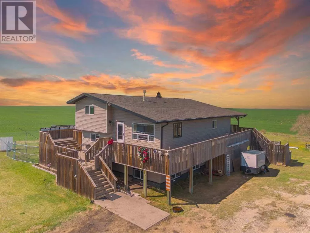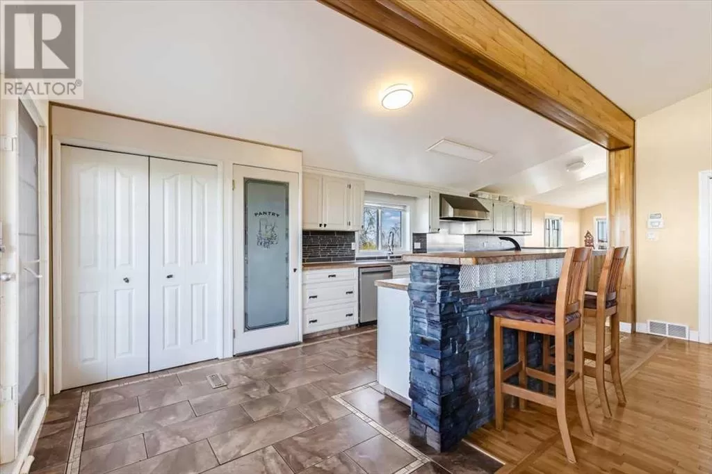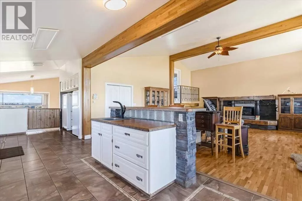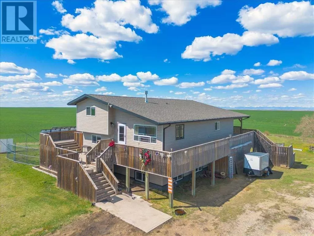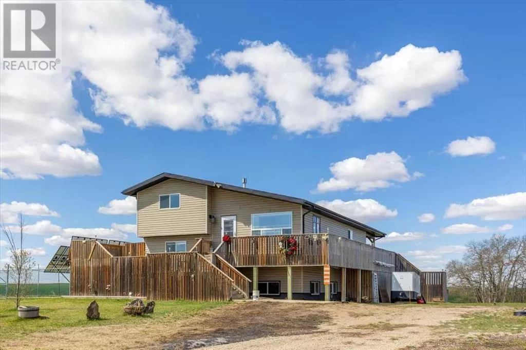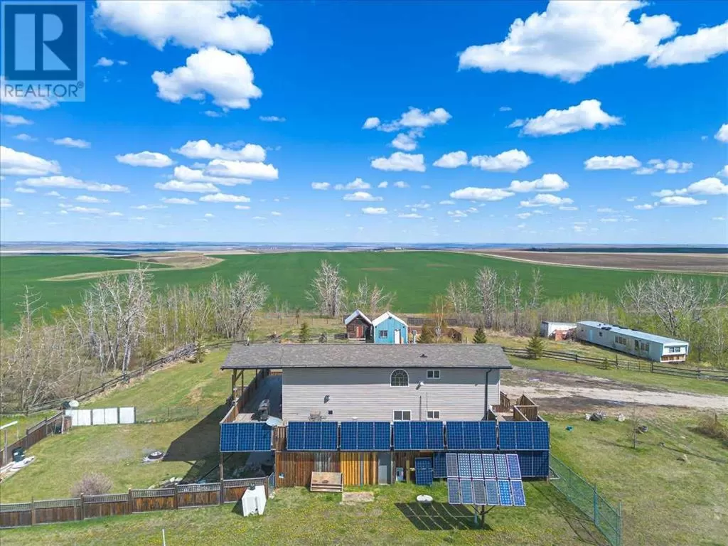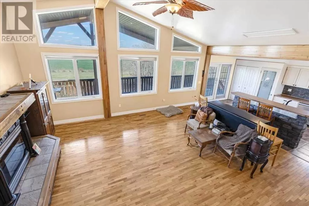 If you missed it the first time don't miss it again buyers couldn't get financing!!! Call your favorite agent and see it before it's too late!! Immediate possession is available!!! County living at it's finest with a total of just under 3200 sqft!! This beautiful property features panoramic views from the west facing covered deck you have an incredible mountain view or move around to the south and see the lush fields or walk around to the east for the views of the rolling hills or the north you can enjoy the pasture, trees and raven. This property is truly incredible and features a full solar system for all of you electrical needs, batteries and system were upgraded this year. If the solar ever does go down no need to worry as the diesel generator is there. When you walk into this home you will see an open concept, hardwood flooring and built in book cases. Walk in a bit further and you will find a huge custom kitchen, with plenty of counter space tons of cupboards and a huge pantry that is perfect for all your small appliances. 2 sinks makes prep a breeze!! The open living room and kitchen concept makes entertaining easy with a raised eating bar, huge living room complete with vaulted ceiling, gas fireplace and huge windows that flood the room with light. Upstairs you will find a primary bedroom to live for with a giant soaker tub, 3 sided fireplace, huge walk in closet. The next level features a generous sized laundry room with plenty of storage as well as a 4 piece bathroom and a second bedroom. Downstairs you will find heated floors, high ceilings and access to your back yard from the walk out. You will find 2 more bedrooms and another 4 piece bathroom. It doesn't end there there is a 40x80 shop, single detached garage and corrals. This home truly is a must see and features a larger parcel, beautiful home and a big shop. Call your favorite agent to view today (id:27476)