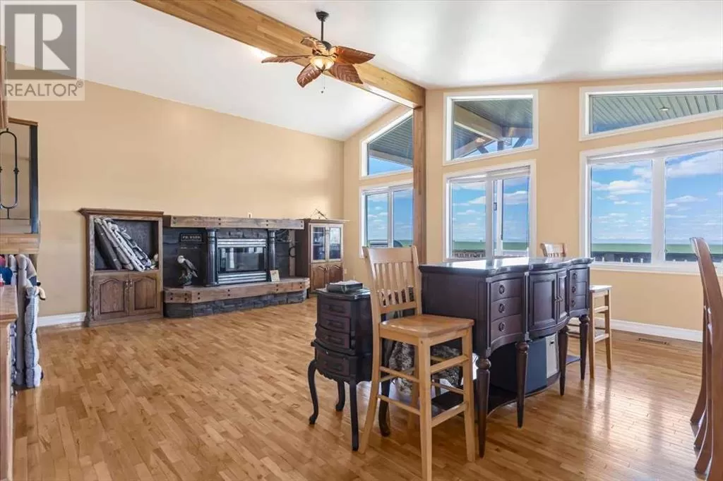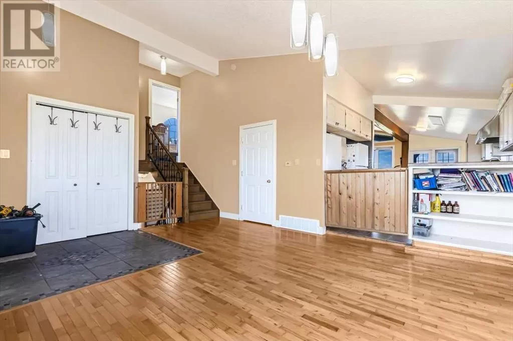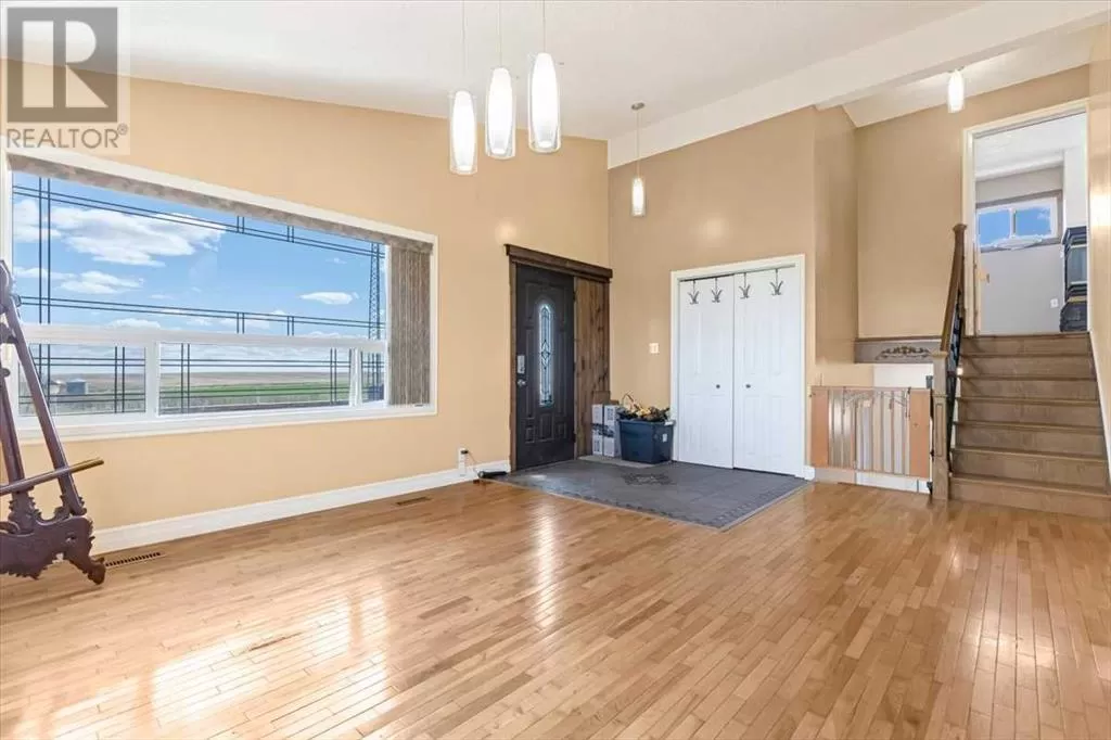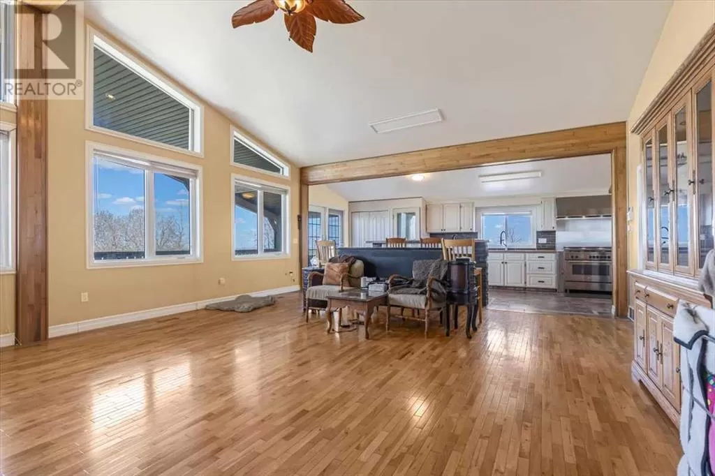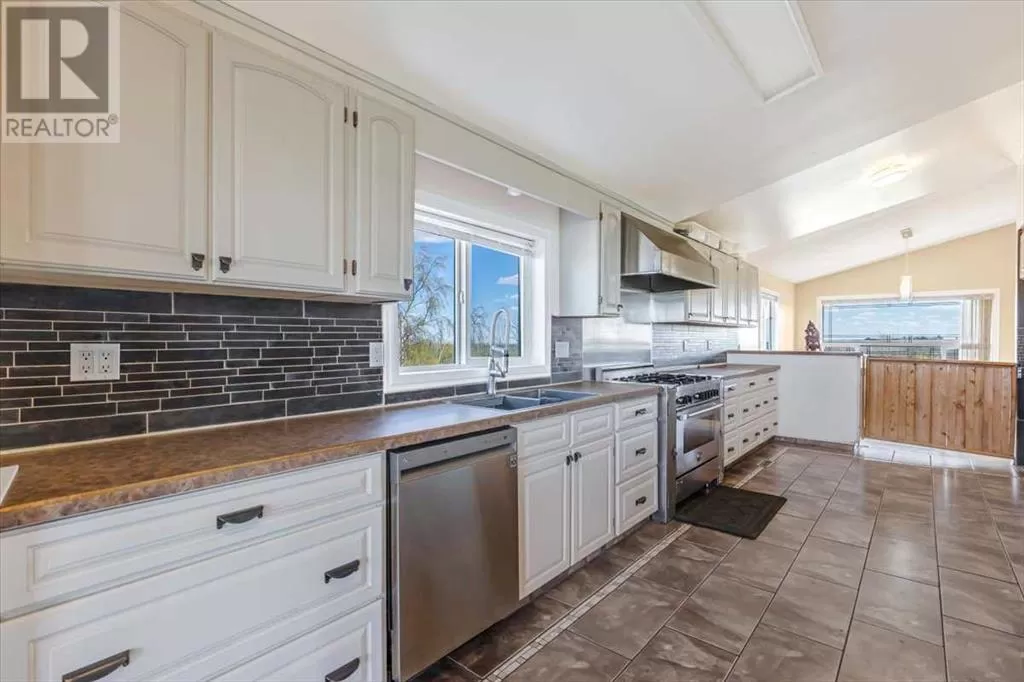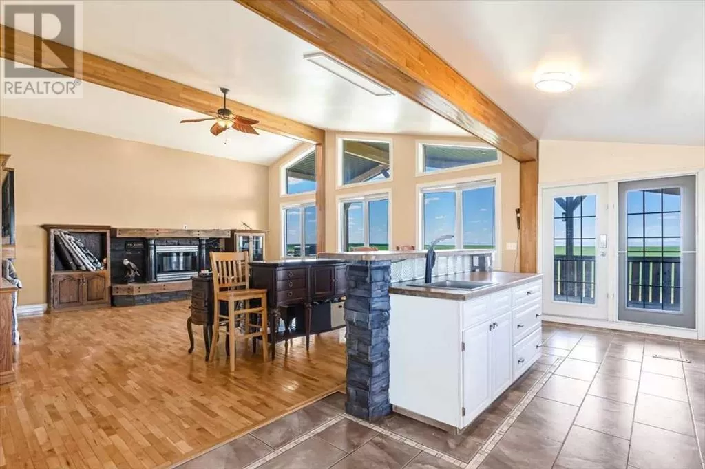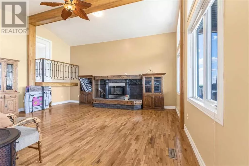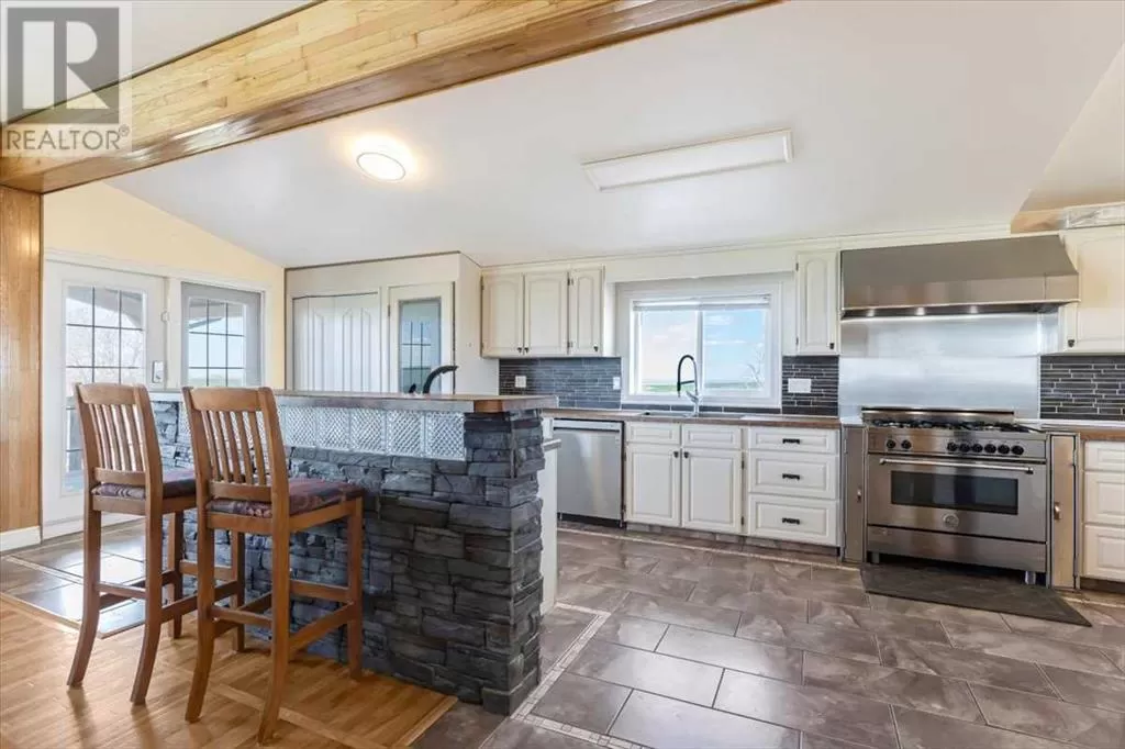 If you missed it the first time don't miss it again buyers couldn't get financing!!! Call your favorite agent and see it before it's too late!! Immediate possession is available!!! County living at it's finest with a total of just under 3200 sqft!! This beautiful property features panoramic views from the west facing covered deck you have an incredible mountain view or move around to the south and see the lush fields or walk around to the east for the views of the rolling hills or the north you can enjoy the pasture, trees and raven. This property is truly incredible and features a full solar system for all of you electrical needs, batteries and system were upgraded this year. If the solar ever does go down no need to worry as the diesel generator is there. When you walk into this home you will see an open concept, hardwood flooring and built in book cases. Walk in a bit further and you will find a huge custom kitchen, with plenty of counter space tons of cupboards and a huge pantry that is perfect for all your small appliances. 2 sinks makes prep a breeze!! The open living room and kitchen concept makes entertaining easy with a raised eating bar, huge living room complete with vaulted ceiling, gas fireplace and huge windows that flood the room with light. Upstairs you will find a primary bedroom to live for with a giant soaker tub, 3 sided fireplace, huge walk in closet. The next level features a generous sized laundry room with plenty of storage as well as a 4 piece bathroom and a second bedroom. Downstairs you will find heated floors, high ceilings and access to your back yard from the walk out. You will find 2 more bedrooms and another 4 piece bathroom. It doesn't end there there is a 40x80 shop, single detached garage and corrals. This home truly is a must see and features a larger parcel, beautiful home and a big shop. Call your favorite agent to view today (id:27476)
