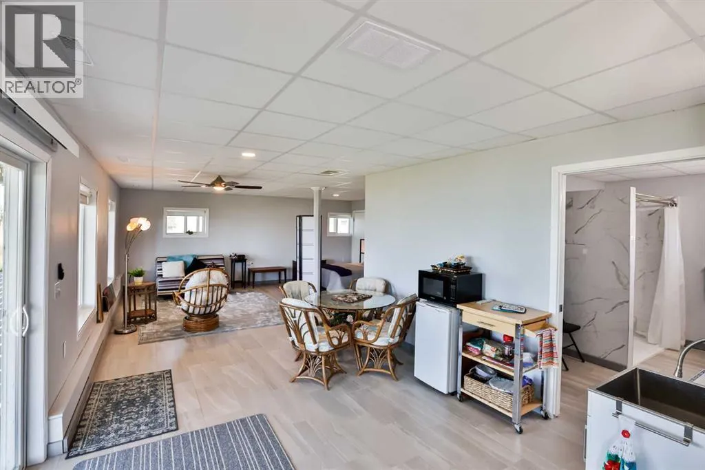 *Welcome to Your Ideal Recreational Getaway on Lake McGregor**Discover the perfect recreational property just over an hour from Calgary at Sunset Marks on Lake McGregor. This stunning lakefront home provides an exceptional setting to entertain friends and enjoy various activities both on and off the water. Whether you prefer paddleboarding, kayaking, kiteboarding, motorboating, or even ice fishing in the winter, this location has it all.Set on just under 7 acres, the charming 1956 home boasts 960 square feet of living space, which was thoughtfully brought in and placed on a new concrete walkout foundation in 2004. The property features 3 comfortable bedrooms, 2.5 bathrooms, and a fully developed basement with an abundance of windows, allowing natural light to flood the space.The main floor showcases huge windows that offer breathtaking views of the lake, complemented by a fully wraparound deck âperfect for enjoying those beautiful summer evenings. The home is equipped with two potable water tanks, each holding 1,250 gallons. Recent upgrades include a new air conditioning system installed in 2023, and the kitchen was modernized in 2009. The furnace and hot water tank were also replaced when the house was placed on its foundation in 2004.Additional features of this property include in-floor heating in the basement, a spacious 34 x 52 workshop with RV parking and propane heat, and 2 X 12' x 14' doors for easy access. A rainwater collection system is in place, providing 1,250 gallons of stored rainwater for watering the lawn.An additional outbuilding with its own electricity, shower, and toilet is conveniently hooked up to the septic system, enhancing the property's functionality. The home runs on propane, with two tanks located on the property.For water enthusiasts, there's a boat launch just down the road. The roof and siding were replaced in 2009, ensuring a well-maintained exterior. The closest town is Milo, which offers various amenities for your conven ience.Don't miss out on this unique opportunity to own a piece of paradise that combines relaxation, recreation, and the beauty of lakefront living. (id:27476)