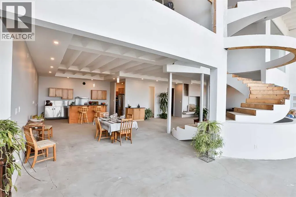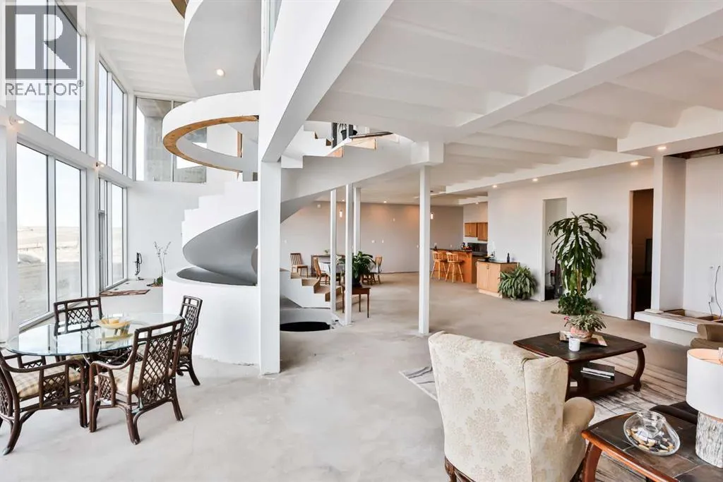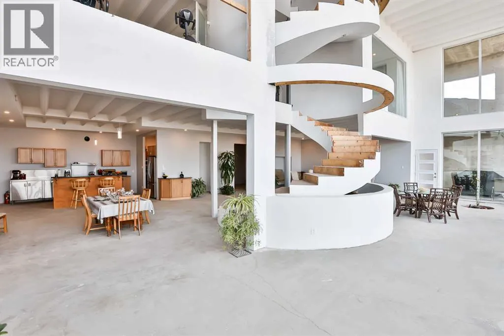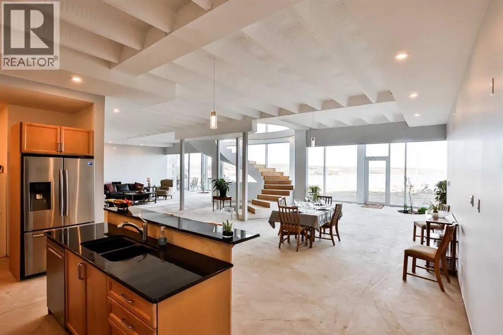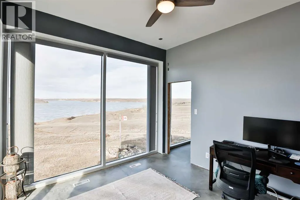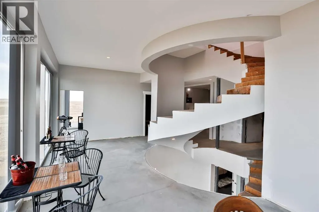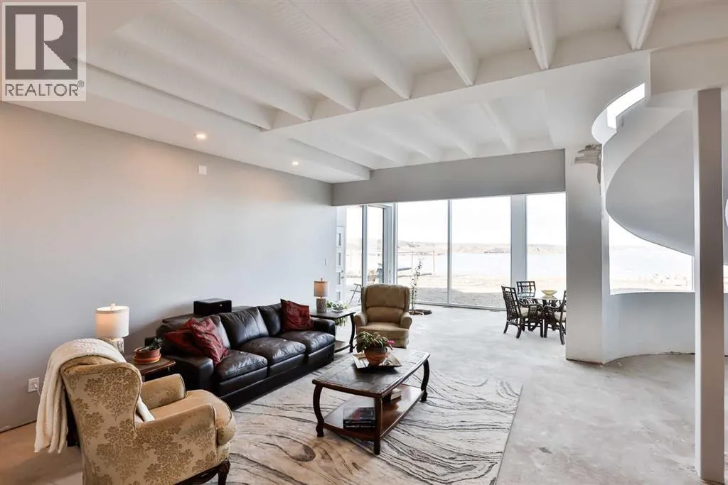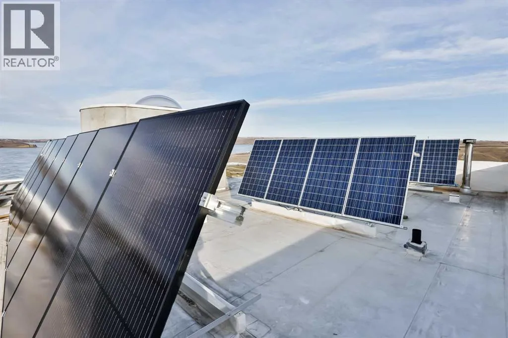 This lakeside retreat promises a luxurious yet environmentally conscious lifestyle, with allowing you to select all the remaining finishes to make this home your own! This outstanding âoff the gridâ double envelope house is a Passive Solar House design which collects solar energy in a solarium, and passively allows the warm air to circulate around the house between two sets of walls (a double building envelope). The description of the property emphasizes its eco-friendly and sustainable design, but its location is just as amazing, offering stunning views of the Little Bow Reservoir. The design seamlessly blends modern luxury with outdoor living, providing a serene escape from the hustle and bustle of everyday life. For those seeking a harmonious balance between comfort and environmental consciousness, this lakeside estate offers a unique opportunity to embrace a sustainable waterfront lifestyle for your self or as an income property for an Air BnB. The property features four bedrooms with your very own balcony and views for miles, the potential of 4.5 bathrooms (1.5 Complete), and various amenities like a games room and a media room. The picturesque setting invites residents to enjoy water sports and immerse themselves in nature. Additional benefits of this off the grid living home are 4 levels including a 4 car garage, 16 Solar panels, 210,000 btu boiler system for in floor heating, and a wood burning fireplace in one of the garages. There are two areas to grow trees in the solarium. Each and every room is nice and spacious! The first floor features a large kitchen with walk in pantry, mudroom, a grand entrance with the 22â soring ceiling, sitting room, living room, and a fantastic media room. The real show stopper is the one of a kind, "stair way to heaven" curved staircase in the center of each floor. The second floor has acid stained polyurethane coating on the concrete, and two positively massive primary bedrooms. Both these bedrooms feature windows for days, l arge walk in closets, and rough ins for what could be incredible ensuites. The laundry is conveniently located between the two bedrooms as well. The third floor includes another large sitting room, two more bedroom, entrance from the garages, and a 3 piece bath. You simply will not find another home like this one anywhere! The windows and thoughtful design will wow you, the efficiency and design just make sense, and the views will never get old. You truly must see this one to appreciate it! Give your Realtor a call and come see what eco friendly living could look like for you! NOTE: Home is not complete and sold as is where is. Please see supplements. (id:27476)