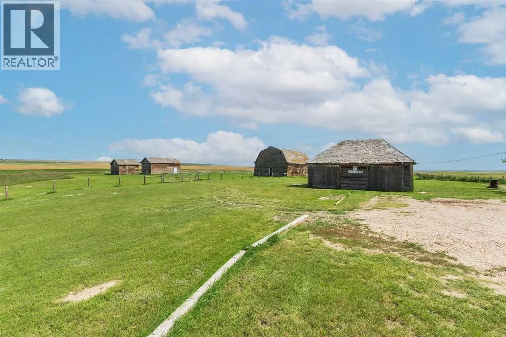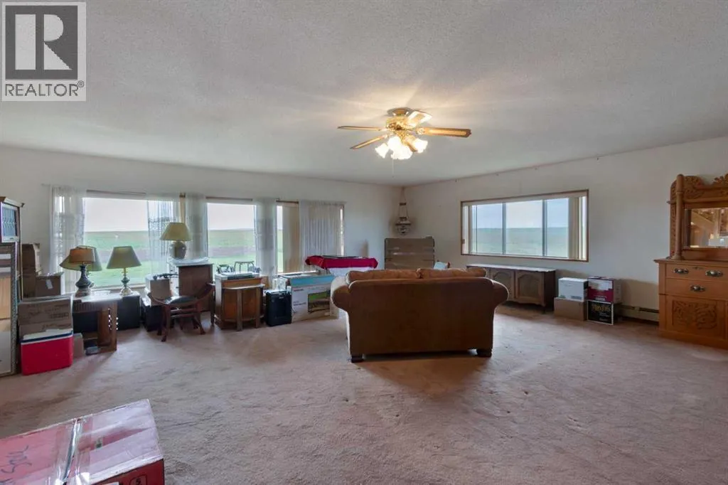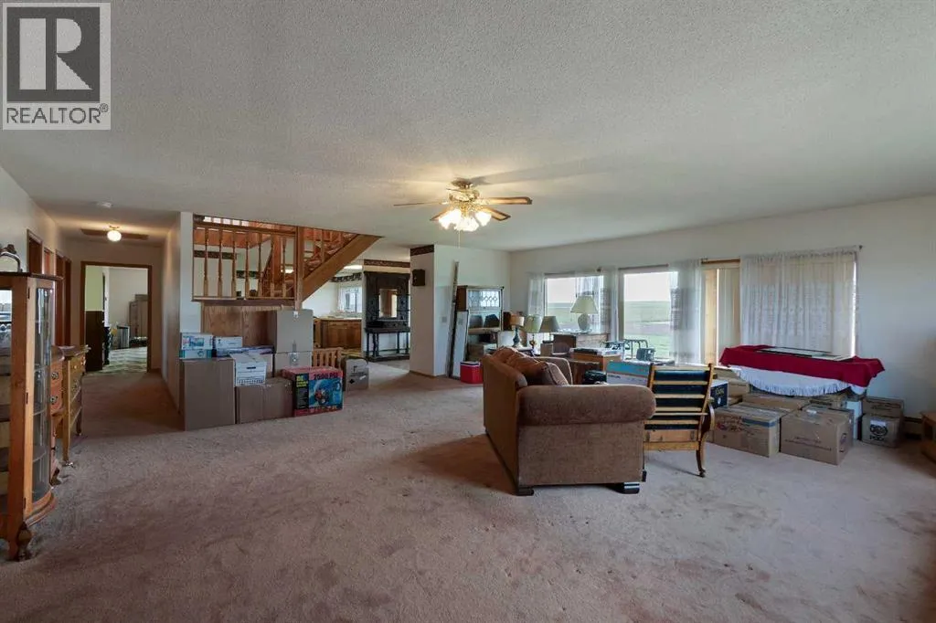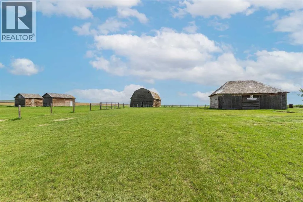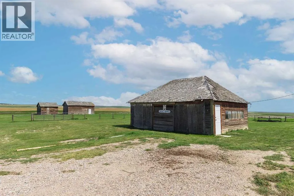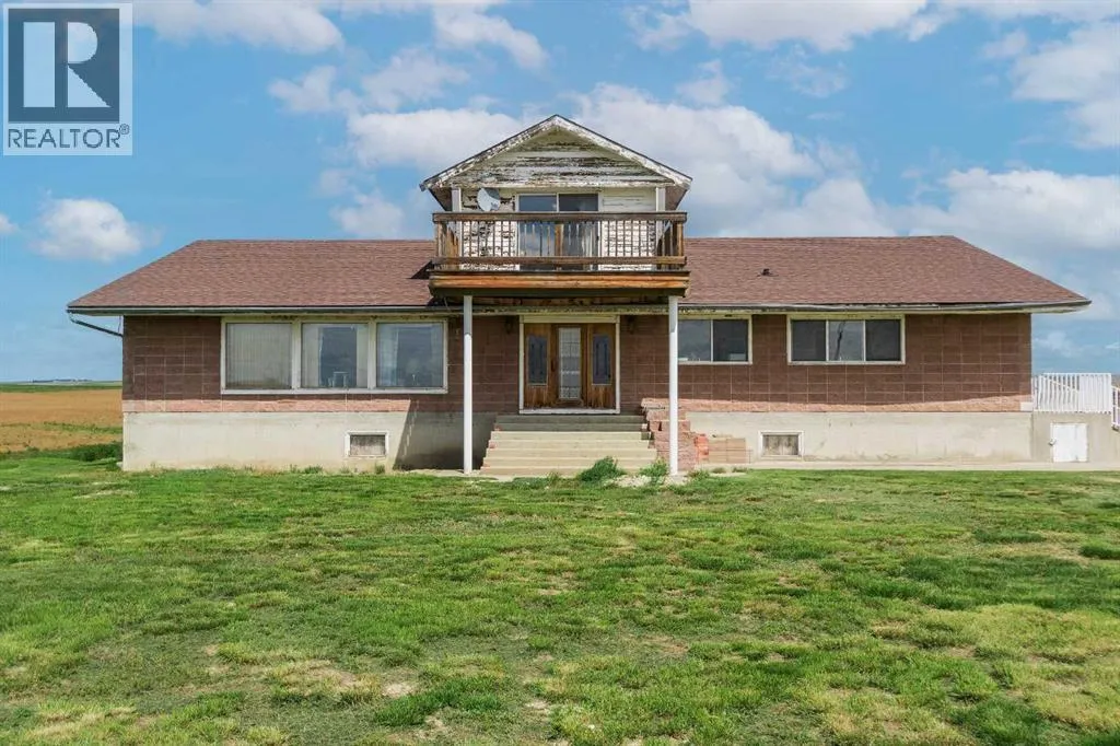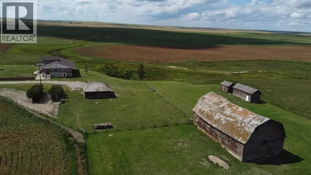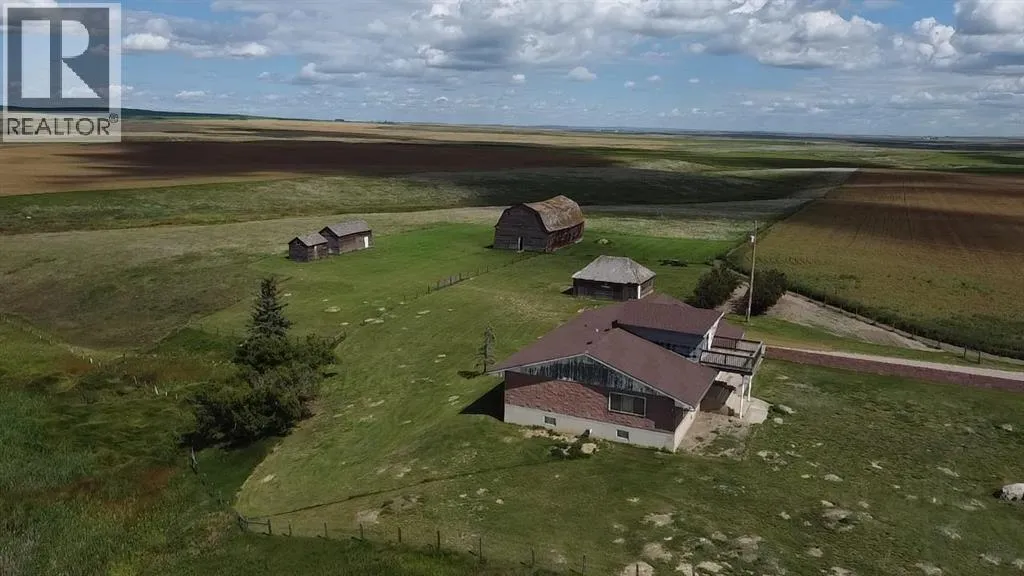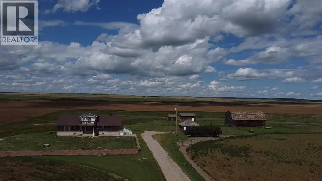 Just 15 minutes northeast of the Town of Vulcan, this 8.86-acre property offers a rare opportunity to own a solidly built country home with room to make it your own. Constructed in 1981 with concrete block exterior walls and poured concrete basement walls, this bungalow boasts over 2,450 sq. ft. on the main level, plus a 278 sq. ft. upper level with a walk-out deck. The home has a dated interior but tremendous potential to increase value with cosmetic updates. The main floor features an open-concept kitchen, dining, and living room, four spacious bedrooms, a full bathroom, a large laundry room, and a mudroom with sink at the main entrance. The upper level offers a bright family room with deck access and sweeping views of the countryside. The basement, currently used for storage, has a gravel floor, high ceilings, and great potential for development. Recent updates include a boiler system replaced within the past five years. Water is supplied by a drilled well, and there is also a right of way for a water co-op on the property. The acreage includes fenced pasture land, an older but well-maintained shop, additional older buildings used for storage, and an older barn in poor condition. The peaceful setting is enhanced by a natural drawâa small valleyârunning through the pasture at the north end of the property. If youâre searching for a strong, well-built home in a tranquil rural settingâready for your personal touchâthis property is worth a closer look. (id:27476)