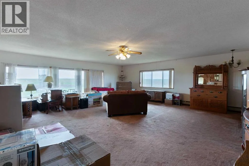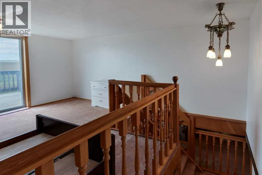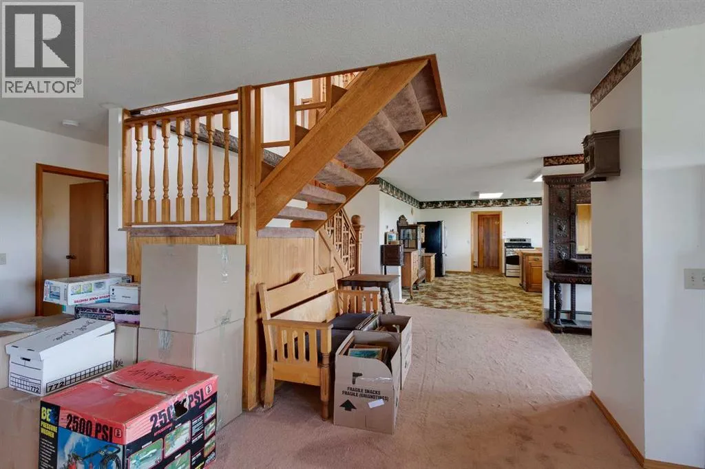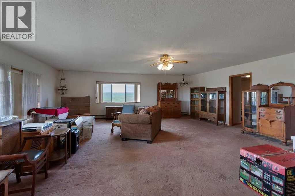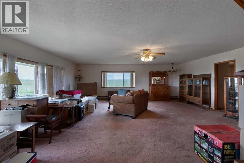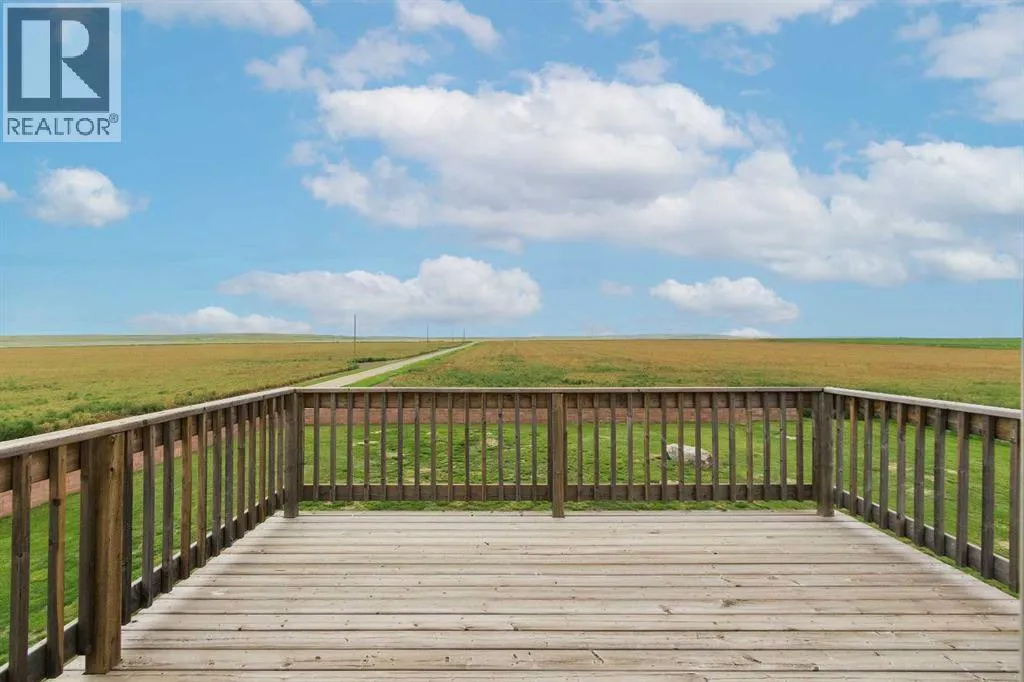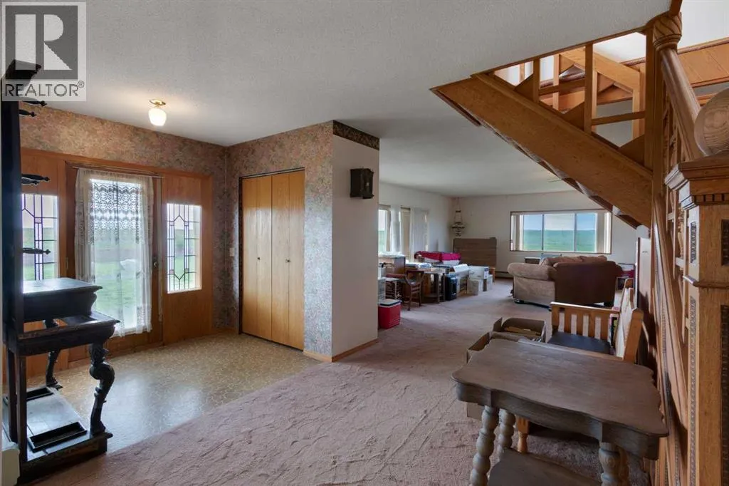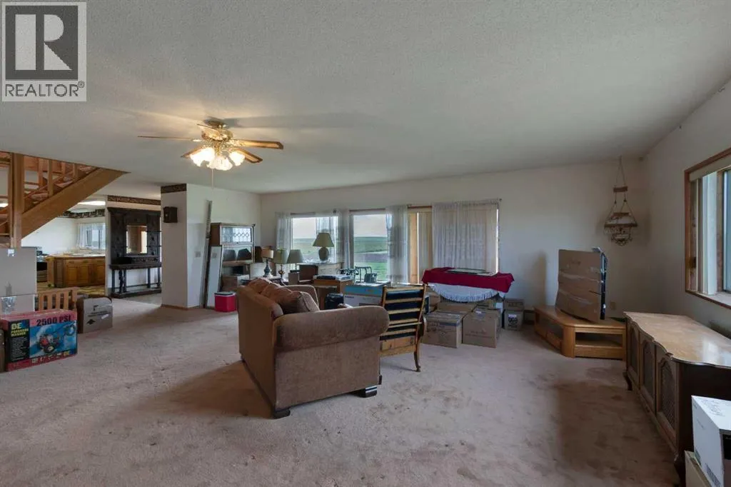 Just 15 minutes northeast of the Town of Vulcan, this 8.86-acre property offers a rare opportunity to own a solidly built country home with room to make it your own. Constructed in 1981 with concrete block exterior walls and poured concrete basement walls, this bungalow boasts over 2,450 sq. ft. on the main level, plus a 278 sq. ft. upper level with a walk-out deck. The home has a dated interior but tremendous potential to increase value with cosmetic updates. The main floor features an open-concept kitchen, dining, and living room, four spacious bedrooms, a full bathroom, a large laundry room, and a mudroom with sink at the main entrance. The upper level offers a bright family room with deck access and sweeping views of the countryside. The basement, currently used for storage, has a gravel floor, high ceilings, and great potential for development. Recent updates include a boiler system replaced within the past five years. Water is supplied by a drilled well, and there is also a right of way for a water co-op on the property. The acreage includes fenced pasture land, an older but well-maintained shop, additional older buildings used for storage, and an older barn in poor condition. The peaceful setting is enhanced by a natural drawâa small valleyârunning through the pasture at the north end of the property. If youâre searching for a strong, well-built home in a tranquil rural settingâready for your personal touchâthis property is worth a closer look. (id:27476)