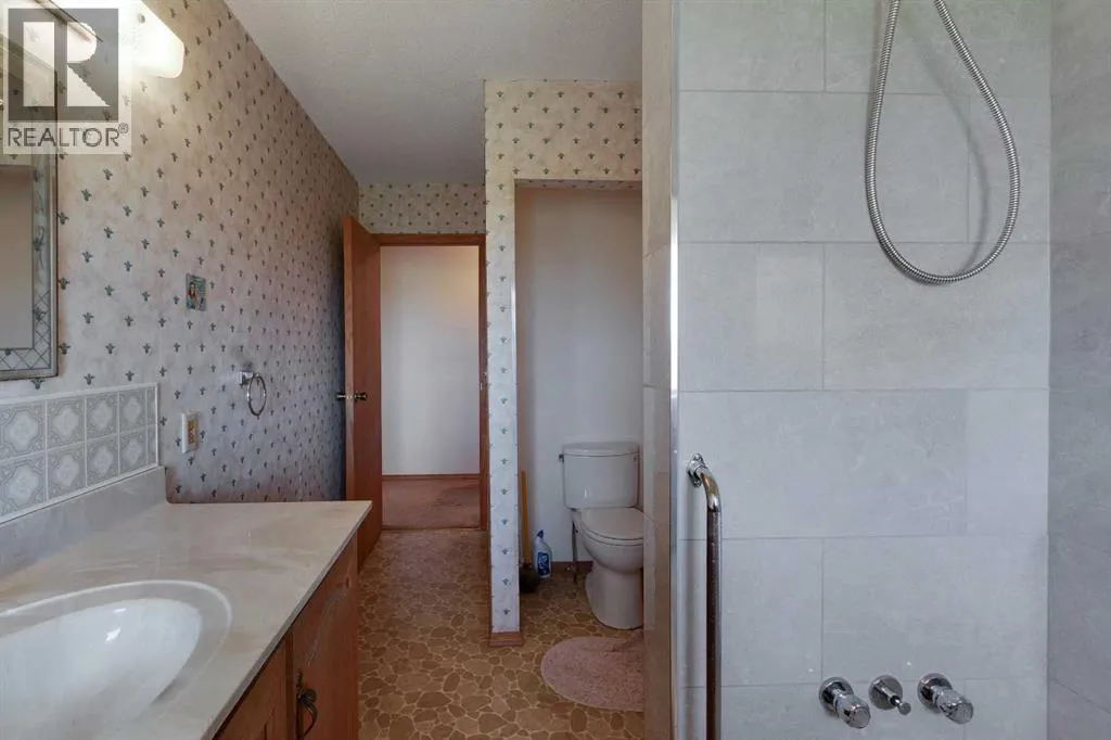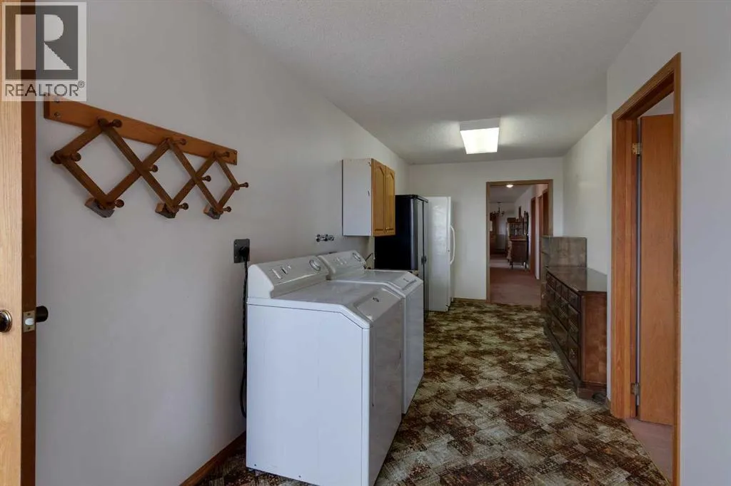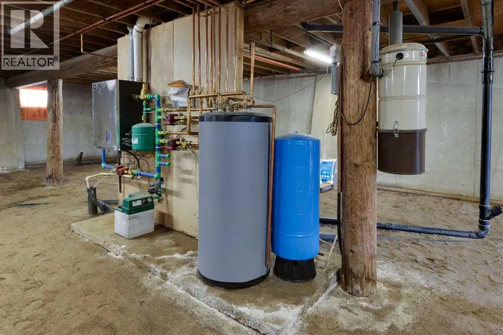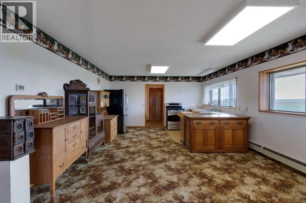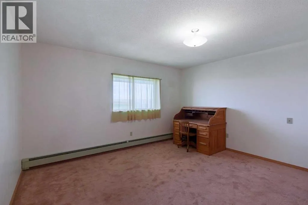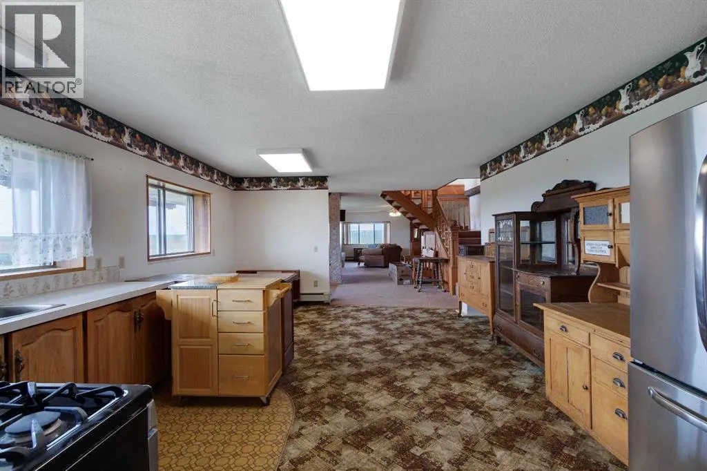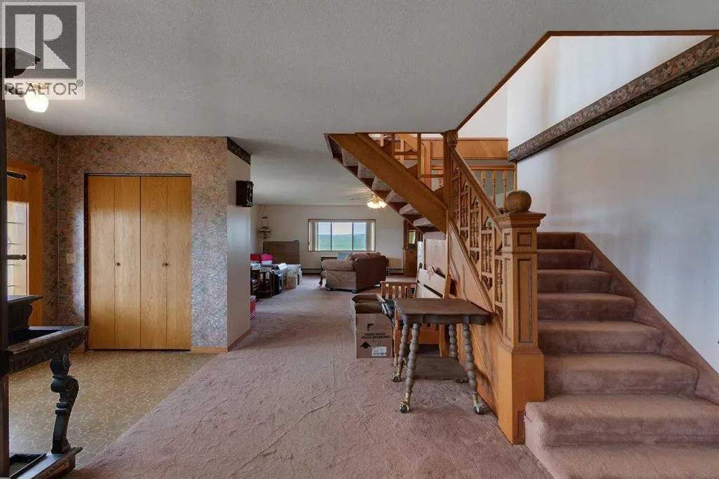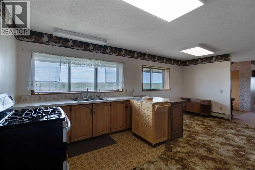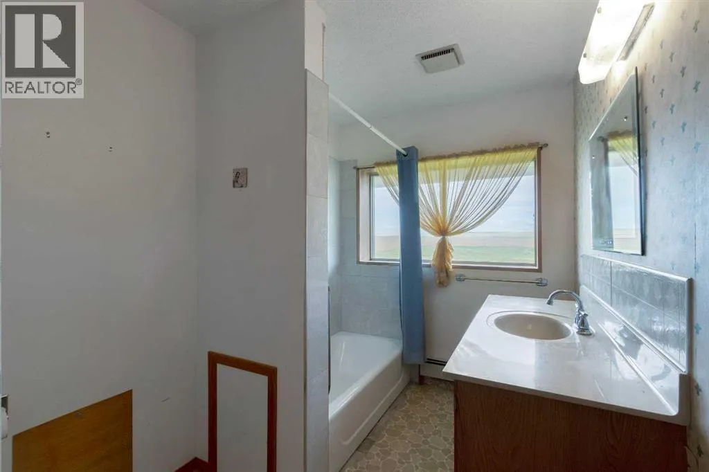 Just 15 minutes northeast of the Town of Vulcan, this 8.86-acre property offers a rare opportunity to own a solidly built country home with room to make it your own. Constructed in 1981 with concrete block exterior walls and poured concrete basement walls, this bungalow boasts over 2,450 sq. ft. on the main level, plus a 278 sq. ft. upper level with a walk-out deck. The home has a dated interior but tremendous potential to increase value with cosmetic updates. The main floor features an open-concept kitchen, dining, and living room, four spacious bedrooms, a full bathroom, a large laundry room, and a mudroom with sink at the main entrance. The upper level offers a bright family room with deck access and sweeping views of the countryside. The basement, currently used for storage, has a gravel floor, high ceilings, and great potential for development. Recent updates include a boiler system replaced within the past five years. Water is supplied by a drilled well, and there is also a right of way for a water co-op on the property. The acreage includes fenced pasture land, an older but well-maintained shop, additional older buildings used for storage, and an older barn in poor condition. The peaceful setting is enhanced by a natural drawâa small valleyârunning through the pasture at the north end of the property. If youâre searching for a strong, well-built home in a tranquil rural settingâready for your personal touchâthis property is worth a closer look. (id:27476)