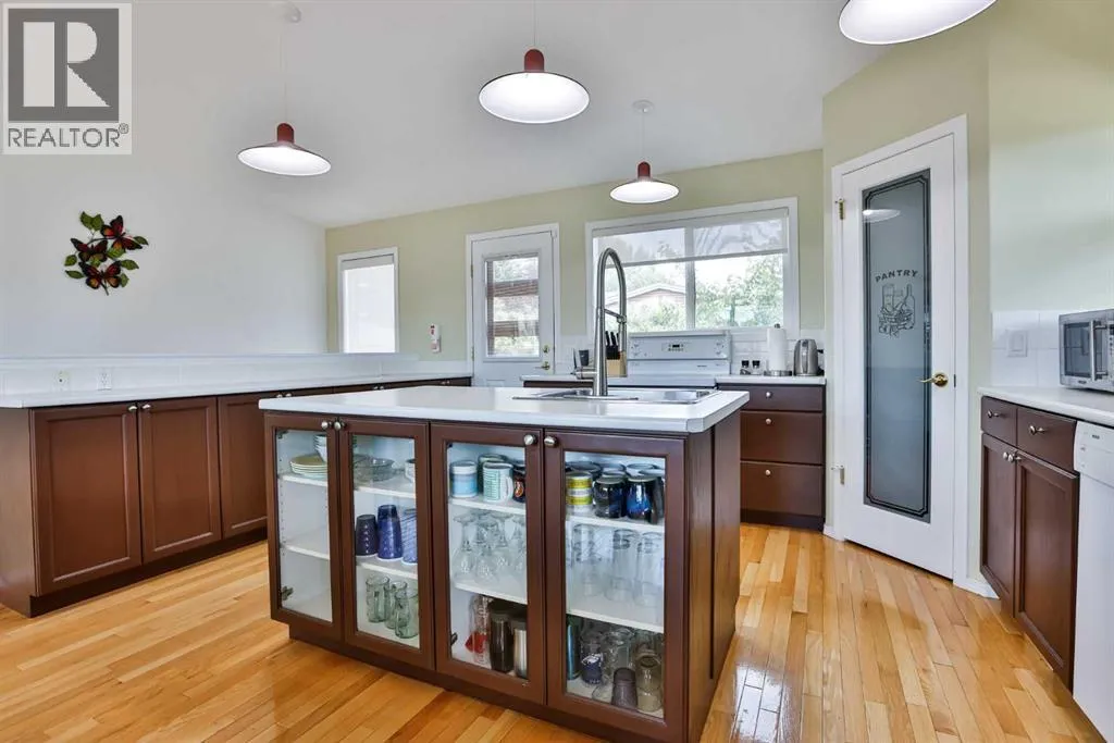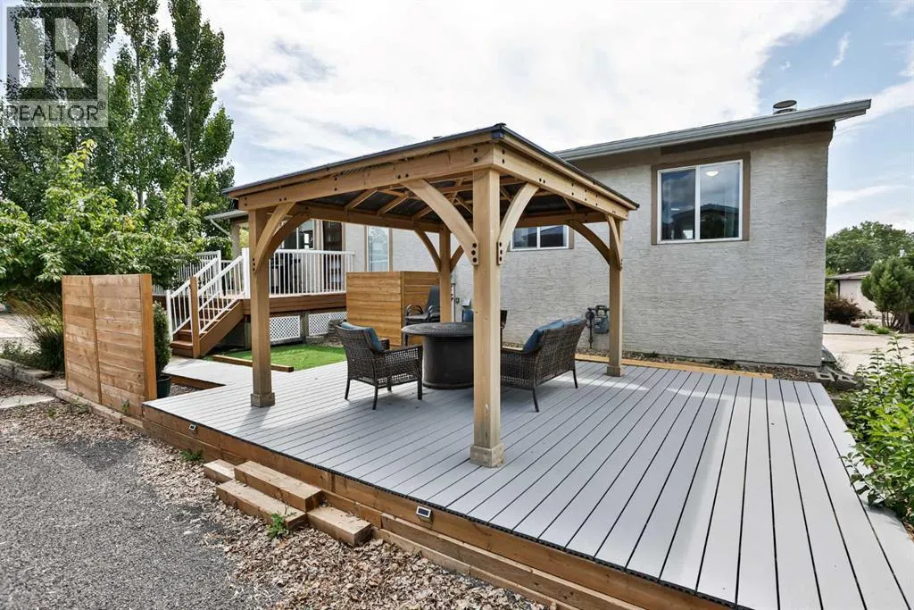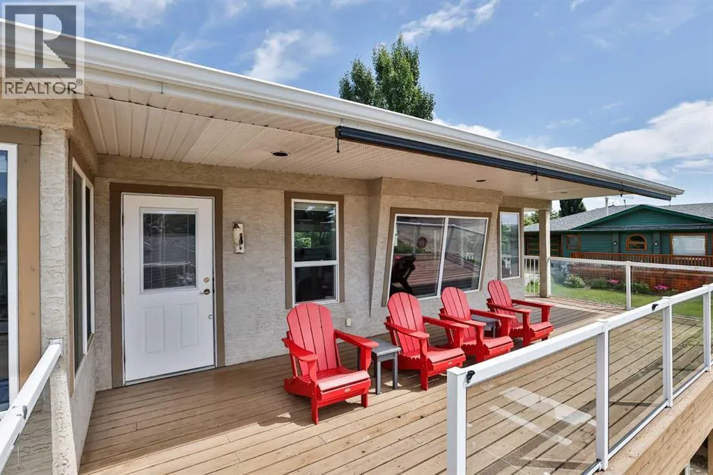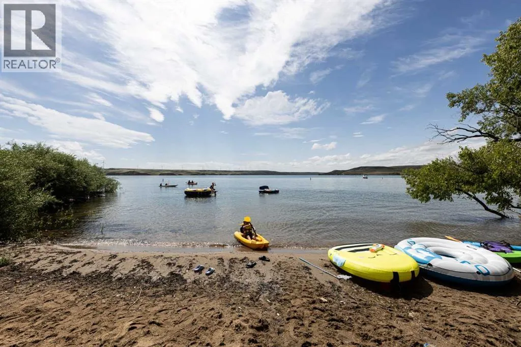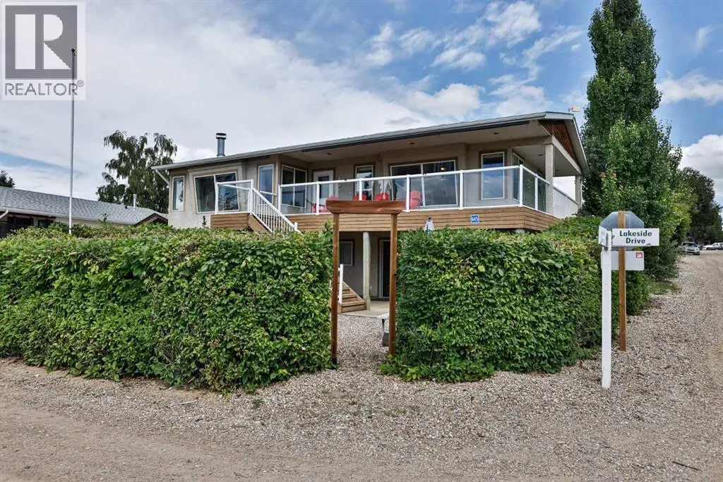 Welcome to your summer/ year round resort property which is located in Little Bow Resort. The resort is located on the Travers Reservour which supplies plenty of activities such as boating, fishing, water skiing, sailing and even ice fishing in the winter. This wonderful home is plenty large enough with 3 bedrooms. The main floor with lots of large windows is an open concept with a large kitchen which has plenty of room for large gatherings around the kitchen table and island. The spacious living room features a beautiful wood burning fireplace for those cool nights. The main level has beautiful hardwood floor throughout and tile in the bathroom. The lower level features the primary bedroom, laundry, double detached garage and utility room. Oh yes the home has Central A/C for those hot summer days. The home has a large wrap around deck so you can enjoy the sun or shade, whichever is your preference. There"s actually pull down shades on the deck as well. In the front of this low maintenance property you get great views of the lake from the front deck. Also in the front , on the ground level, you have a private yard with a firepit . There is also an outdoor shower at this level so you can rinse off before heading inside full of sand from the beach. The rear yard also has a nicely shaded deck. There is also a gazebo to enjoy having meals on those warm summer days. There is also RV parking in the rear. The home is located on the corner of Lakeside Dr and Canal Lane. Across from the property is a walkway to the lake. There's a private boat launch for residents of the community. Also this awesome property features a large 29 x 12 secured private boat shed which will be sold with the property. Sound like the place for you? Give your favourite Realtor a call today for your private viewing. (id:27476)