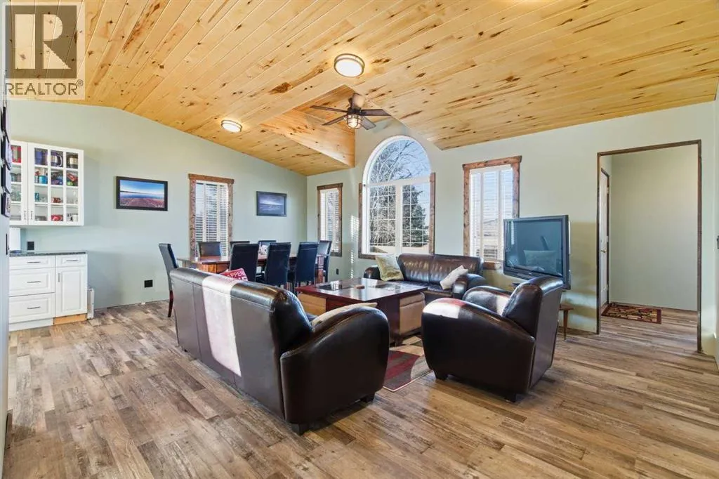 Welcome to your private getaway in the heart of Little Bow Resort, one of Southern Albertaâs favorite lake communities. This charming bungalow offers 1,027 sq ft of bright, open-concept living with vaulted ceilings, expansive windows, and a seamless flow between the kitchen, dining, and living areasâperfect for relaxed entertaining and effortless lake-life living. Natural light pours in while tranquil park and greenspace views create a true sense of escape. The kitchen is designed with both style and function in mind, featuring granite countertops, generous cabinetry and counter space, complemented by smart storage throughout the home including closet organizers and well-planned built-ins. Durable vinyl plank flooring and natural wood accents add warmth and practicality for a low-maintenance vacation lifestyle. The insulated attached double garage includes in-floor heating and provides plenty of room for vehicles, water toys, and seasonal gear. Downstairs, the full basement is already framed for two additional bedrooms, full bath and rec room and includes in-floor heating and numerous materials and components already on site to help complete developmentâoffering a valuable head start for expanding your retreat or accommodating more guests. Enjoy mornings on the front porch, afternoons at the lake swimming or fishing, and evenings gathered around the outdoor fire pit under prairie skies. Resort amenities include pickle ball courts, walking and paths, boat launch, various beaches and abundant green space just steps from your door. Located only 20 minutes from Vulcan and approximately one hour from Calgary, Little Bow Resort is ideal for spontaneous weekend escapes or year-round enjoyment. A large parking area easily accommodates several vehicles RVs and a boat. Furniture is negotiable for a truly turnkey opportunity. Whether youâre seeking a peaceful lake escape, a family recreation property, or a lifestyle investment, this home delivers the best of resort living in a beautifully natural setting. (id:27476)