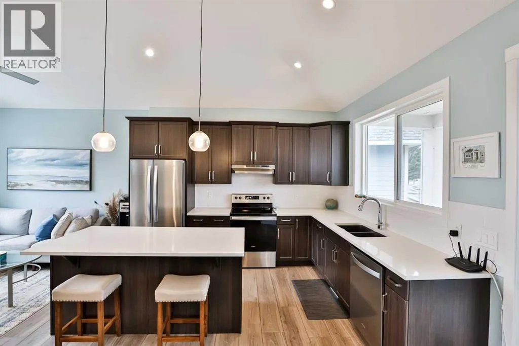 Welcome to lake living at its best in the sought-after community of Lake McGregor Country Estates Resort! This beautifully designed semi-detached bungalow offers the perfect blend of comfort, functionality, and lifestyleâjust steps from one of Southern Albertaâs most desirable recreational lake.Built in 2021, this home is bright and airy open-concept layout with vaulted ceilings, creating an inviting space for both everyday living and entertaining. The kitchen is thoughtfully finished with modern cabinetry, a large island, and a convenient pantry, seamlessly connecting to the dining and living areas. Large windows fill the home with natural light and provide views of the surrounding community.The spacious primary retreat, is on the main floor along with two full bathrooms. Downstairs, the fully developed basement adds incredible versatility with two additional bedrooms, a full bathroom, a generous family room, and laundryâideal for guests or growing families.Step outside to enjoy a covered back deck and a backyard designed for ease and enjoyment. Recent upgrades include additional exposed aggregate concrete, creating a low-maintenance outdoor space perfect for relaxing or entertaining. The front of the home has also been enhanced with an expanded concrete driveway, providing ample parkingâincluding space for a boatâso you can fully take advantage of everything the lake lifestyle offers.Located in a vibrant, amenity-rich community, Lake McGregor Country Estates Resort is known for its warm waters, sandy shores, and endless recreational opportunities. Residents enjoy access to a private beach, marina, clubhouse, sports courts, playgrounds, and year-round activitiesâfrom boating and fishing in the summer to skating and snowmobiling in the winter. (id:27476)