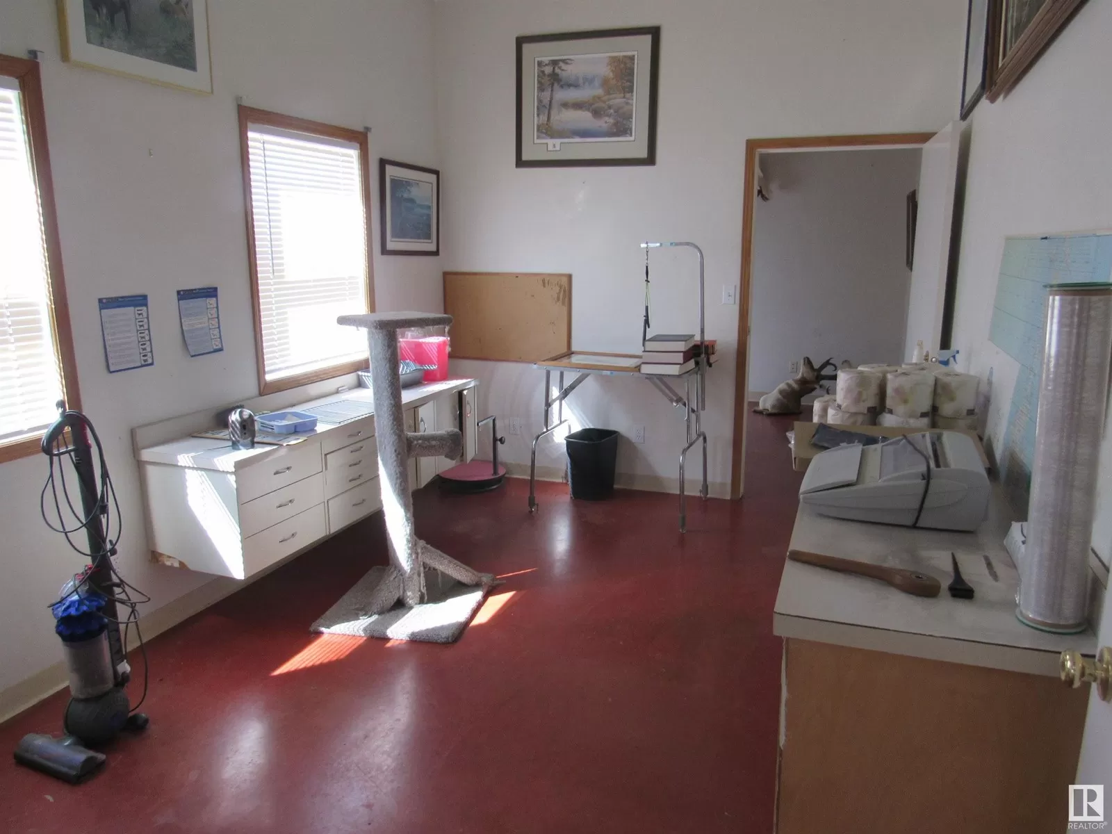 A great start for any business that requires a shop and especially for a business caring for animals. A former veterinary clinic built in 1998 this building is in great condition and has a lot to offer. It measures 40ft. x 86ft. and has 10ft. walls with 3 overhead doors. Currently there are many rooms inside but if need be they could all be removed and you would be left wit one big open space. Outside the entire 25.5 acre parcel is fenced for large animals except for the yard site. The services are in place to have a modular home on the yard site as well. Let your imagination take hold! (id:27476)
