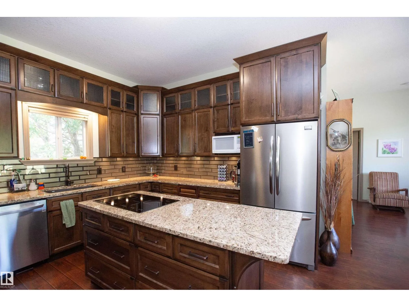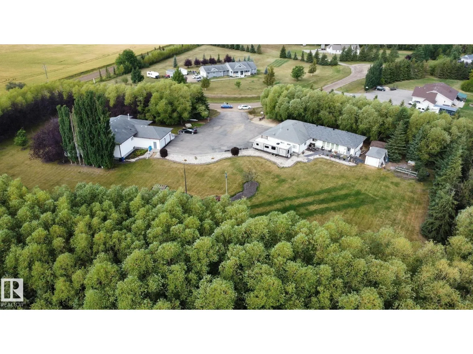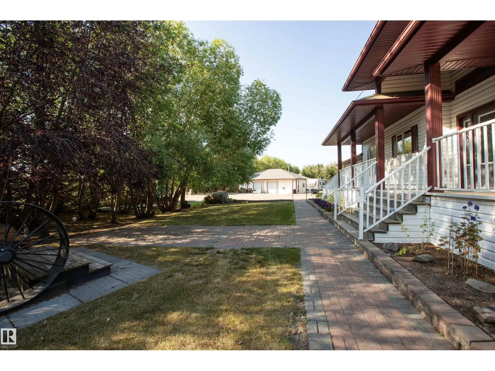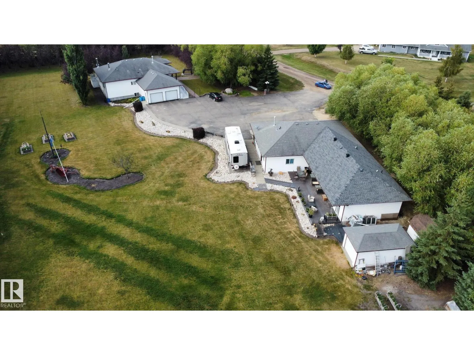 Two minutes to Westlock is this oasis - work started in 2001 w/hundreds of trees planted at perimeter (3 deep) for privacy! A 2002 raised bungalow w/1817 sq. ft. - 9' ceilings (foyer 12'), office, pantry, 5 bdrms (ensuite w/heated floors/w.i. shower/6' soaking tub. 3 full baths (note the sweet hop-scotch design in bsmt bath. Two insert wood-burning fireplaces (catalytic burner/fan) will heat this home! Wet bar in huge fmly room. 1999 Shop 32x48 w/10' ceiling w/3 pce bathrm, laundry rm, storage rm + upper/lower shelf/cabinets. 2015 in-law suite 24x40 w/10' ceilings added to shop roof lines. liv rm, dining area, stunning custom gourmet kitchen w/island, induction cooktop, dble ovens, granite, glass subway tile, other amazing features. 1 bdrm (ensuite 6' tub/5' shower w/seat/dble sinks/private toilet + office/sewing rm. RV parking, 2 sheds w/roller doors (id:27476)