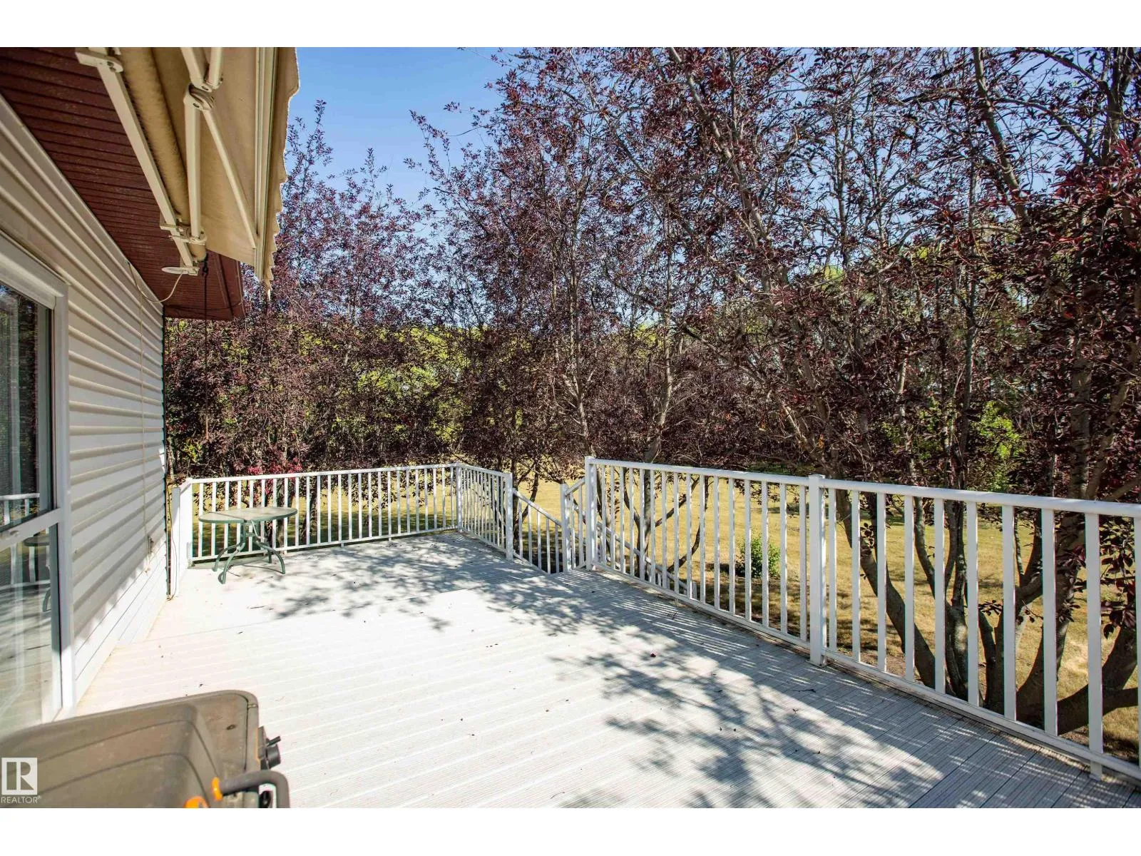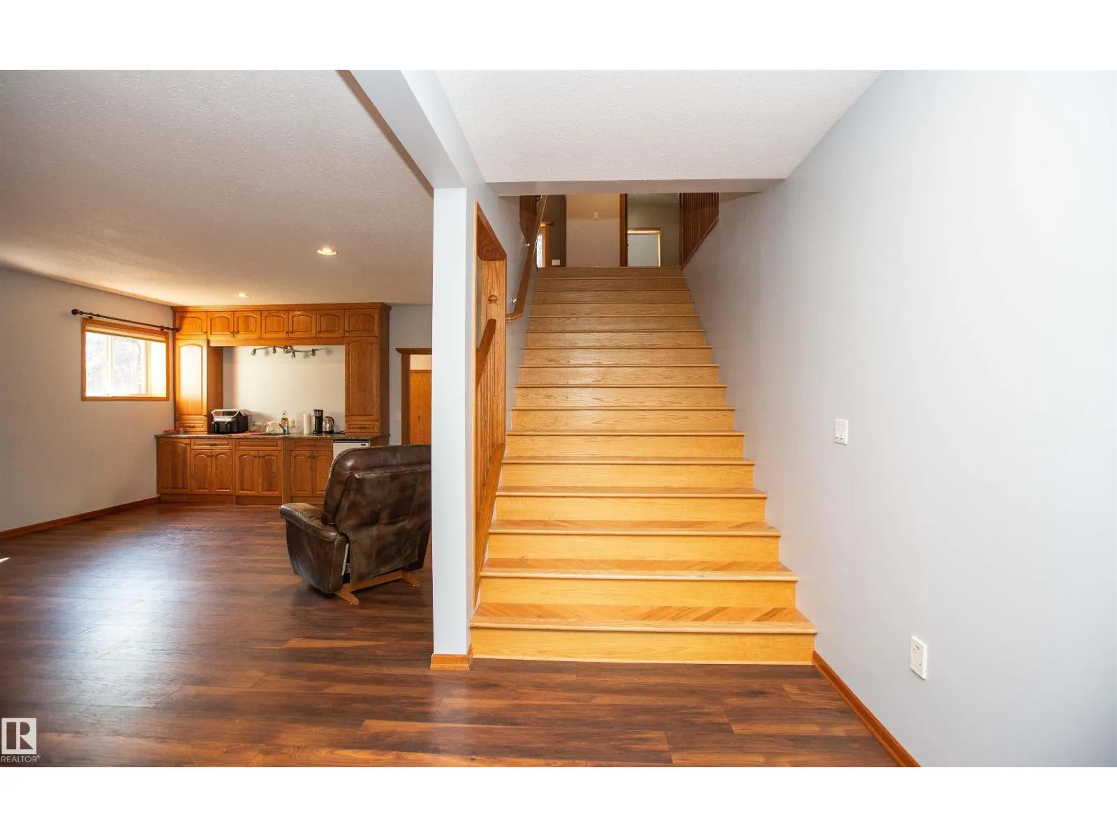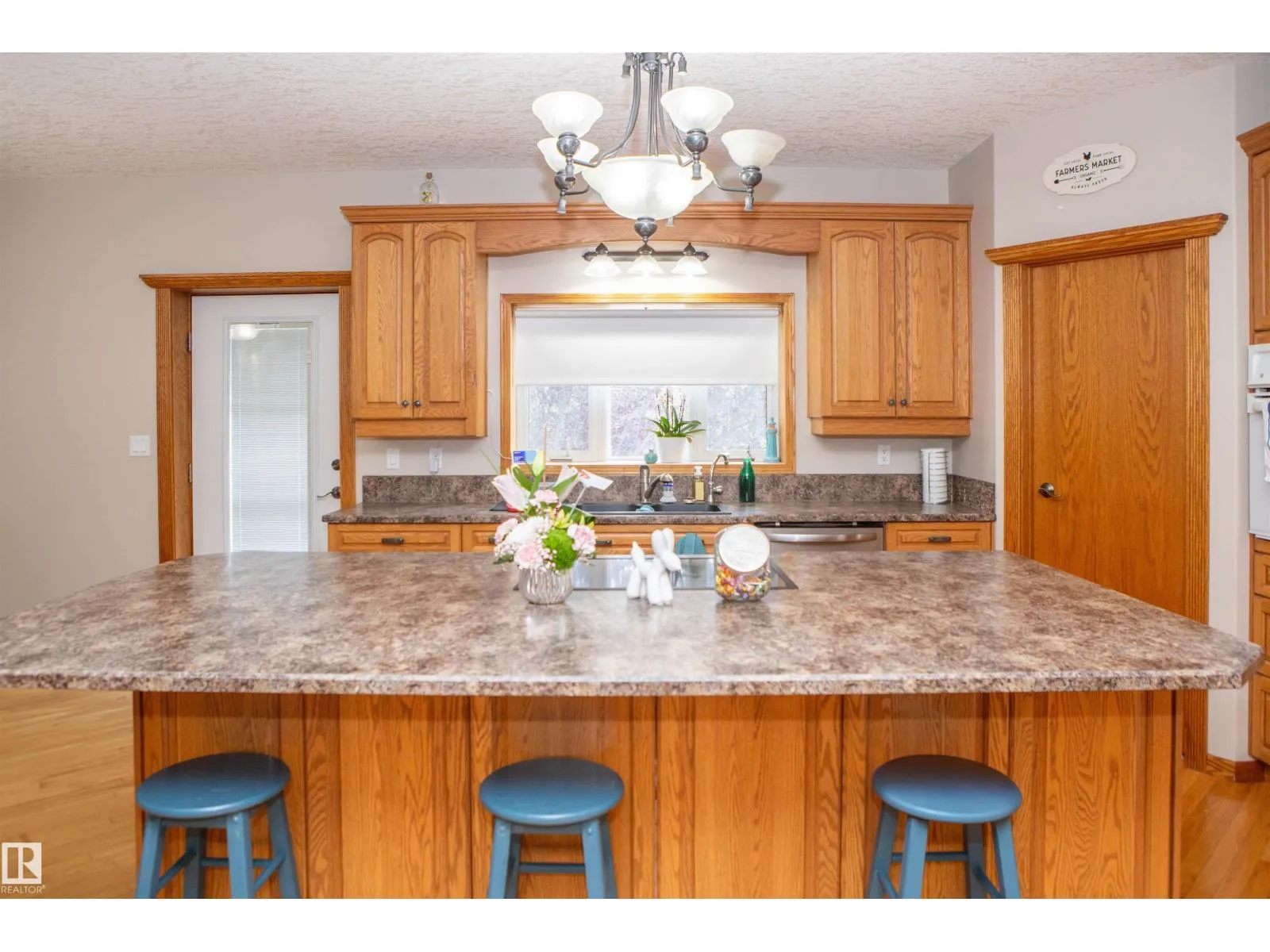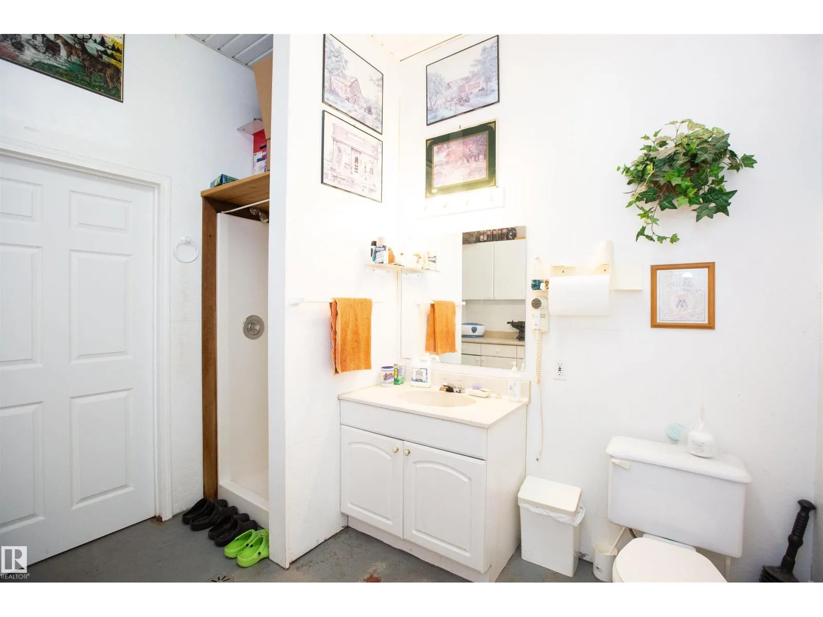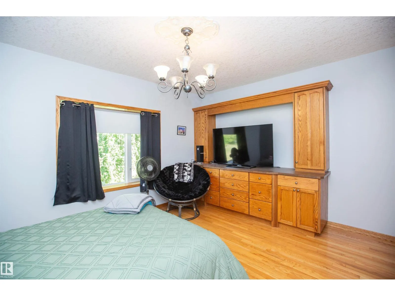 Two minutes to Westlock is this oasis - work started in 2001 w/hundreds of trees planted at perimeter (3 deep) for privacy! A 2002 raised bungalow w/1817 sq. ft. - 9' ceilings (foyer 12'), office, pantry, 5 bdrms (ensuite w/heated floors/w.i. shower/6' soaking tub. 3 full baths (note the sweet hop-scotch design in bsmt bath. Two insert wood-burning fireplaces (catalytic burner/fan) will heat this home! Wet bar in huge fmly room. 1999 Shop 32x48 w/10' ceiling w/3 pce bathrm, laundry rm, storage rm + upper/lower shelf/cabinets. 2015 in-law suite 24x40 w/10' ceilings added to shop roof lines. liv rm, dining area, stunning custom gourmet kitchen w/island, induction cooktop, dble ovens, granite, glass subway tile, other amazing features. 1 bdrm (ensuite 6' tub/5' shower w/seat/dble sinks/private toilet + office/sewing rm. RV parking, 2 sheds w/roller doors (id:27476)