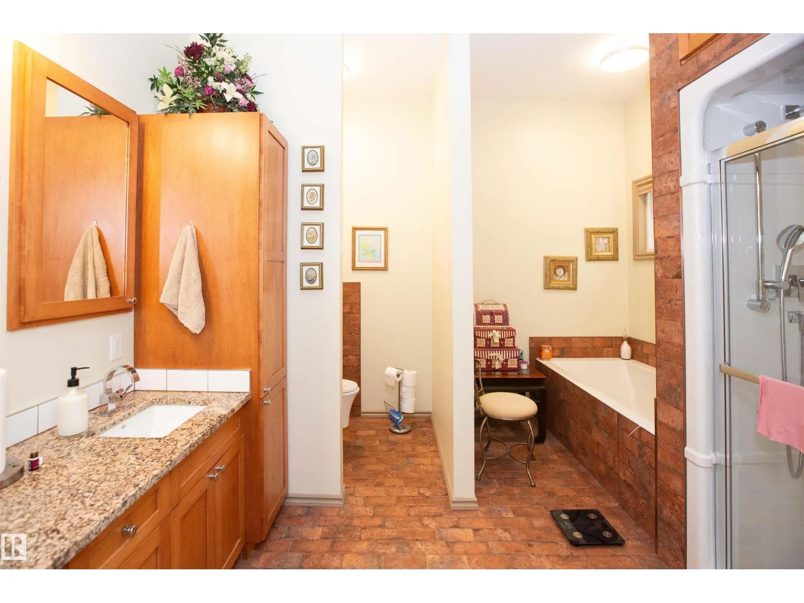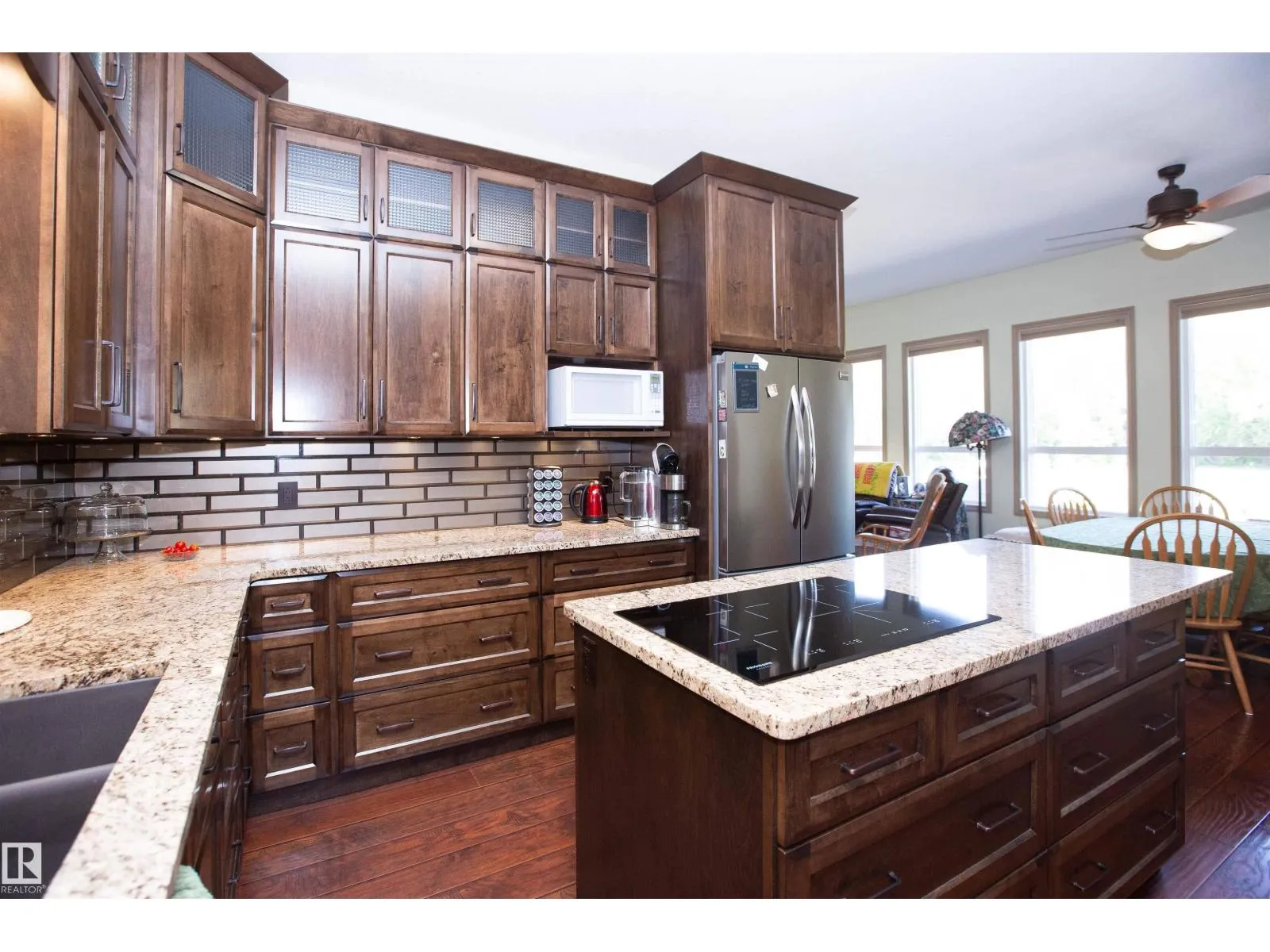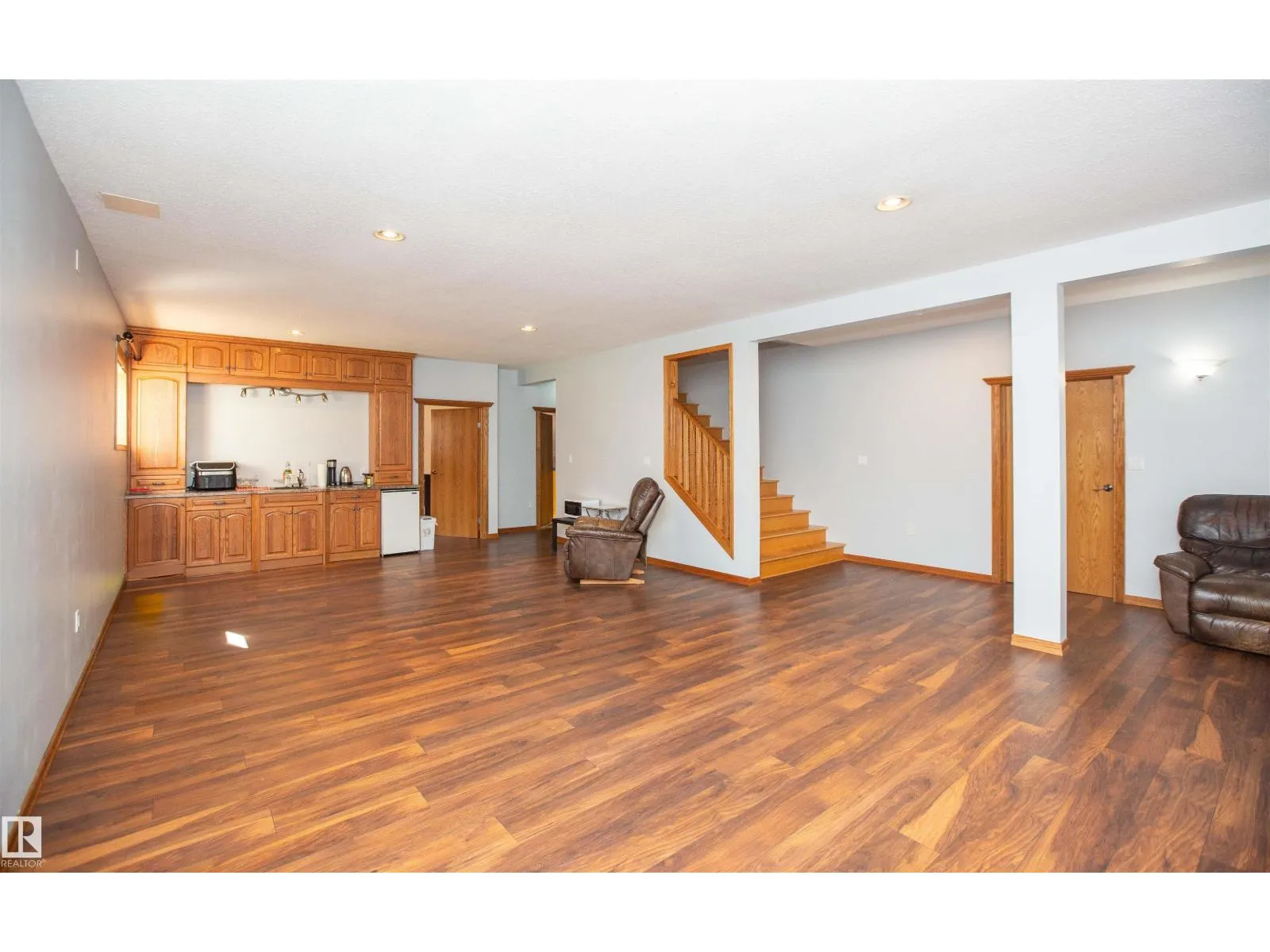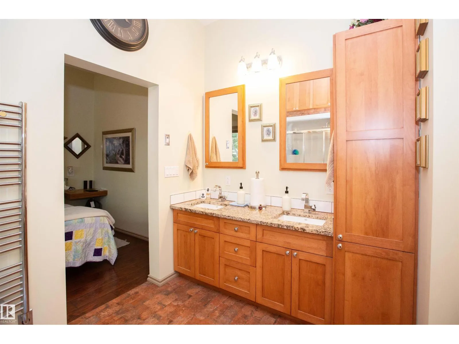 Two minutes to Westlock is this oasis - work started in 2001 w/hundreds of trees planted at perimeter (3 deep) for privacy! A 2002 raised bungalow w/1817 sq. ft. - 9' ceilings (foyer 12'), office, pantry, 5 bdrms (ensuite w/heated floors/w.i. shower/6' soaking tub. 3 full baths (note the sweet hop-scotch design in bsmt bath. Two insert wood-burning fireplaces (catalytic burner/fan) will heat this home! Wet bar in huge fmly room. 1999 Shop 32x48 w/10' ceiling w/3 pce bathrm, laundry rm, storage rm + upper/lower shelf/cabinets. 2015 in-law suite 24x40 w/10' ceilings added to shop roof lines. liv rm, dining area, stunning custom gourmet kitchen w/island, induction cooktop, dble ovens, granite, glass subway tile, other amazing features. 1 bdrm (ensuite 6' tub/5' shower w/seat/dble sinks/private toilet + office/sewing rm. RV parking, 2 sheds w/roller doors (id:27476)