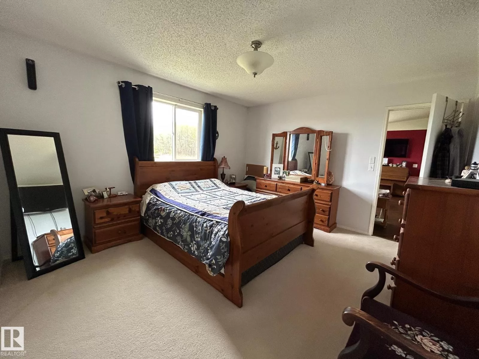 Great family home on gorgeous 3 acres a few minutes NE of Westlock, just over a ½ hour to St Albert. Room for everyone in this 1770 sq ft 5 bdrm, 3 bath bungalow. Substantial upgrades over the past 20 years include siding, soffits, paint, HOT WATER ON DEMAND, high efficiency furnace, wood stove, and back deck. In 2018 CENTRAL AIR CONDITIONING was added along with a GENSET SYSTEM which automatically turns on if the power goes out and powers the whole house. At that time new flooring and a maintenance free front deck were also added. Other features are IN FLOOR HEATING in basement, pantry, 3 pce ensuite with soaker tub, main floor laundry, main floor office, back up sump pump system. Heated garage built in 2016 has 2 floor drains and a handy back porch area for boots and coats. Main floor also has a large flex room and office space. Garden area and raised garden beds, storage sheds, mature trees and view from front deck of a small lake complete this great property. Even room for animals on this 3 acres. (id:27476)