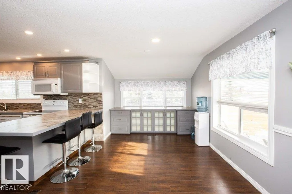 An extremely well maintained acreage with numerous upgrades by current owner. Move in ready, close to town, an attractive place to call home. Huge covered deck to sit and enjoy the view. Open the door to large kitchen with dining area, plenty of natural lighting, pantry and cupboard space. Living room has a wood burning stove/fireplace which makes for cozy relaxing evenings. Large master bedroom with walk in closet, along with 2 additional bedrooms one currently used as office. 5 piece bathroom. Partial basement makes a great recreational space with more storage. Outside has 42'x16' shed as well as 20'x14' workshop c/w power & natural gas heating for a variety of uses. Yard is fenced and cross fenced room for a few pets. A great space to grow your own vegetables and raise a few chickens. Only a 7 minute drive to Westlock making a convenient commute. (id:27476)