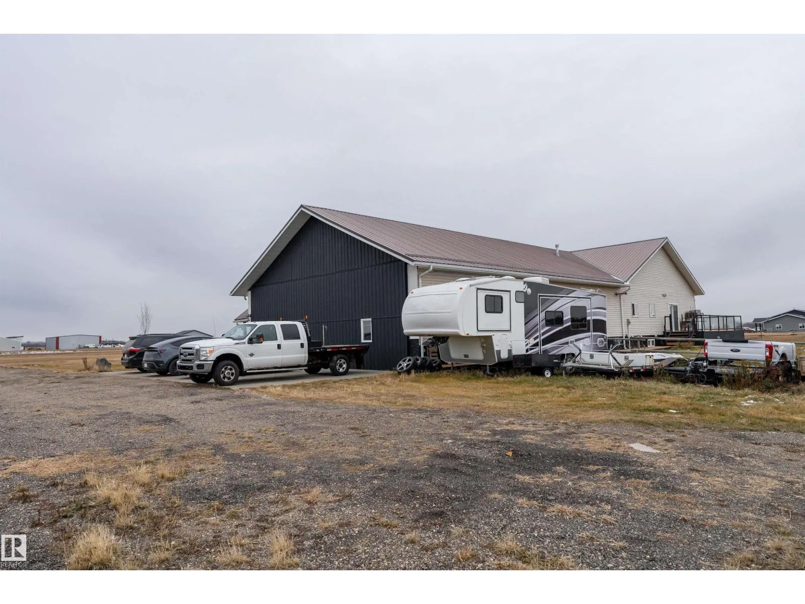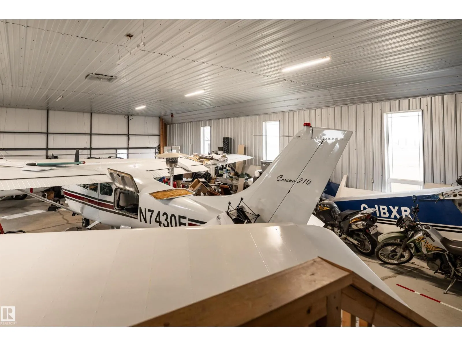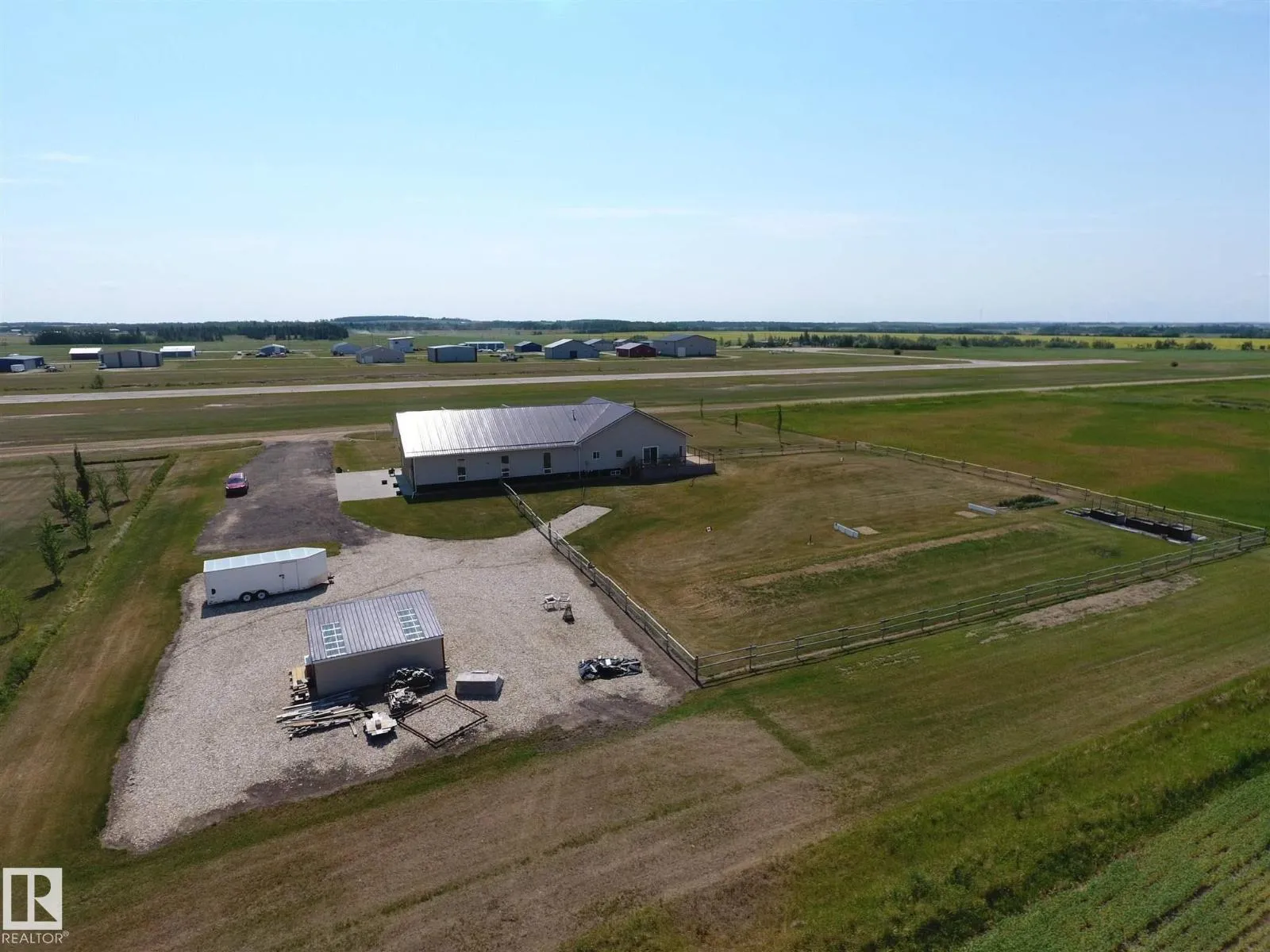Get Inspired in Westlock. A rare aviation loverâs dream! Welcome to West Air Estates, an exclusive community where you can live, work, and fly right from your own backyard. This stunning 4 bed + Den, 3 bath bungalow is attached to a massive heated and insulated hangar, giving both you and your aircrafts a place to call home. The hangar measures 44 ft by 58 ft with a 40 ft bifold door and tons of natural light, perfect for your plane, ultralight, or helicopter. Enjoy watching aircraft take off and land right from your living room or kitchen while relaxing in a bright, open space featuring 10 ft ceilings, hardwood floors, granite counters and a chefâs kitchen. The fully finished basement has new vinyl plank flooring, wet bar and a spacious rec area for entertaining. Set on nearly 2 acres, thereâs room for your RV, boat, or classic cars, plus extra storage sheds and a workshop. Located minutes from the runway, amenities, and only 40 minutes to Edmonton, this is your chance to own a true pilotâs paradise. (id:27476)