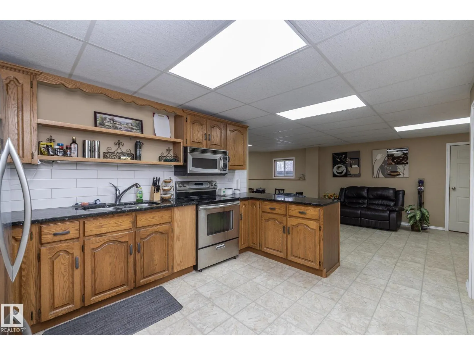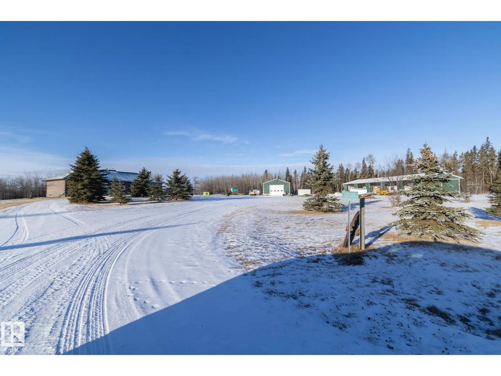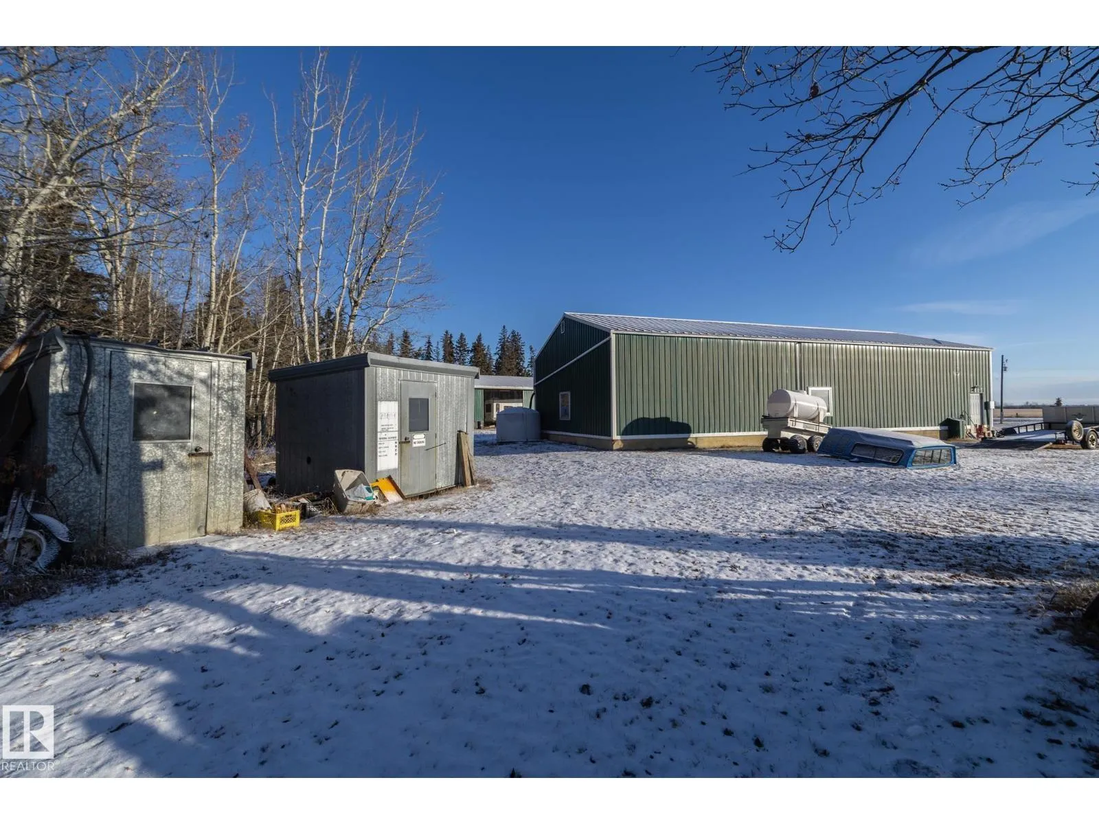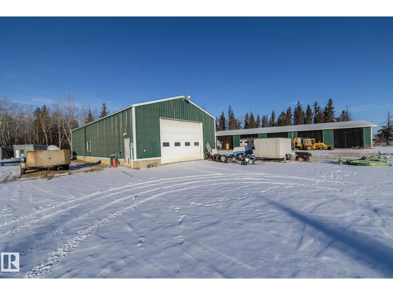 Acreage living at its finest! This versatile 5-bdrm home sits on 28.5 acres & offers nearly 2,200 sq.ft. per levelâperfect for multi-gen living, blended families, or anyone needing serious space. The main floor features 3 inviting bdrms, including a gorgeous primary suite w/spa ensuite: sunken soaker tub, separate shower & beautiful tile finishes. The sunken living room shares a 2-sided FP w/the den, which opens onto a huge west-facing deck. The bright kitchen offers panoramic views, loads of prep/storage space & easy access to the dining room. Both levels feature full kitchens & laundry for true independent living. The lower level includes 2 large bdrms, full bath, rec room, games area & storage. Outside is a dream for hobbyists: an oversized dbl garage w/8â o/h doors PLUS two shopsâa 30âx65â metal shop w/in-floor heat, power, insulation & 20âx16â o/h door, and a 40âx113â metal storage building. Space, privacy & endless possibilitiesâthis acreage checks every box! (id:27476)
