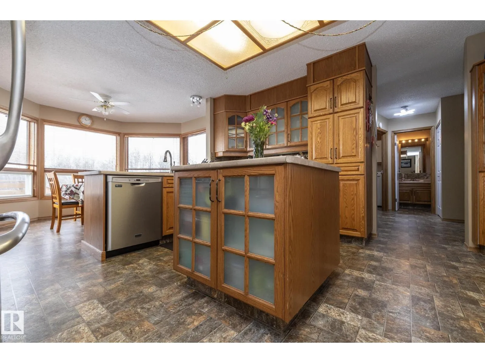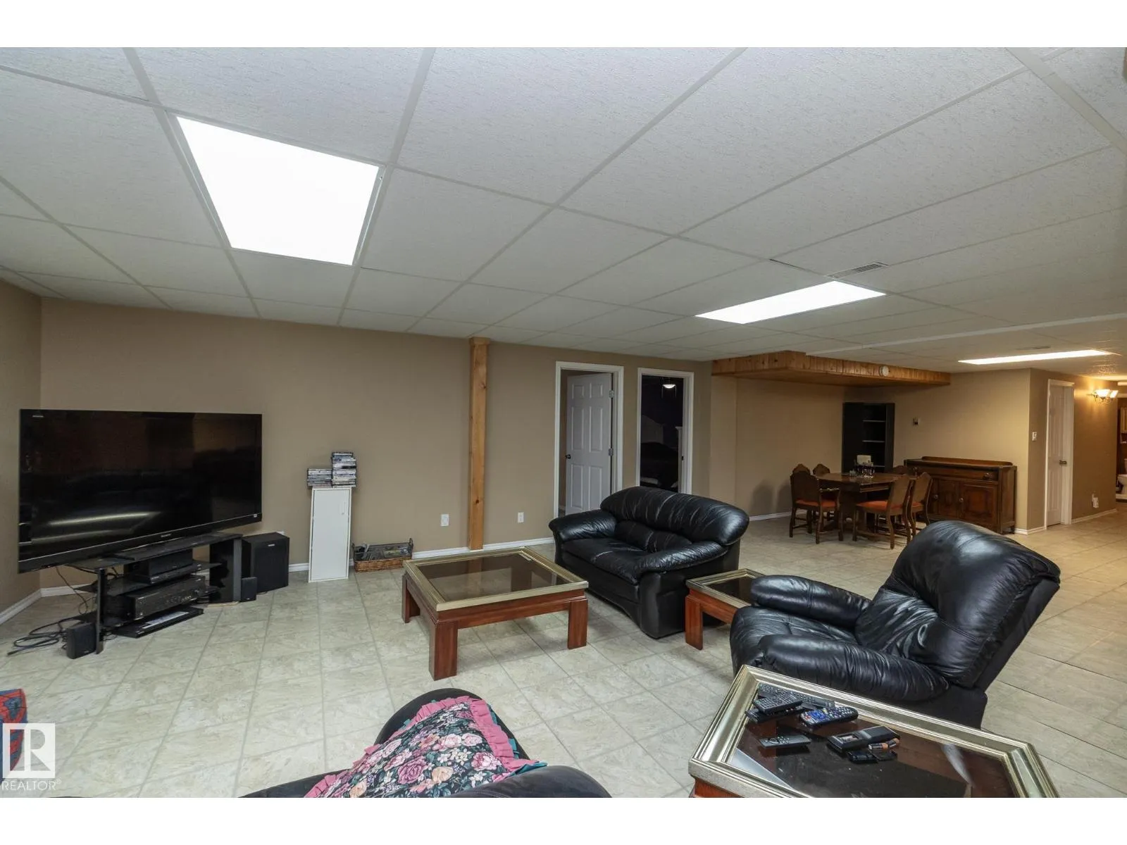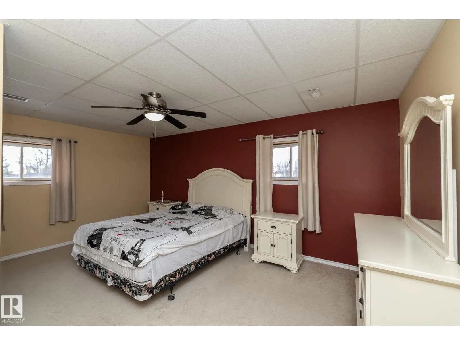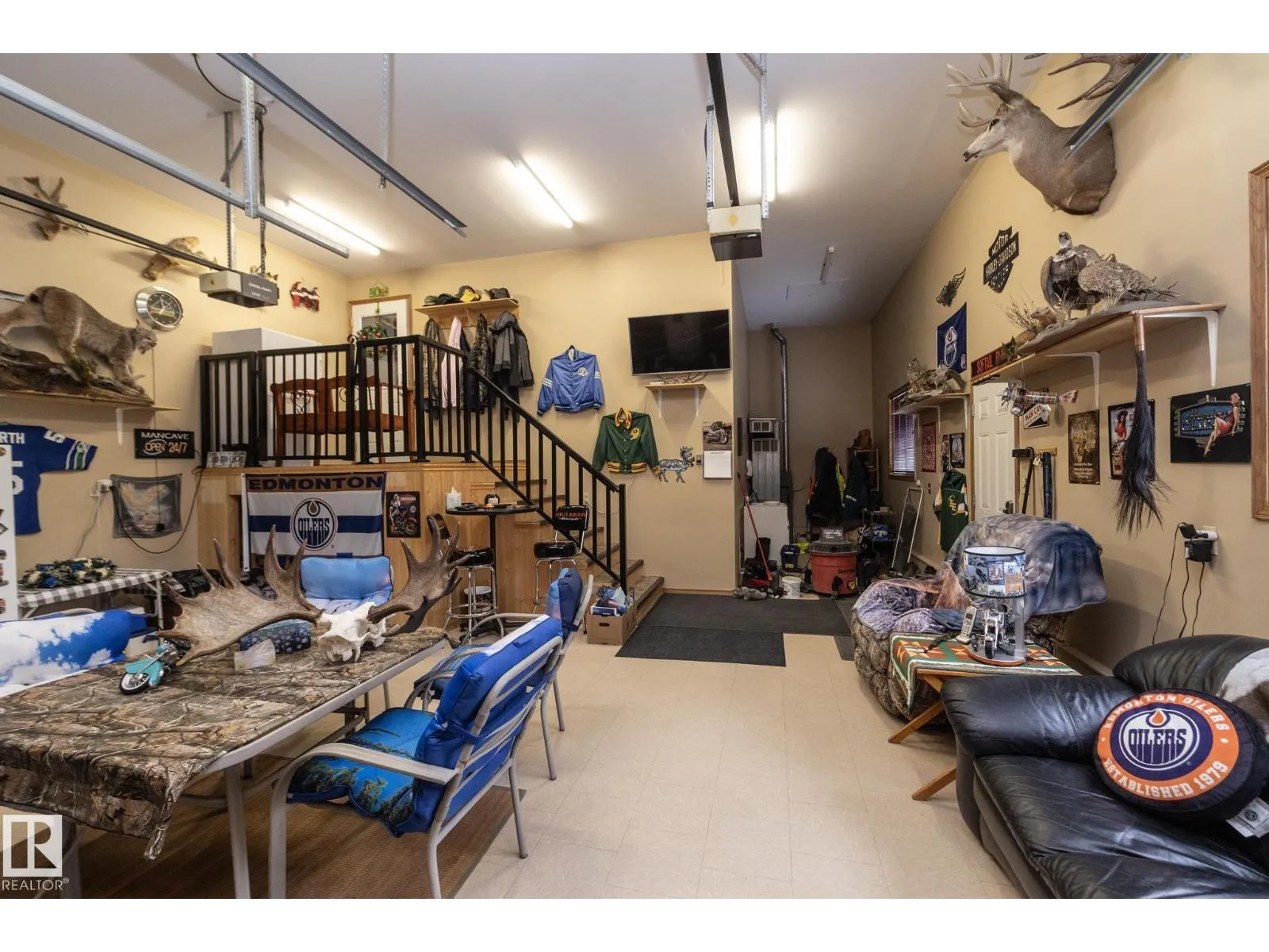 Acreage living at its finest! This versatile 5-bdrm home sits on 28.5 acres & offers nearly 2,200 sq.ft. per levelâperfect for multi-gen living, blended families, or anyone needing serious space. The main floor features 3 inviting bdrms, including a gorgeous primary suite w/spa ensuite: sunken soaker tub, separate shower & beautiful tile finishes. The sunken living room shares a 2-sided FP w/the den, which opens onto a huge west-facing deck. The bright kitchen offers panoramic views, loads of prep/storage space & easy access to the dining room. Both levels feature full kitchens & laundry for true independent living. The lower level includes 2 large bdrms, full bath, rec room, games area & storage. Outside is a dream for hobbyists: an oversized dbl garage w/8â o/h doors PLUS two shopsâa 30âx65â metal shop w/in-floor heat, power, insulation & 20âx16â o/h door, and a 40âx113â metal storage building. Space, privacy & endless possibilitiesâthis acreage checks every box! (id:27476)